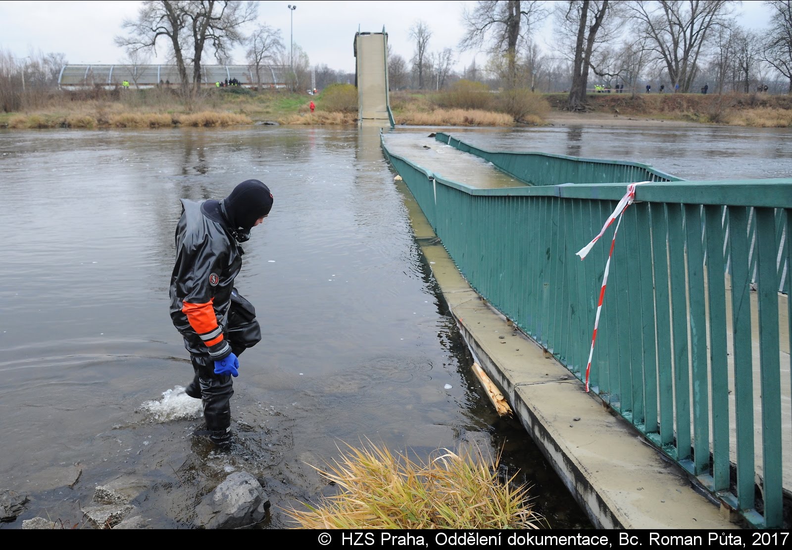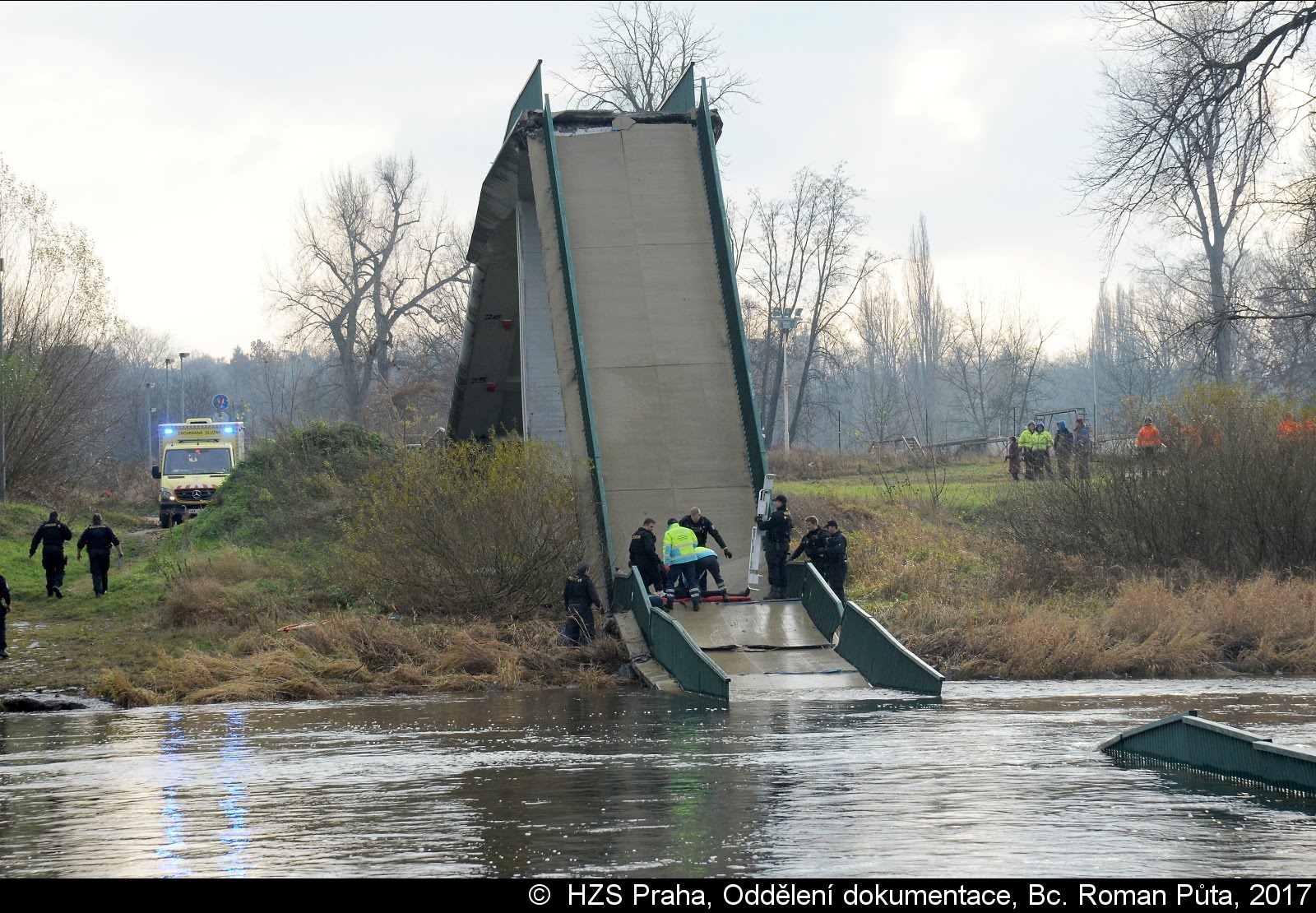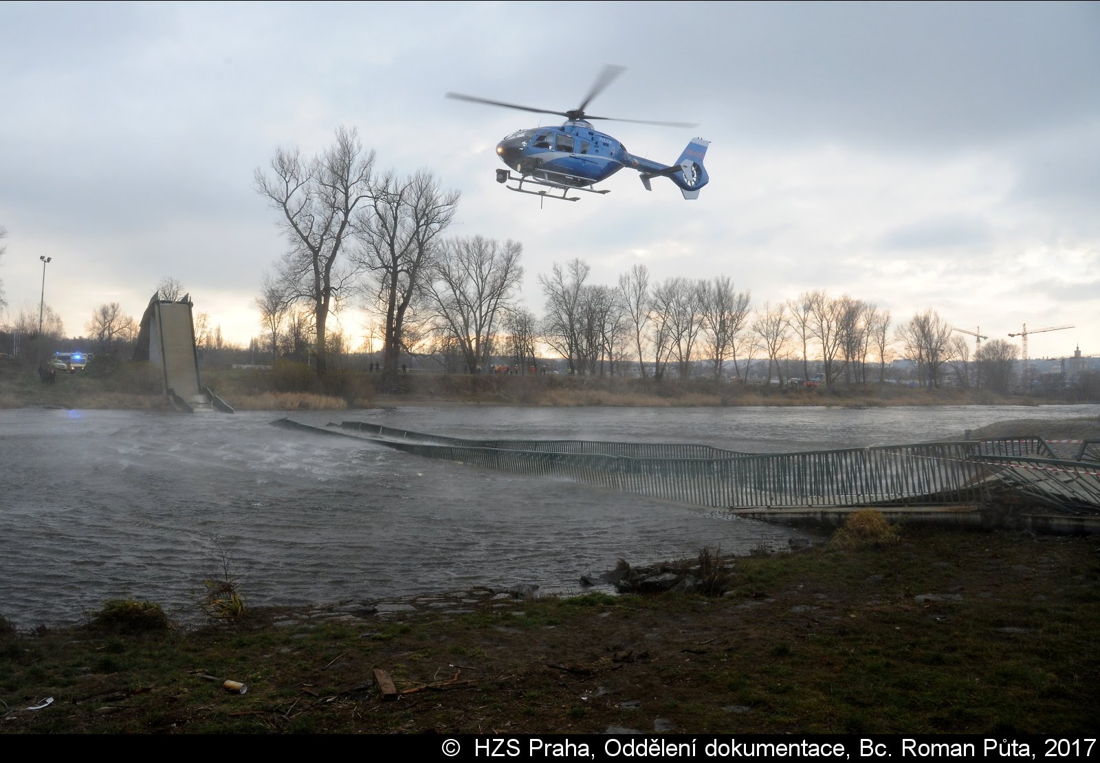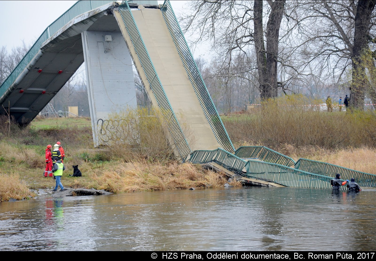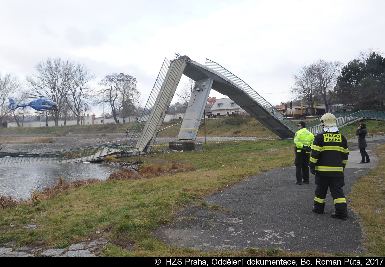 Dne 02.12.2017 zasahovaly čtyři jednotky pražských hasičů u Trojského zámku v Praze 7. Zřítila se tam pěší Trojská lávka do Vltavy...