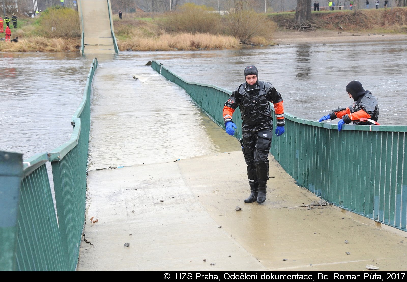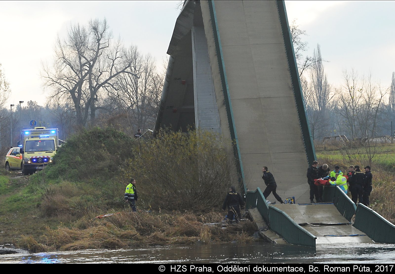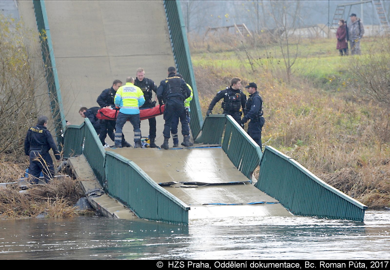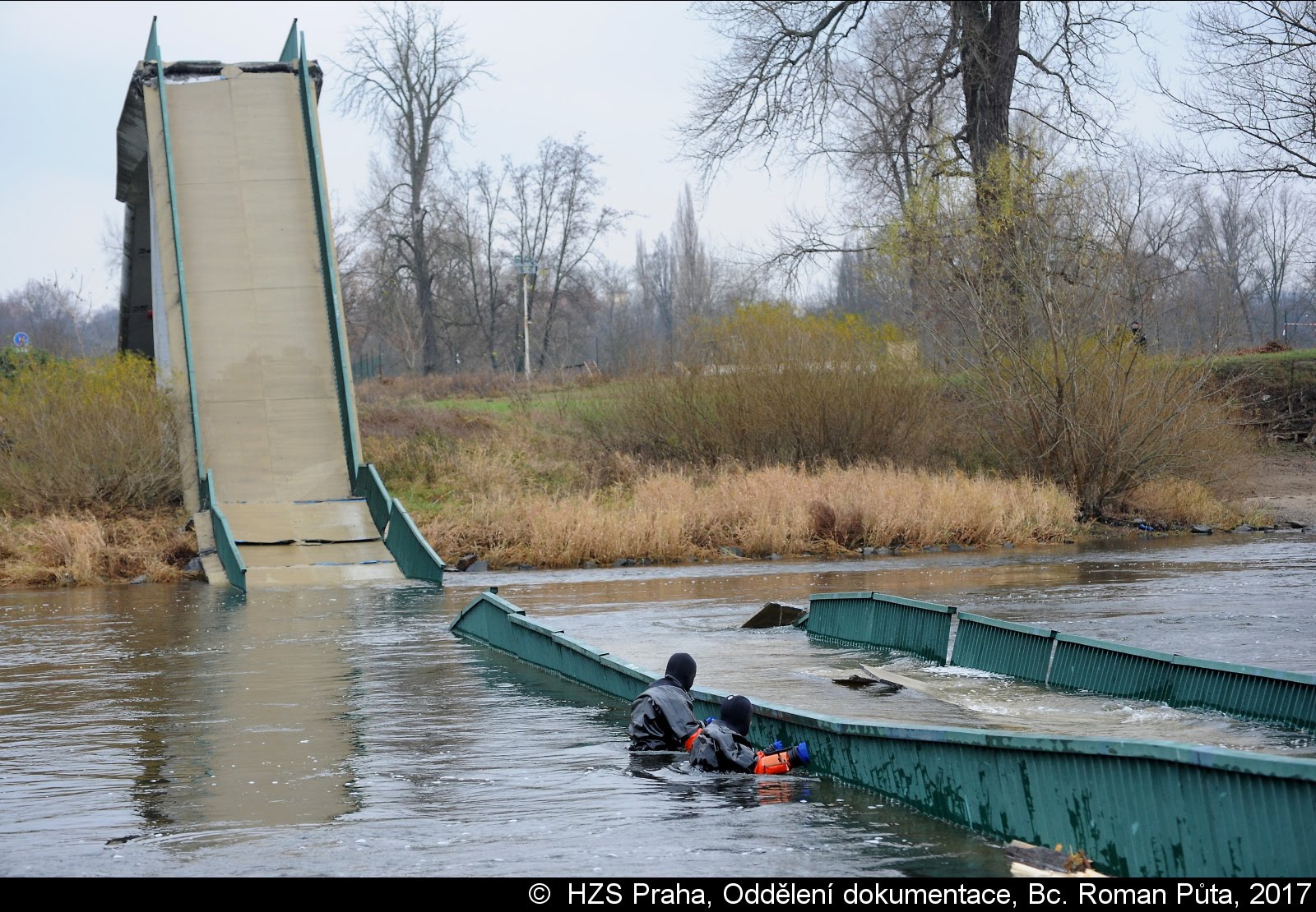 Dne 02.12.2017 zasahovaly čtyři jednotky pražských hasičů u Trojského zámku v Praze 7. Zřítila se tam pěší Trojská lávka do Vltavy...