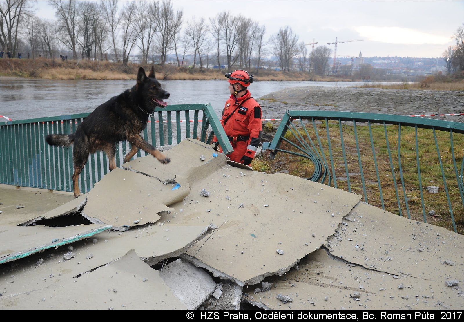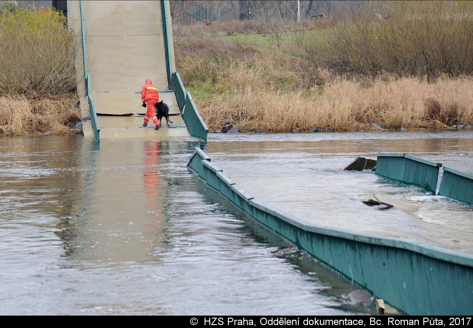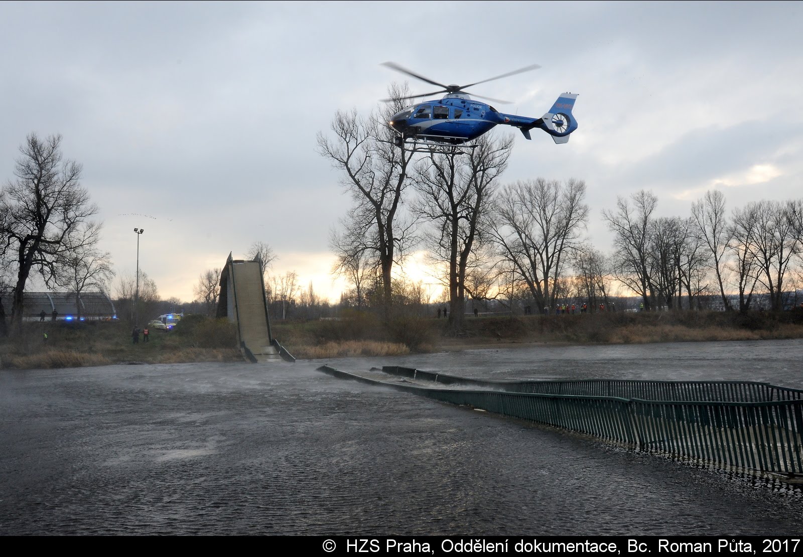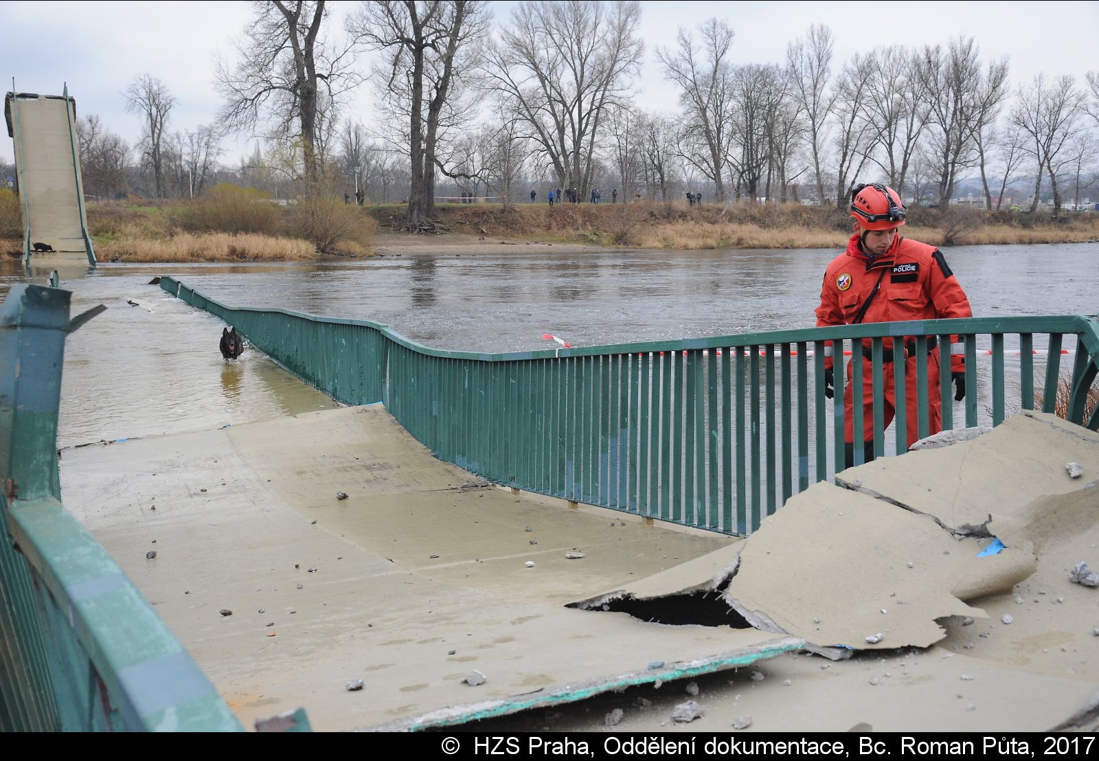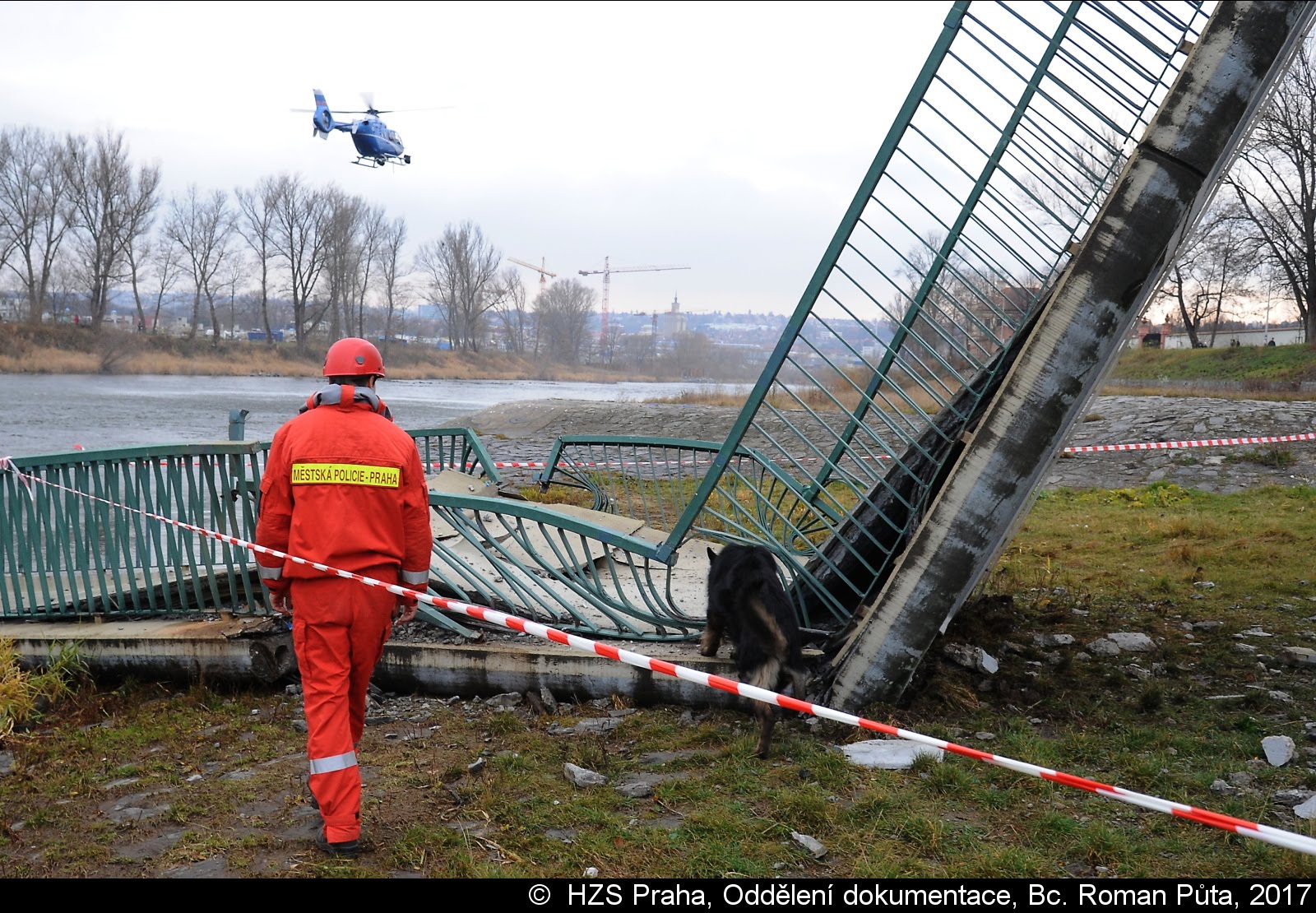 Dne 02.12.2017 zasahovaly čtyři jednotky pražských hasičů u Trojského zámku v Praze 7. Zřítila se tam pěší Trojská lávka do Vltavy...