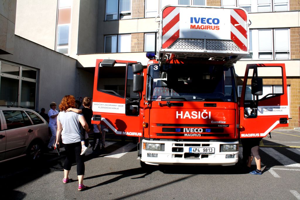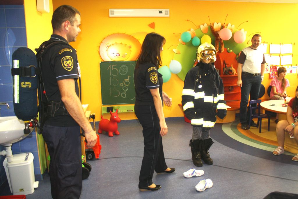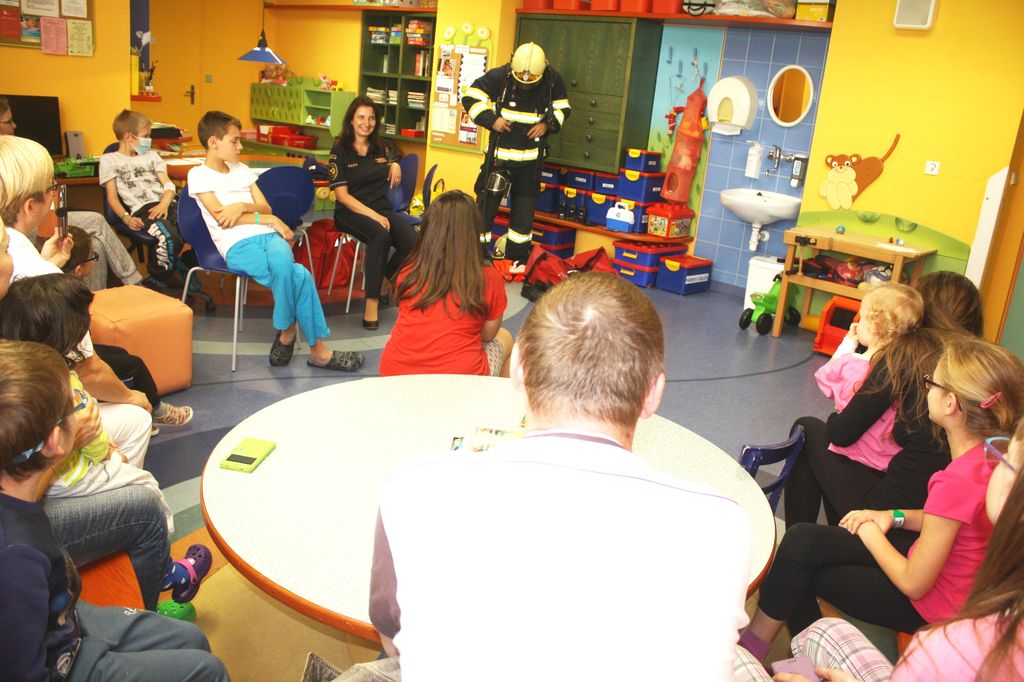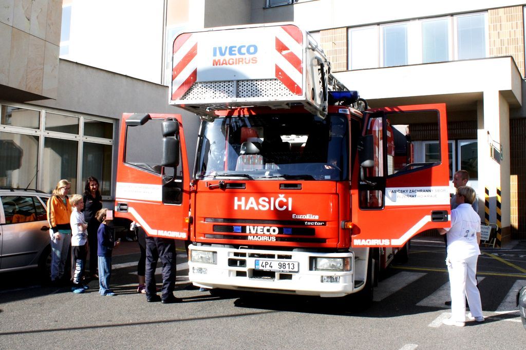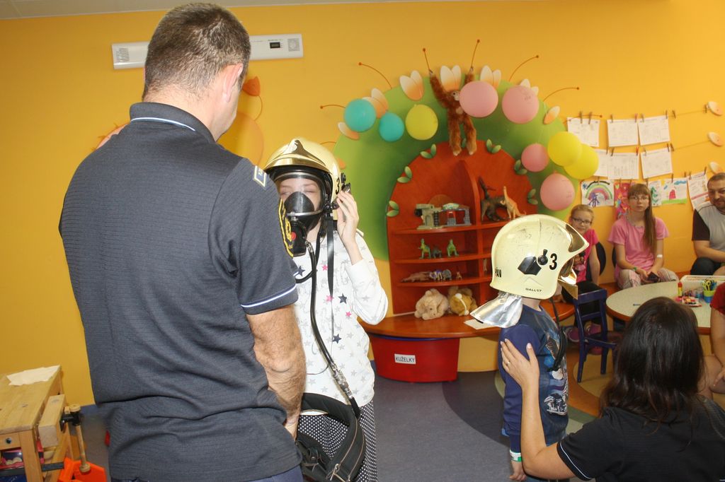 Některé děti zklamalo, že hasiči nepřijeli zásahovou technikou až do herny. O to větší ale měly radost, když jim sestřičky dovolily jít se podívat na hasičskou plošinu ven. Nejvíc bavila děti pozice hasiče-strojníka.