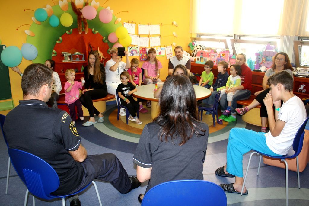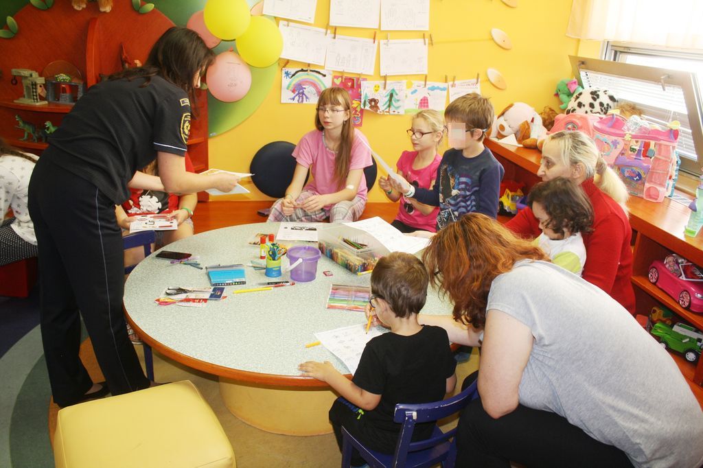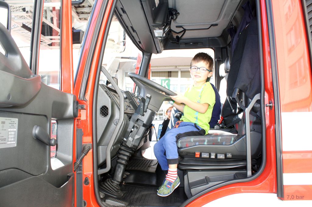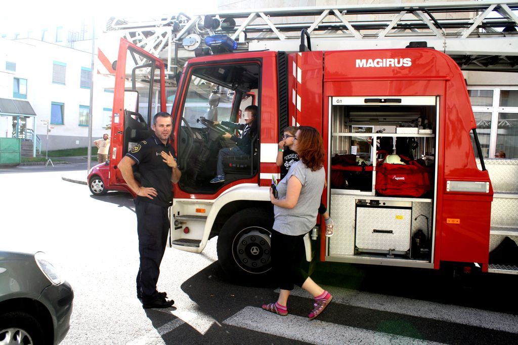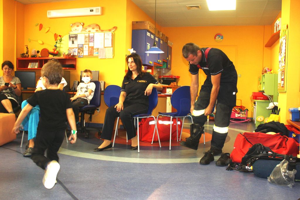 Některé děti zklamalo, že hasiči nepřijeli zásahovou technikou až do herny. O to větší ale měly radost, když jim sestřičky dovolily jít se podívat na hasičskou plošinu ven. Nejvíc bavila děti pozice hasiče-strojníka.