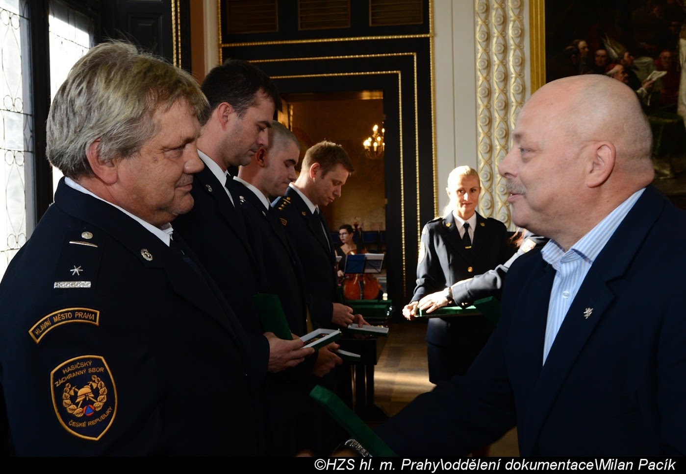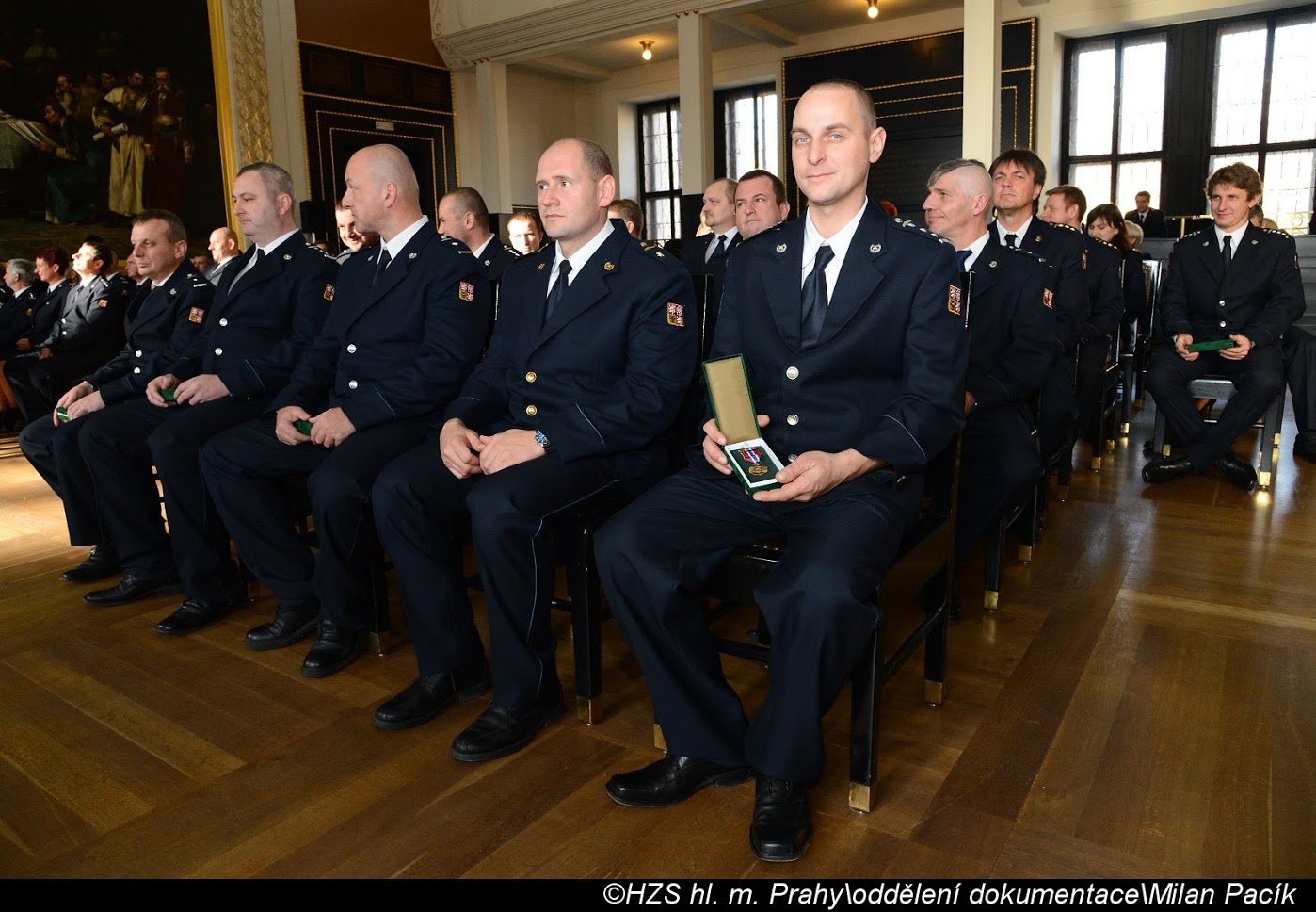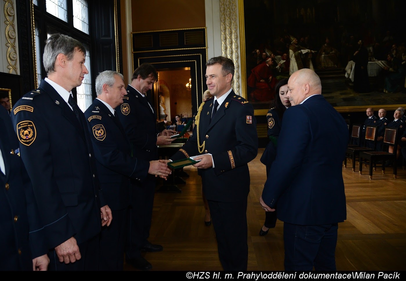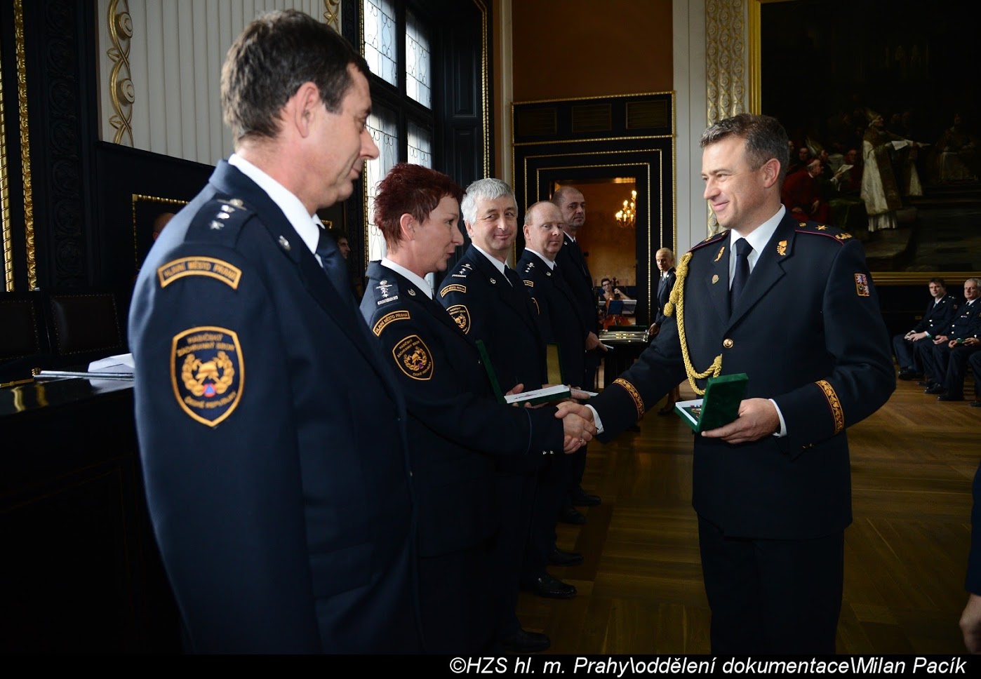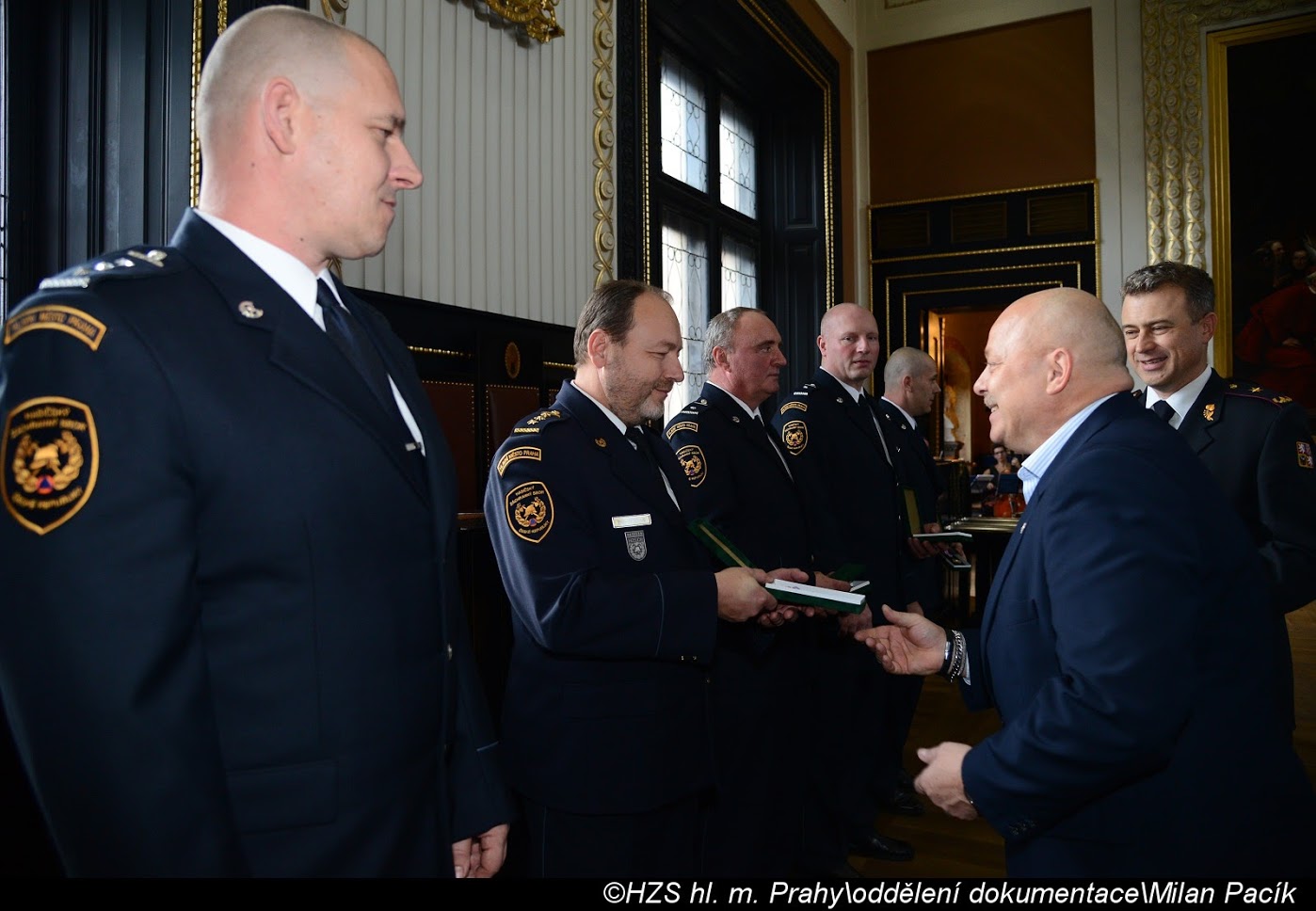 V Brožíkově síni Staroměstské radnice proběhlo slavnostní předání medailí příslušníkům pražských hasičů/FOTOGALERIE