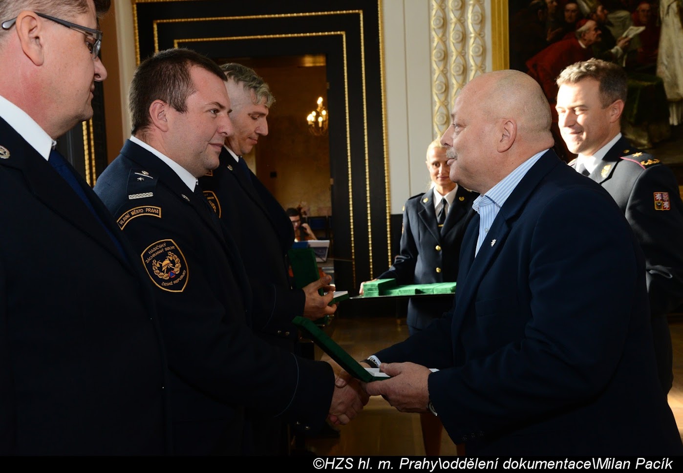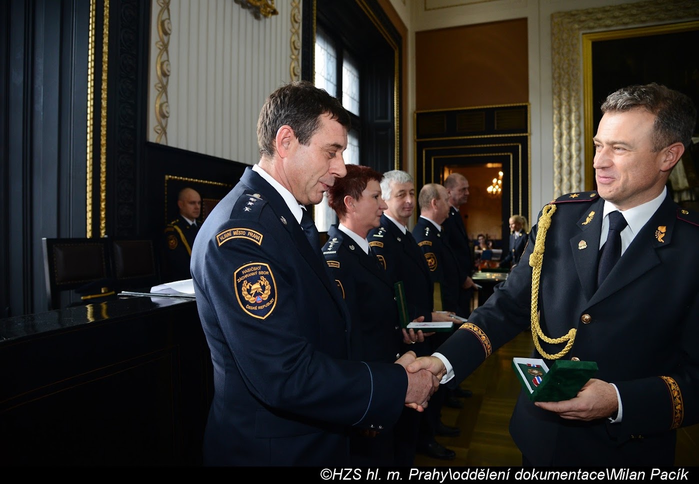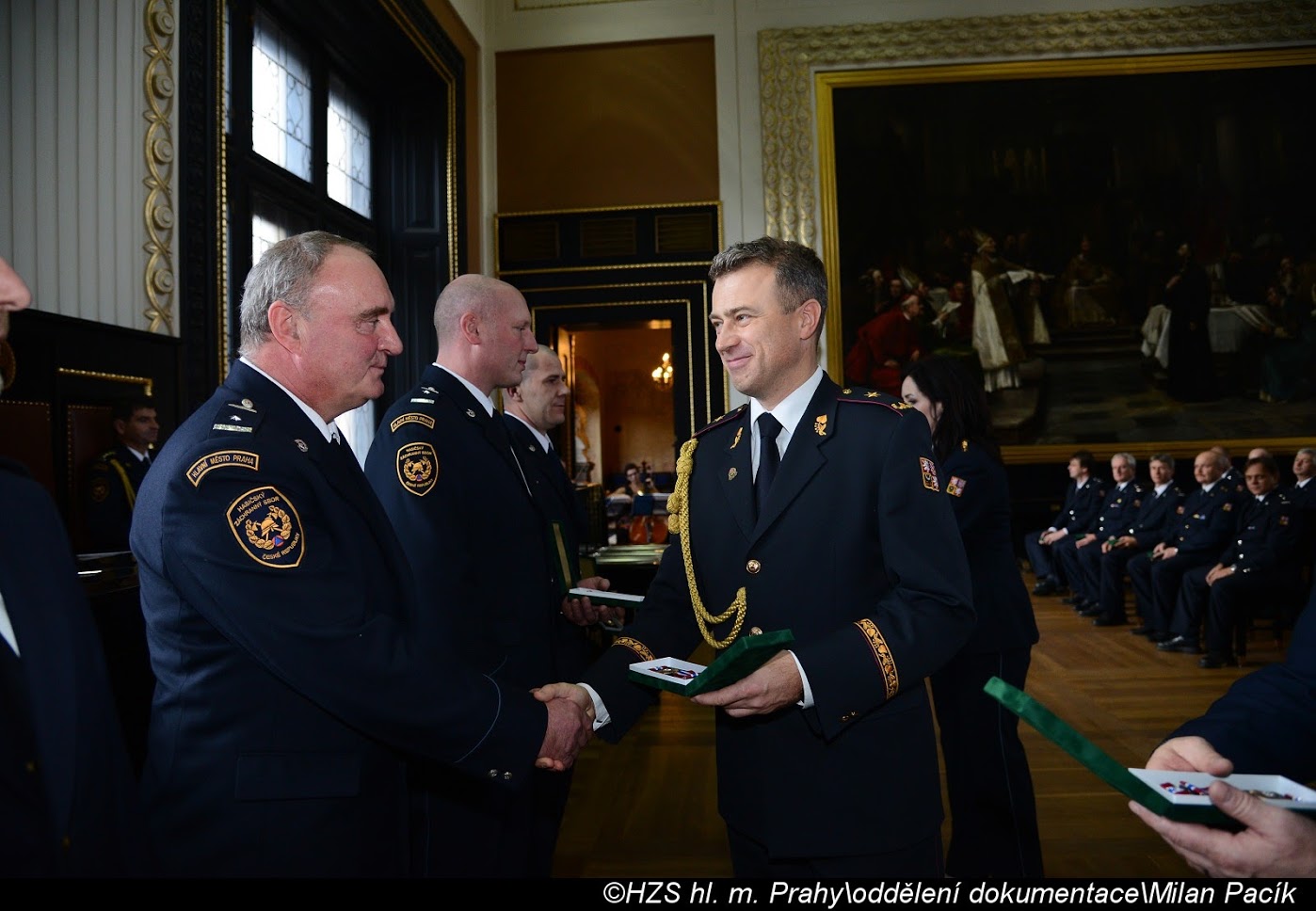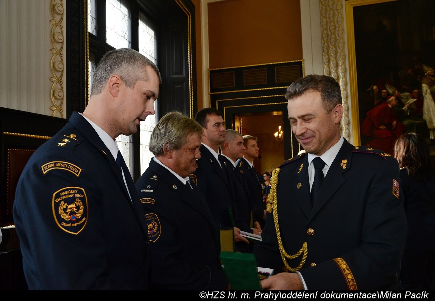 V Brožíkově síni Staroměstské radnice proběhlo slavnostní předání medailí příslušníkům pražských hasičů/FOTOGALERIE