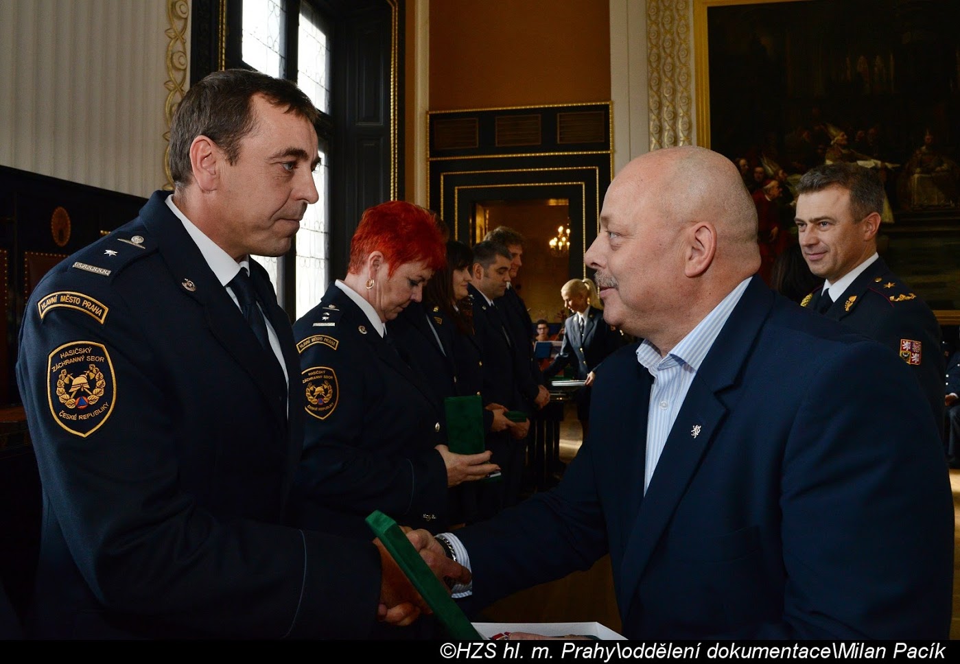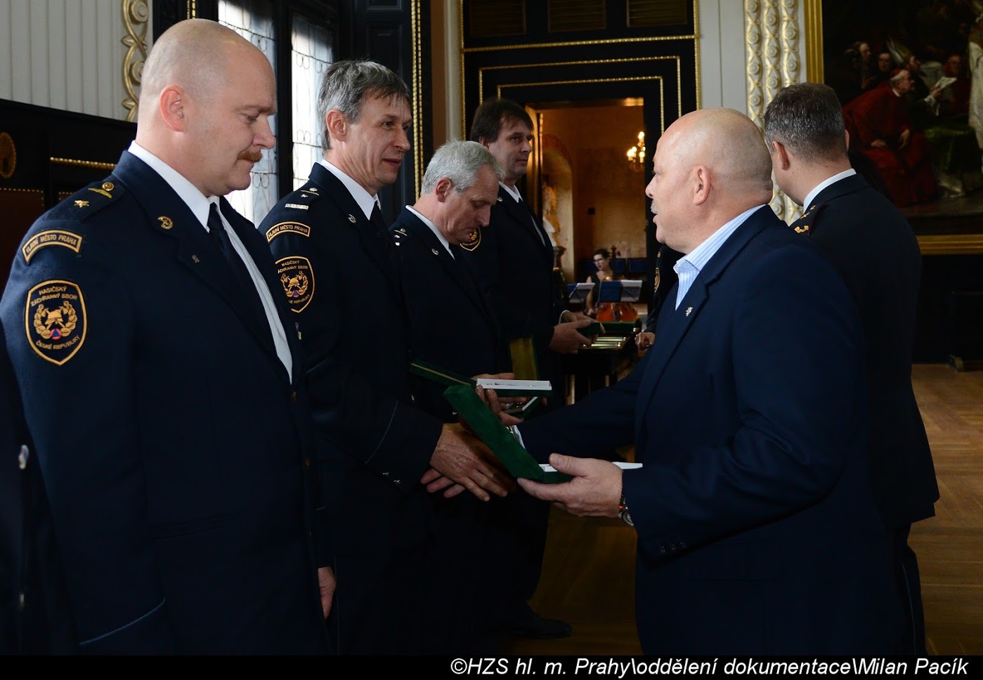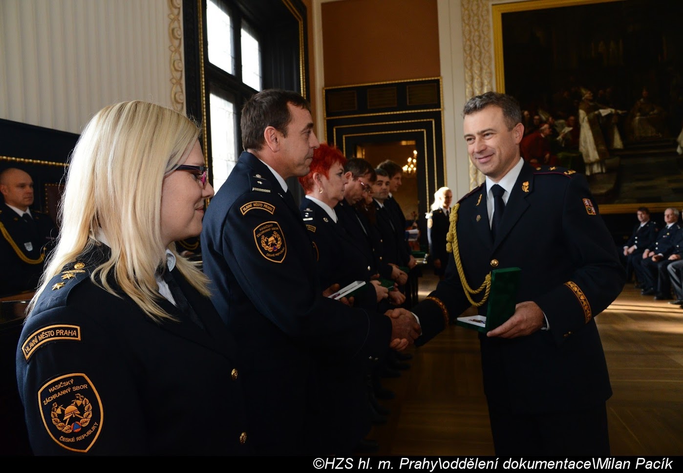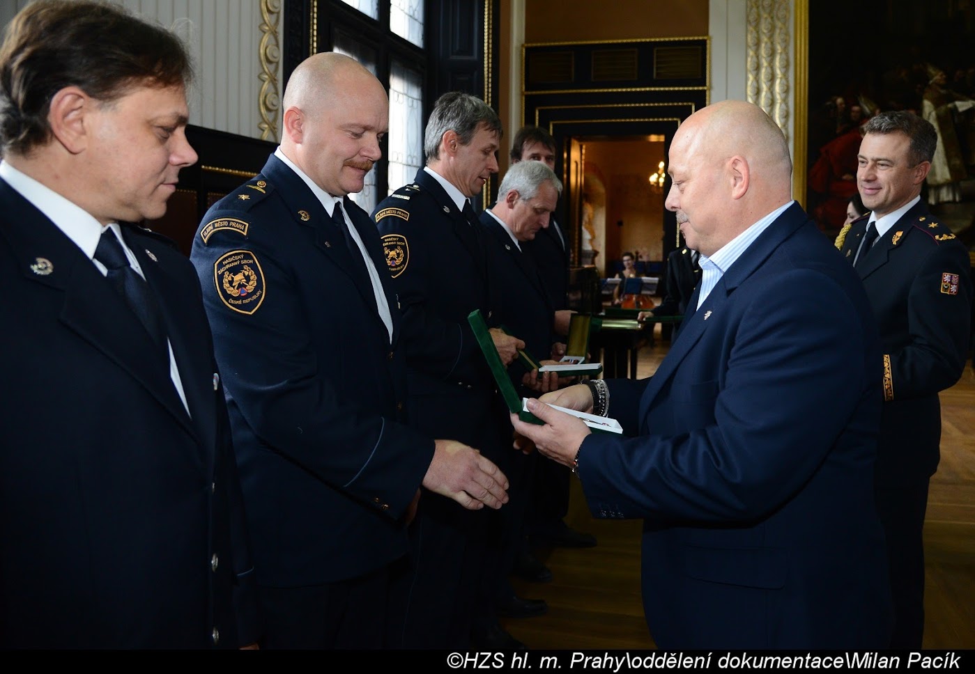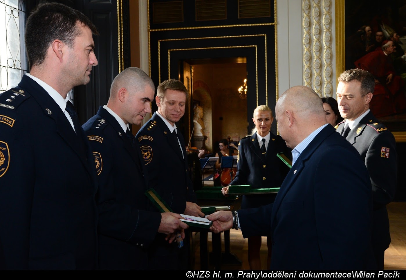 V Brožíkově síni Staroměstské radnice proběhlo slavnostní předání medailí příslušníkům pražských hasičů/FOTOGALERIE
