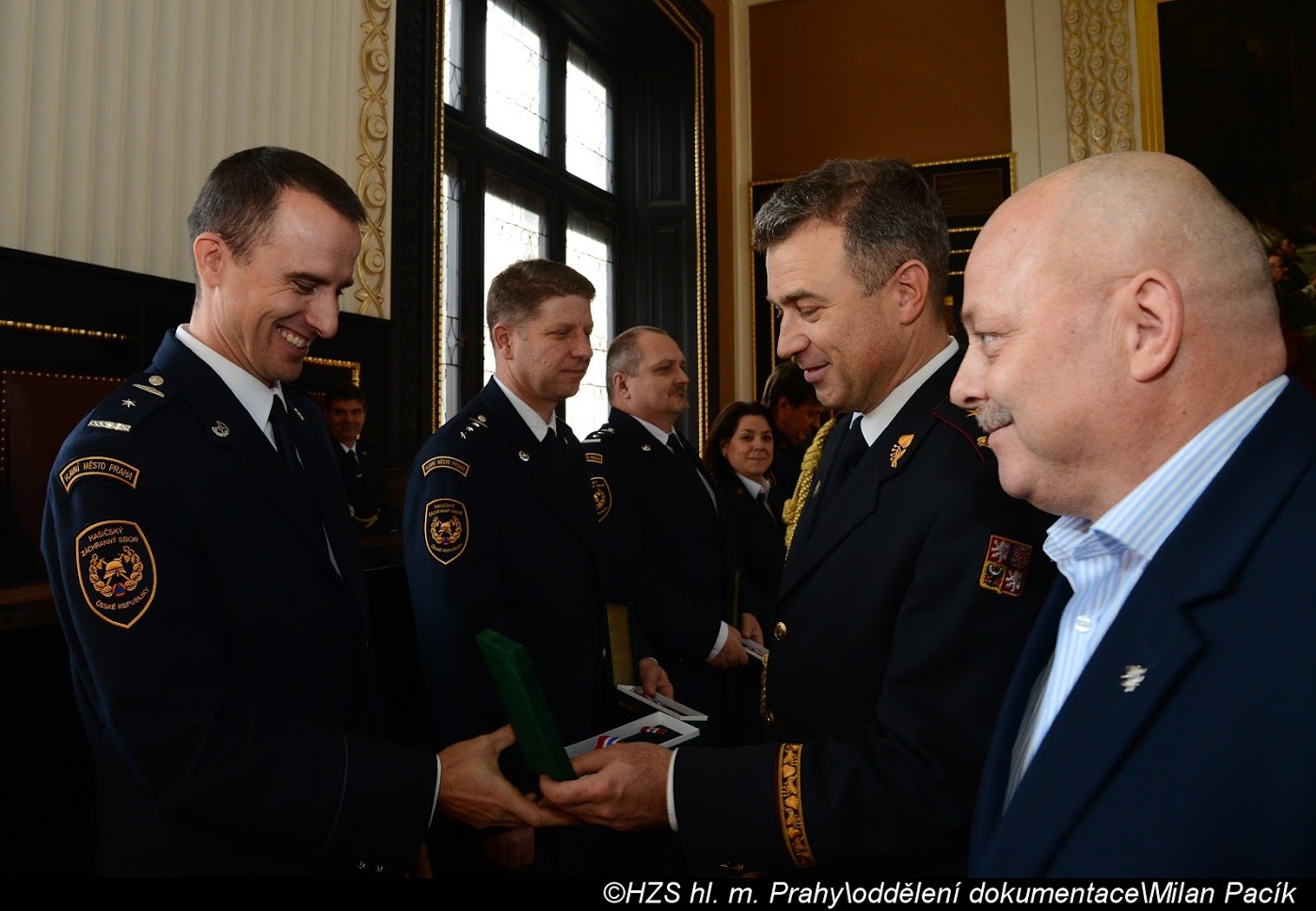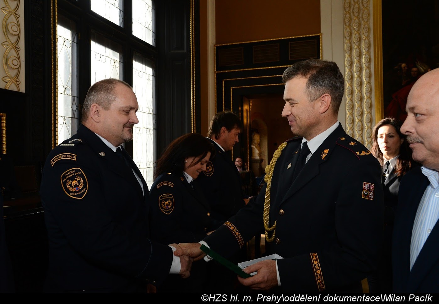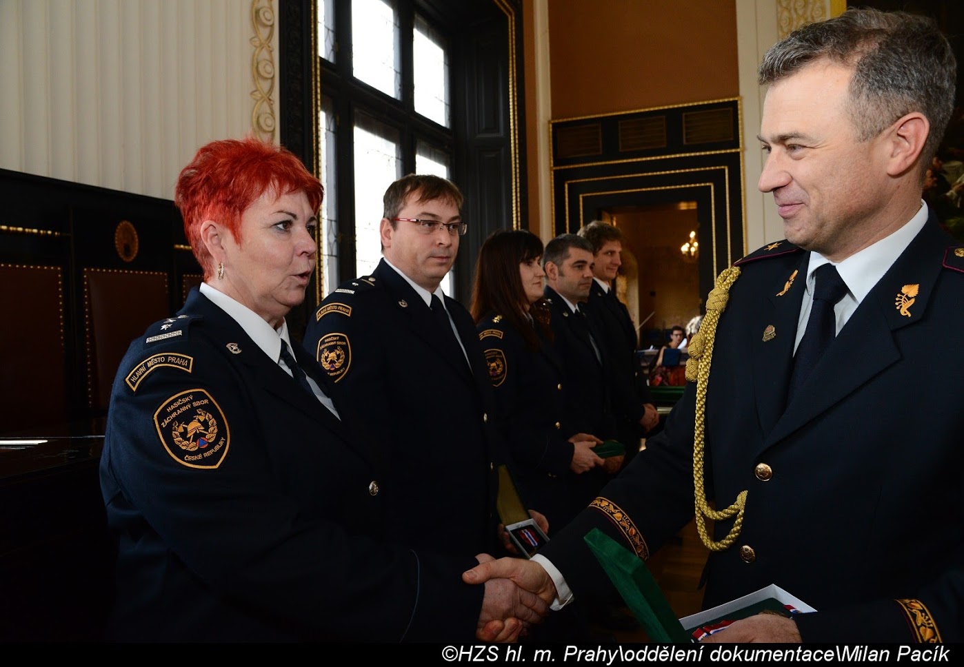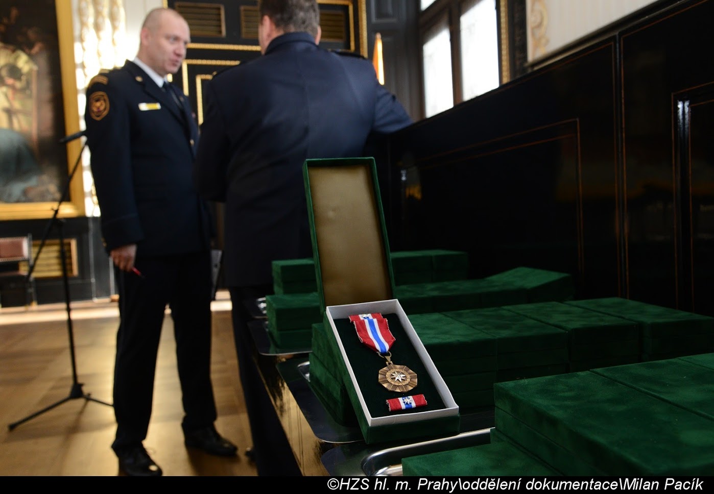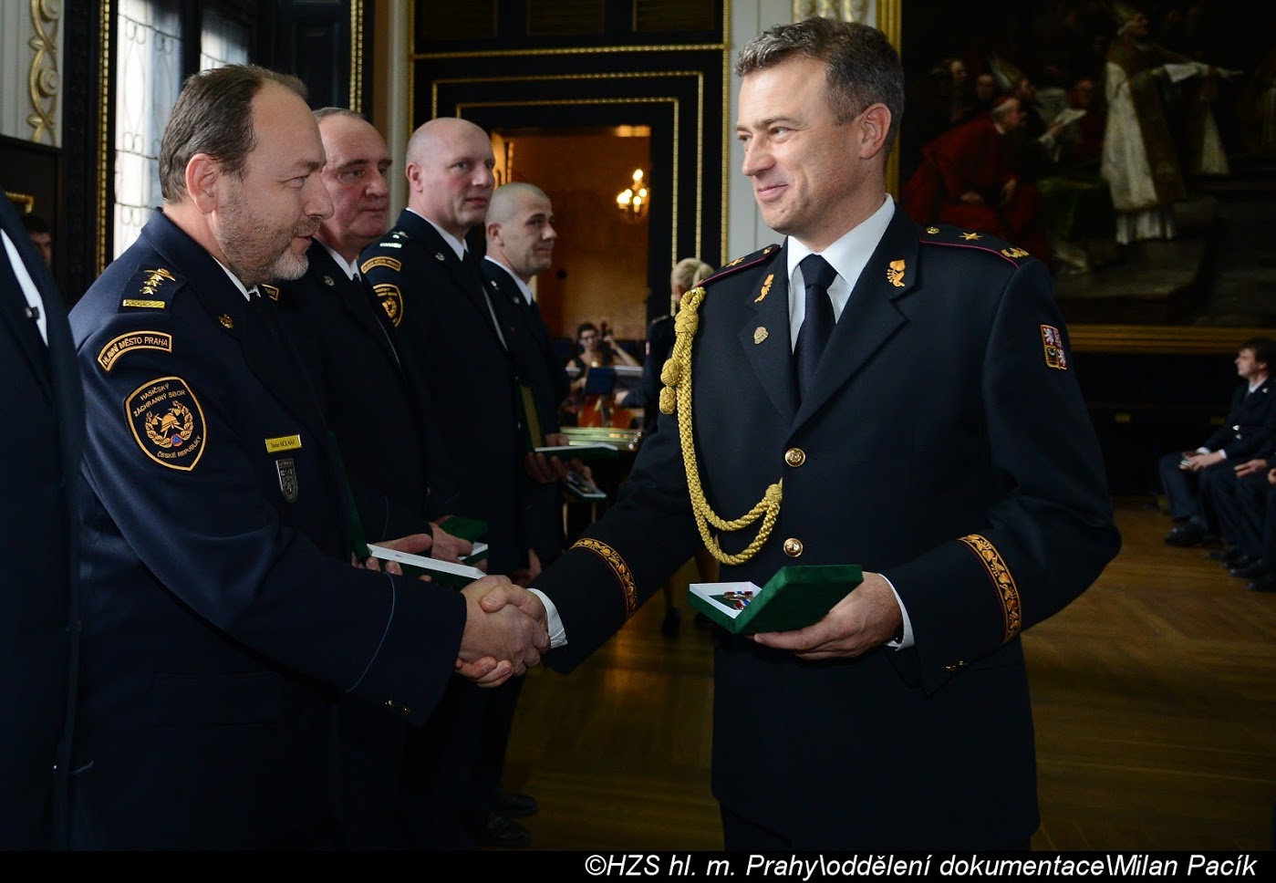 V Brožíkově síni Staroměstské radnice proběhlo slavnostní předání medailí příslušníkům pražských hasičů/FOTOGALERIE