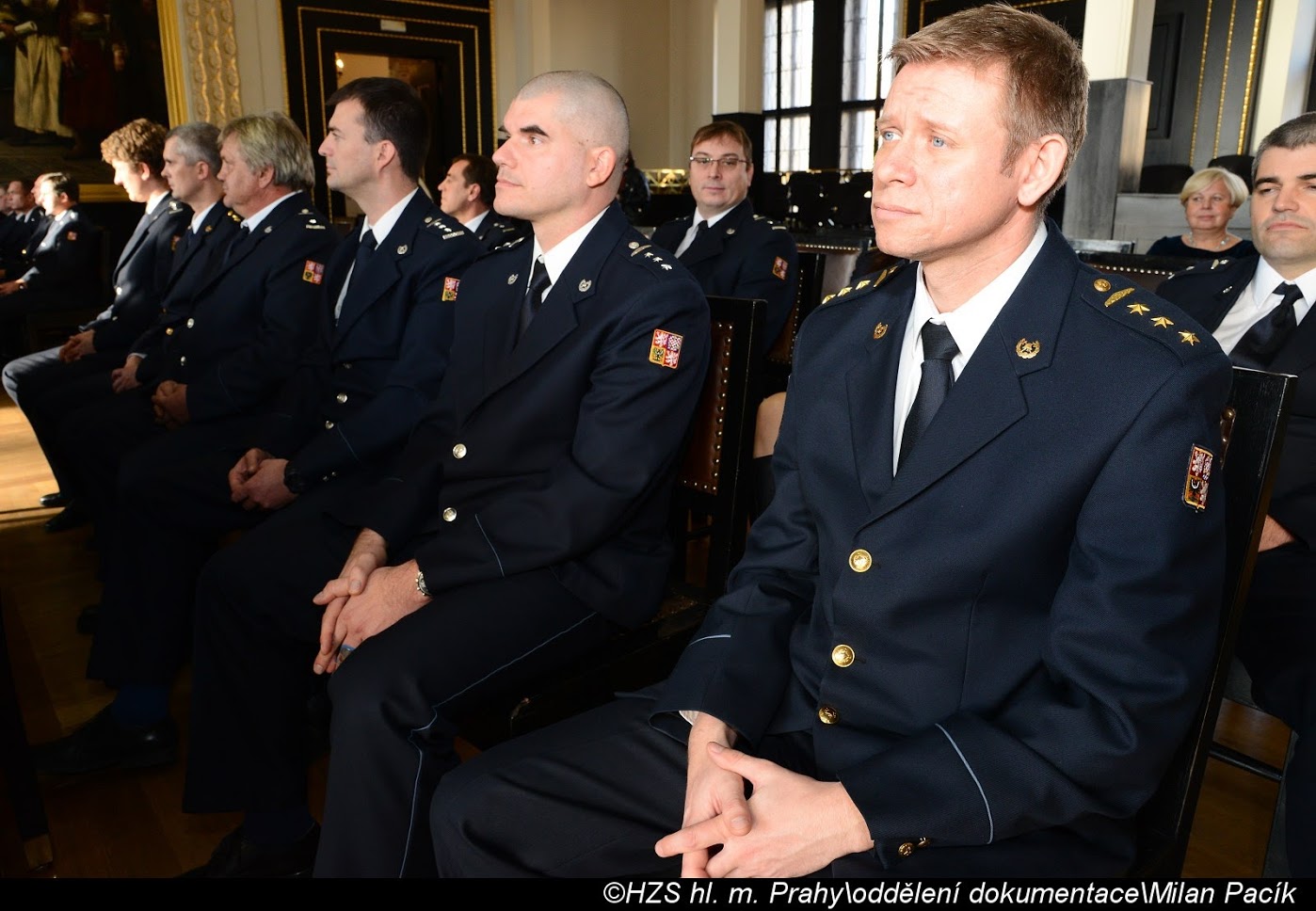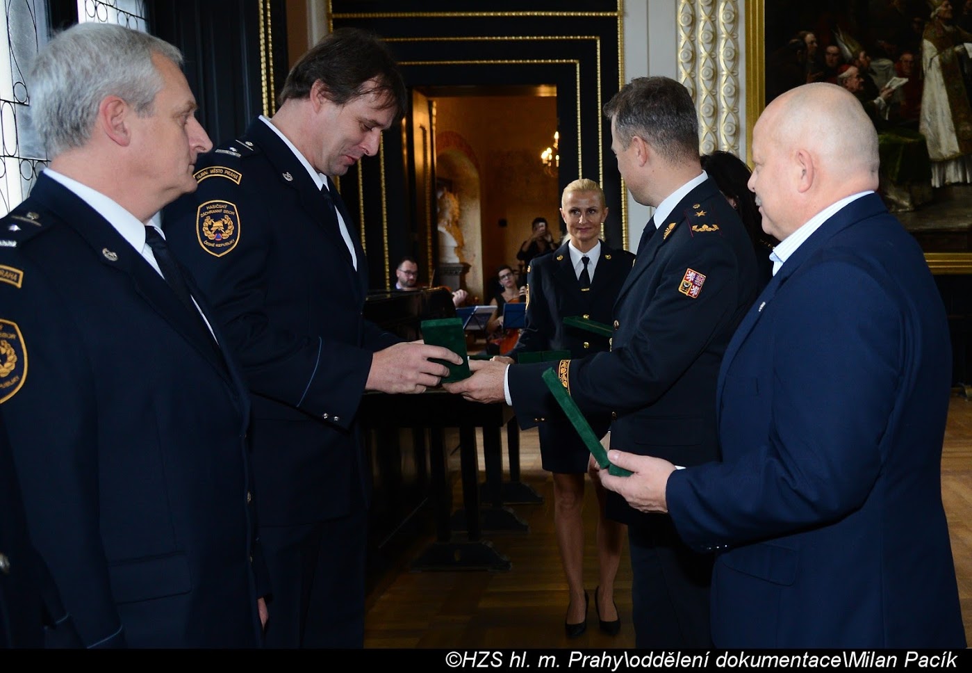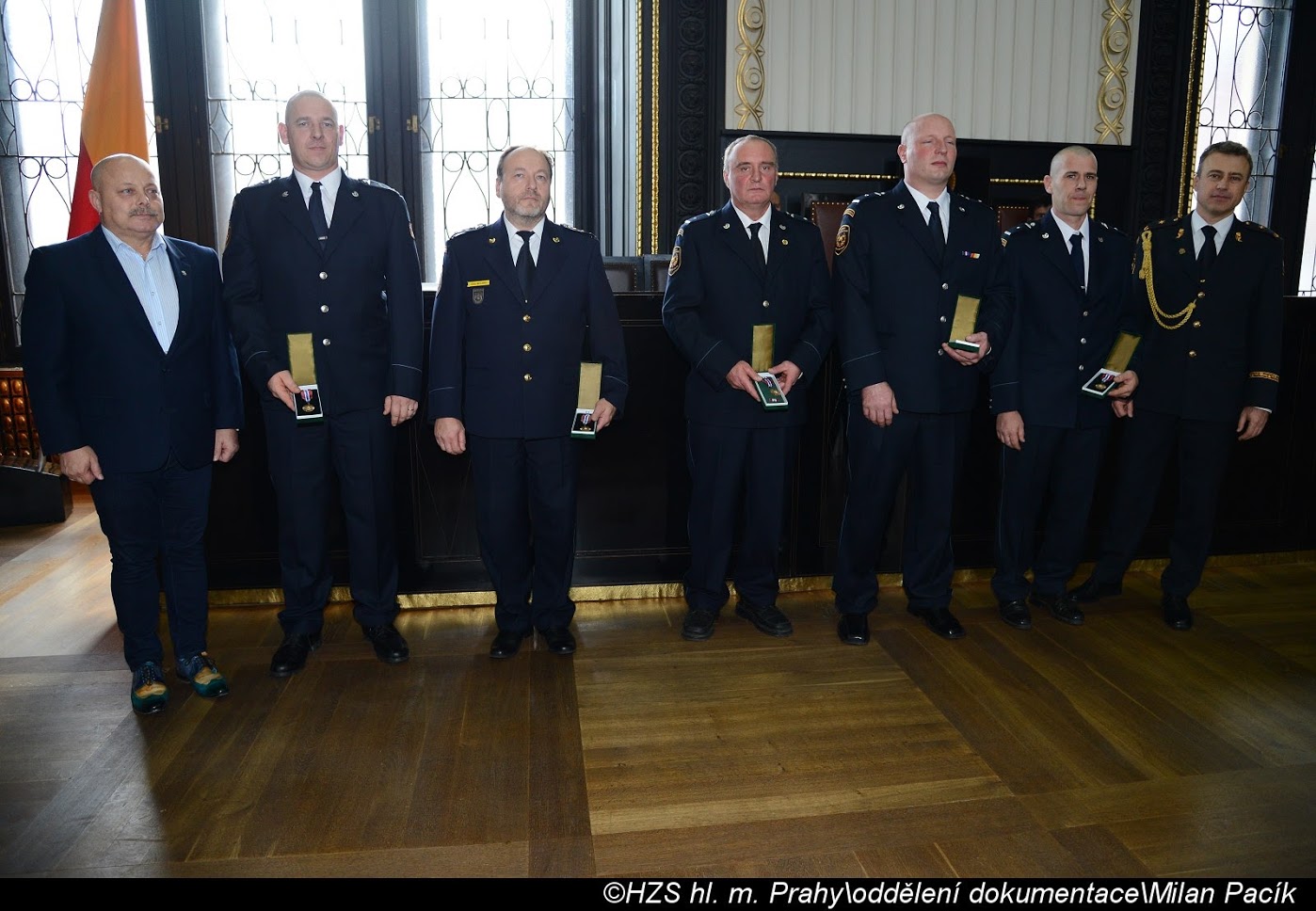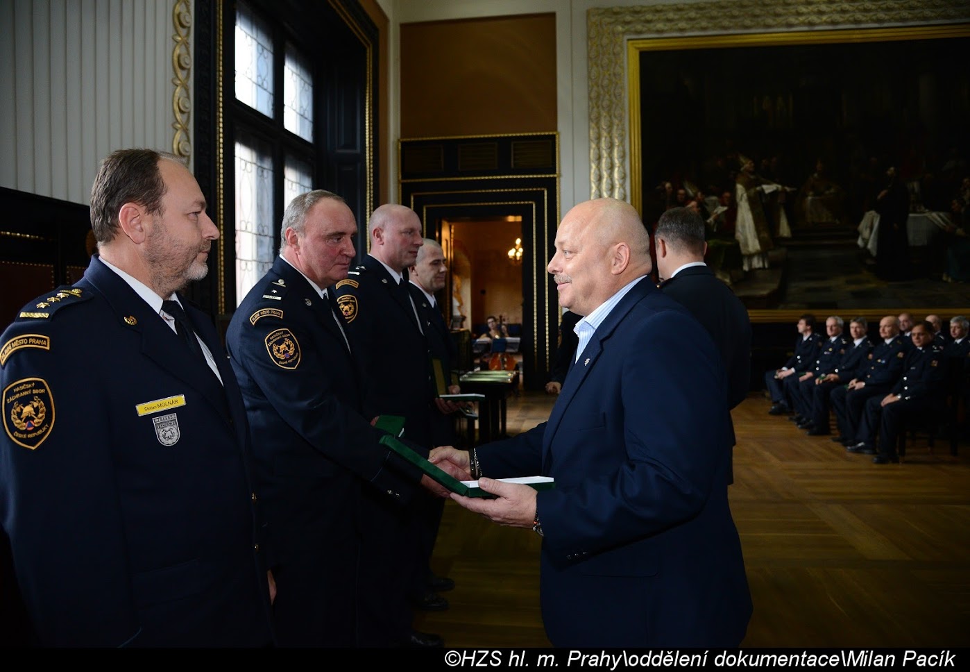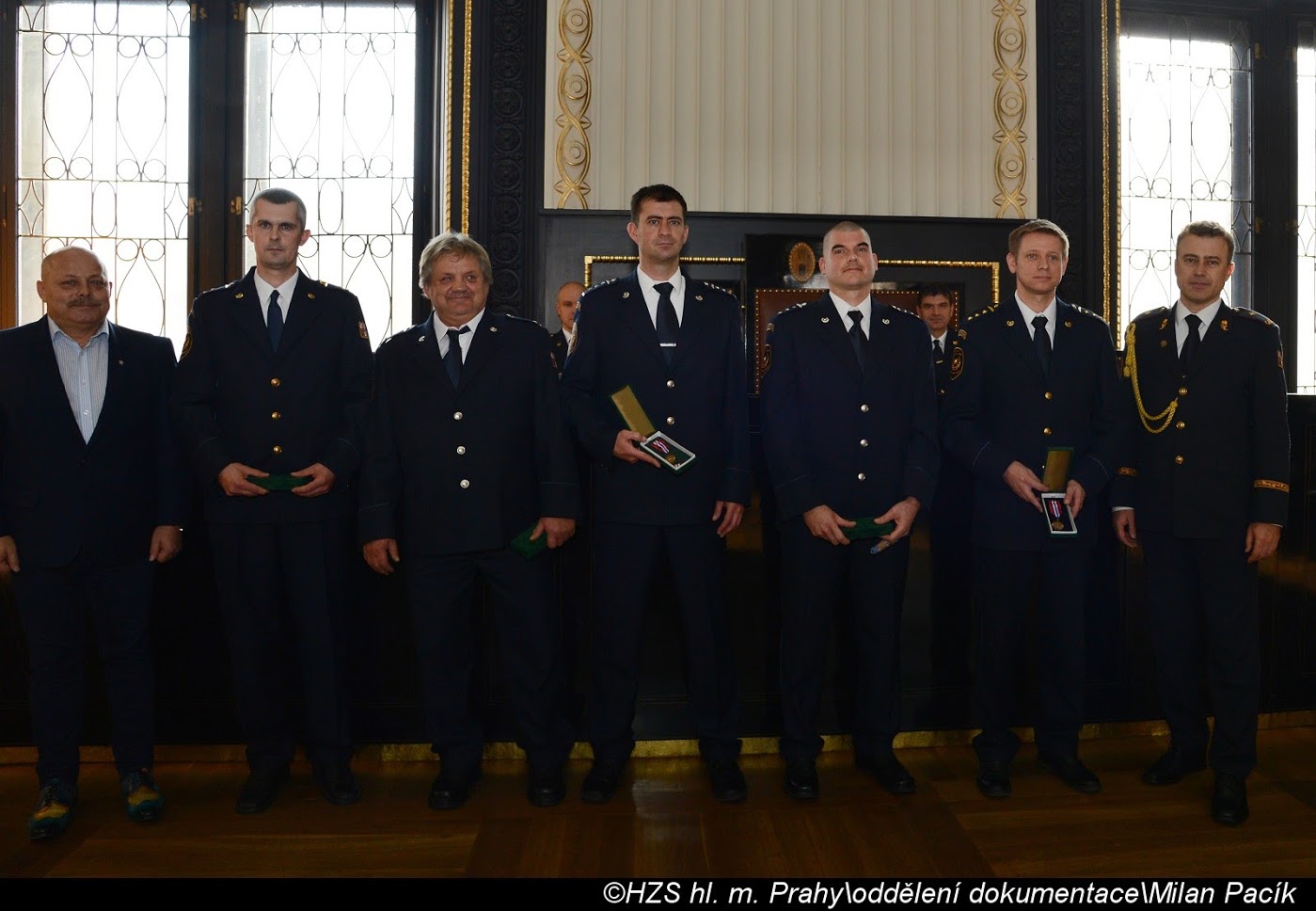 V Brožíkově síni Staroměstské radnice proběhlo slavnostní předání medailí příslušníkům pražských hasičů/FOTOGALERIE