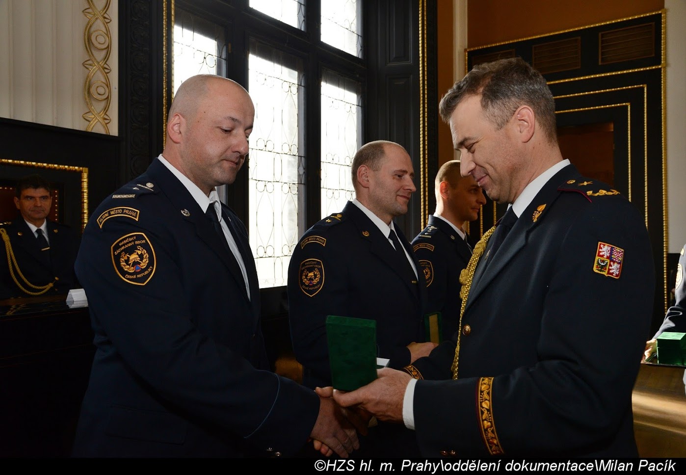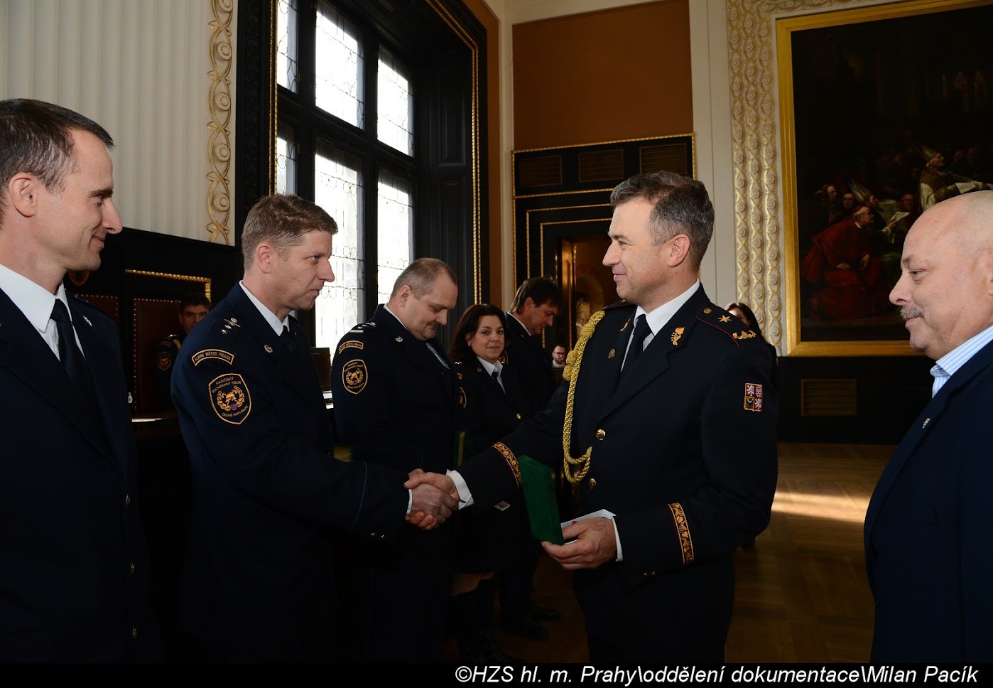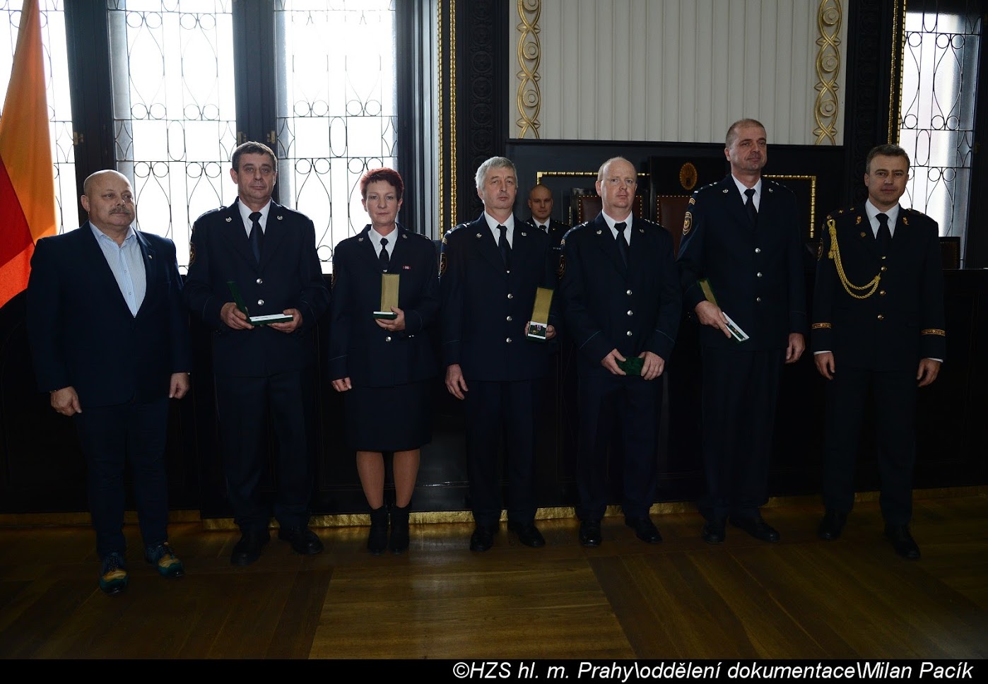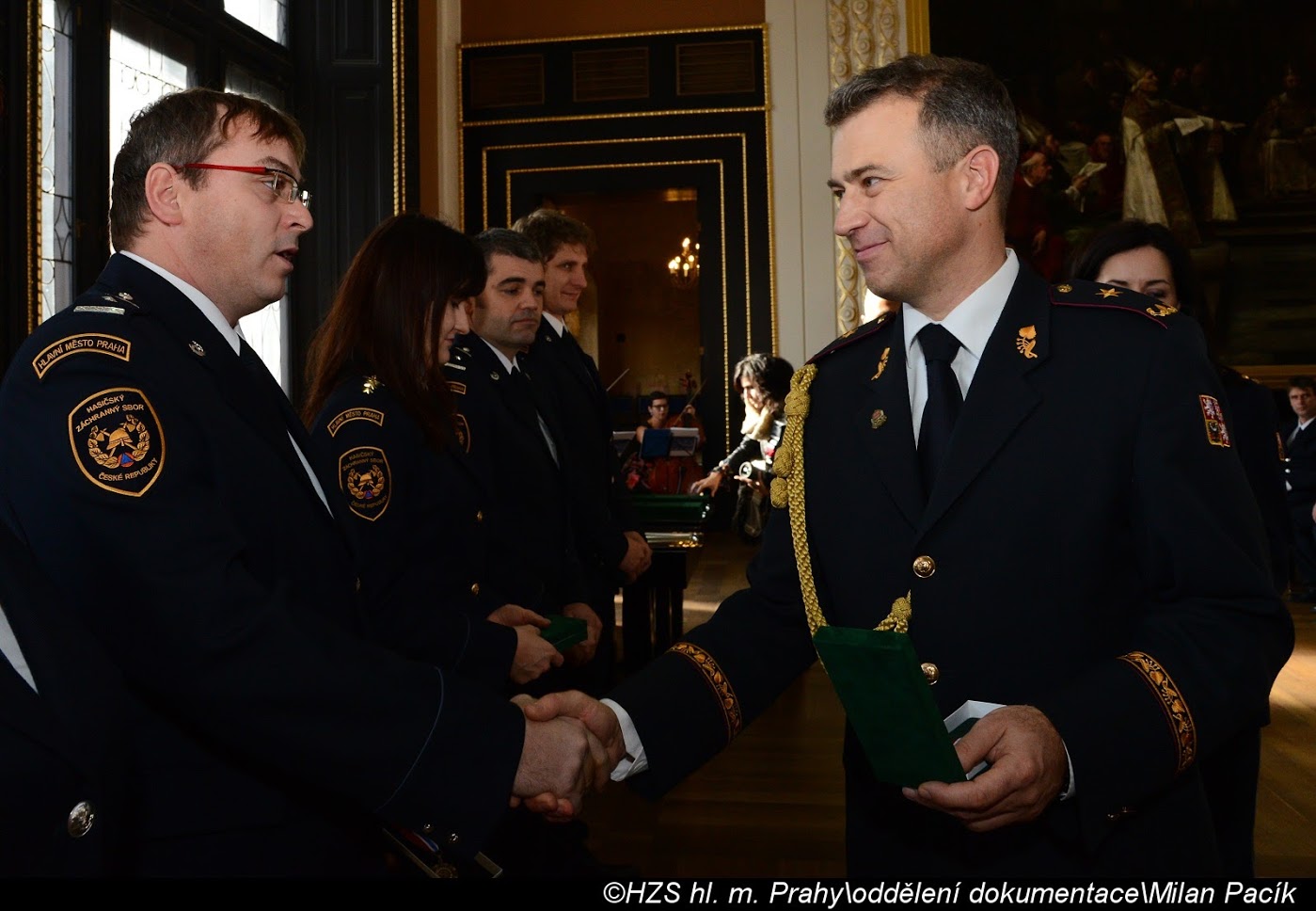 V Brožíkově síni Staroměstské radnice proběhlo slavnostní předání medailí příslušníkům pražských hasičů/FOTOGALERIE