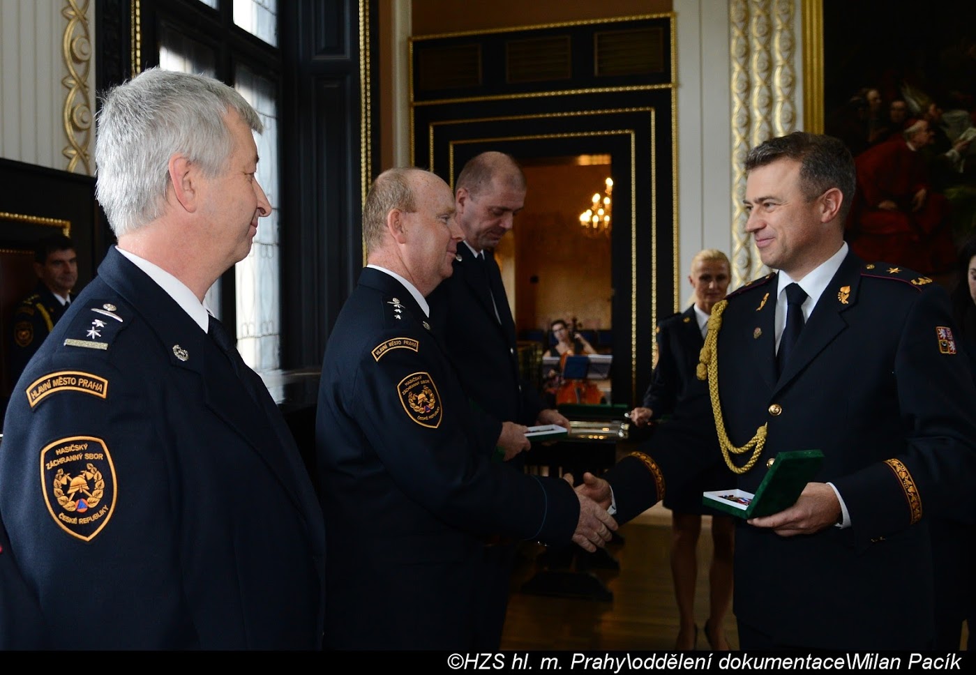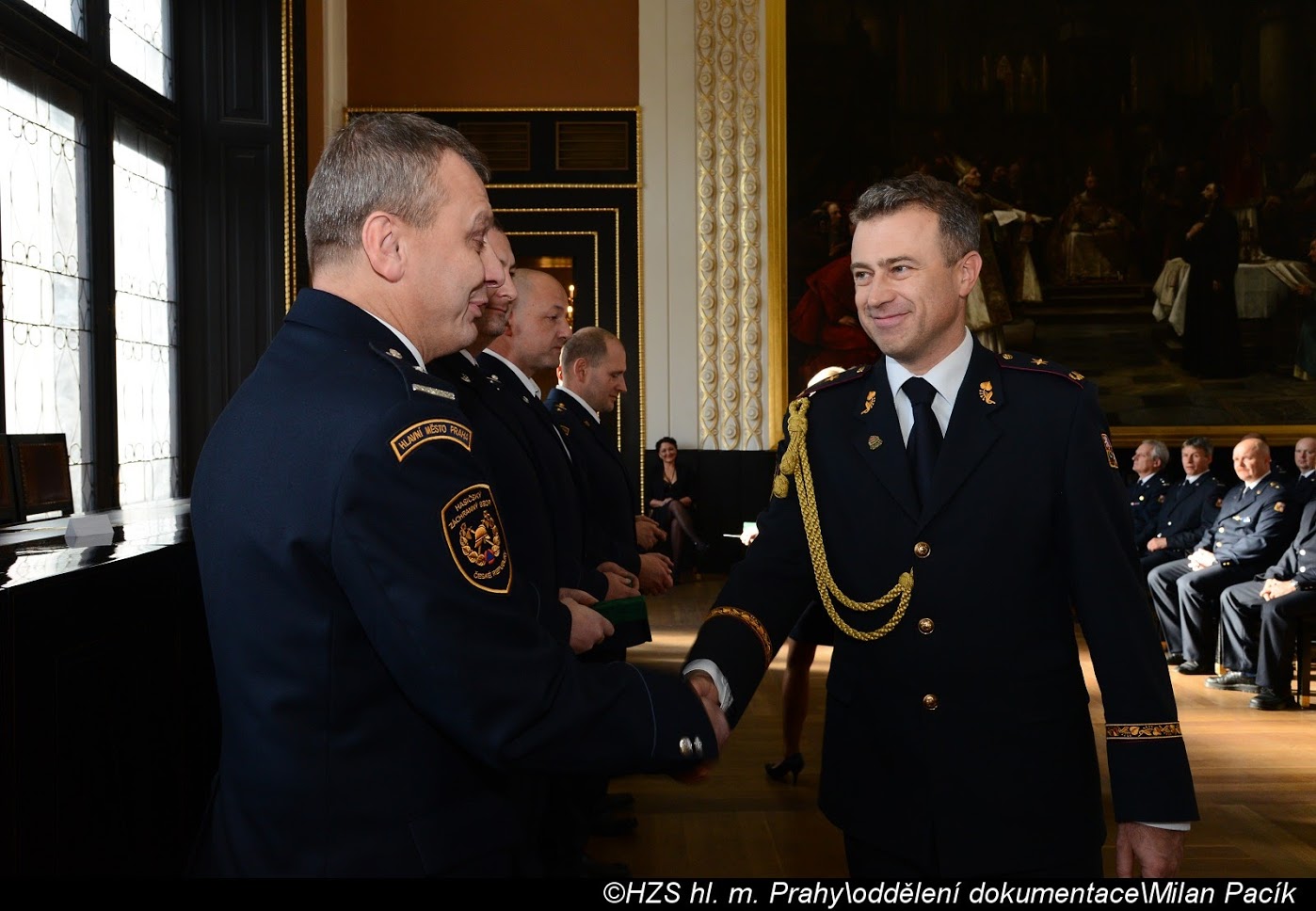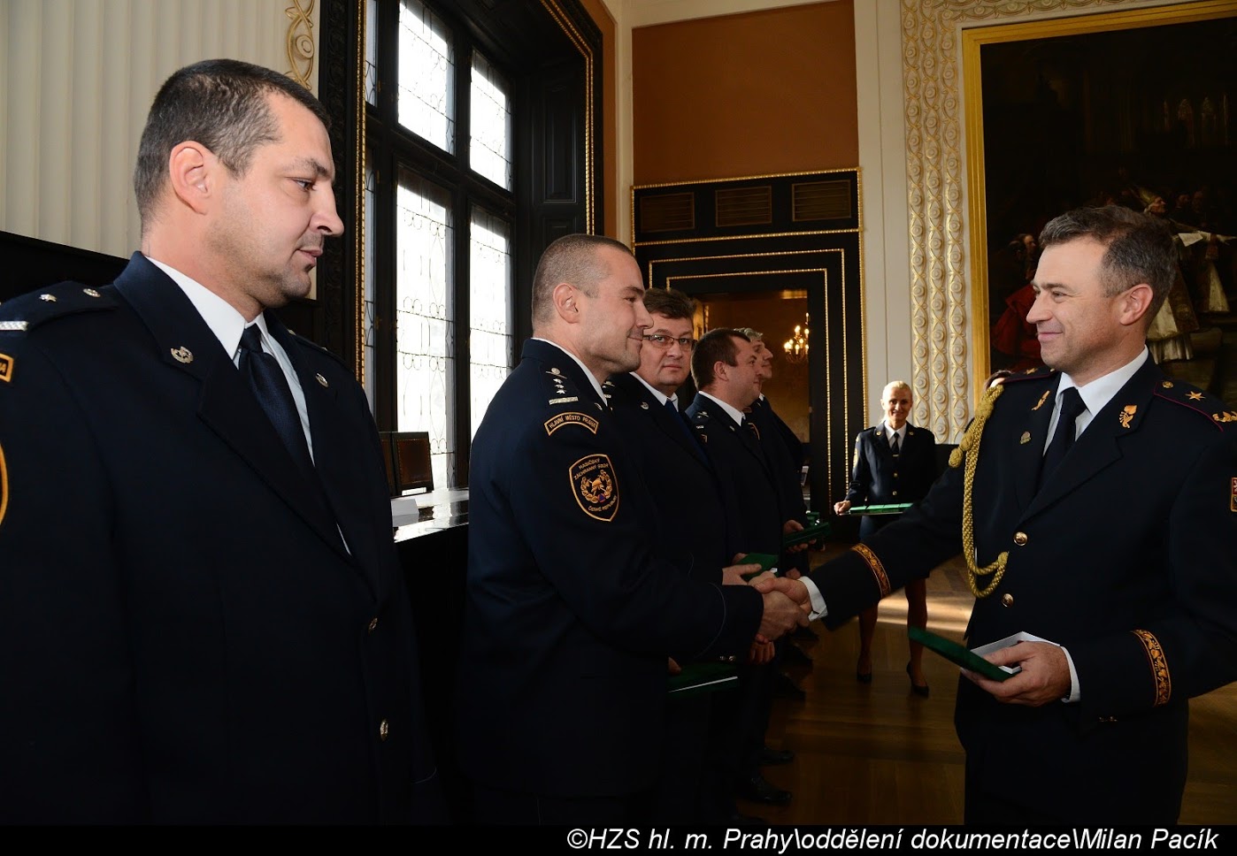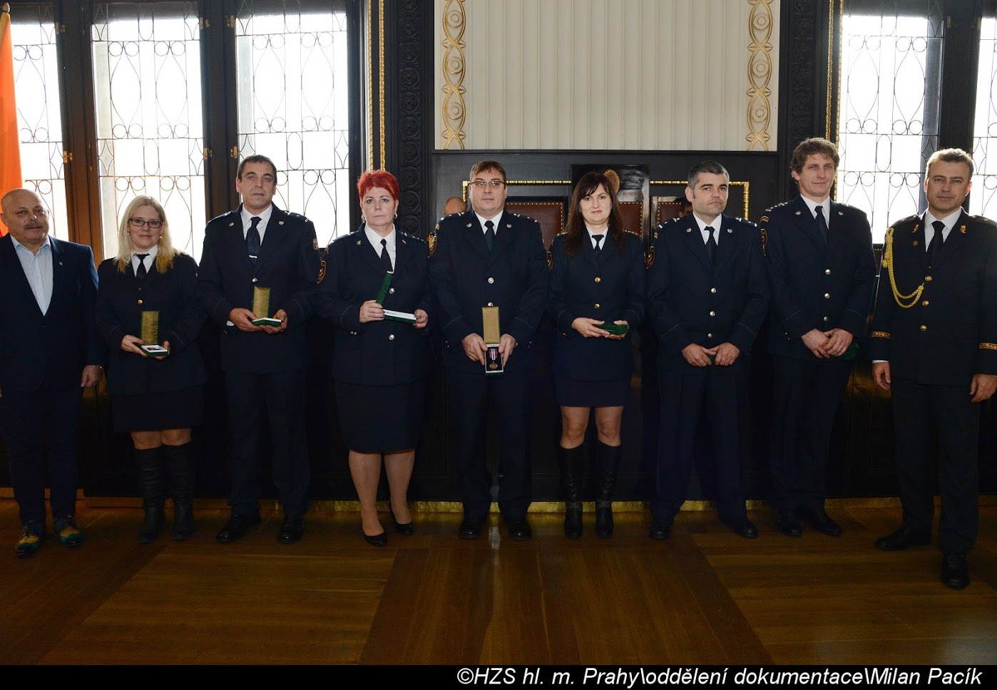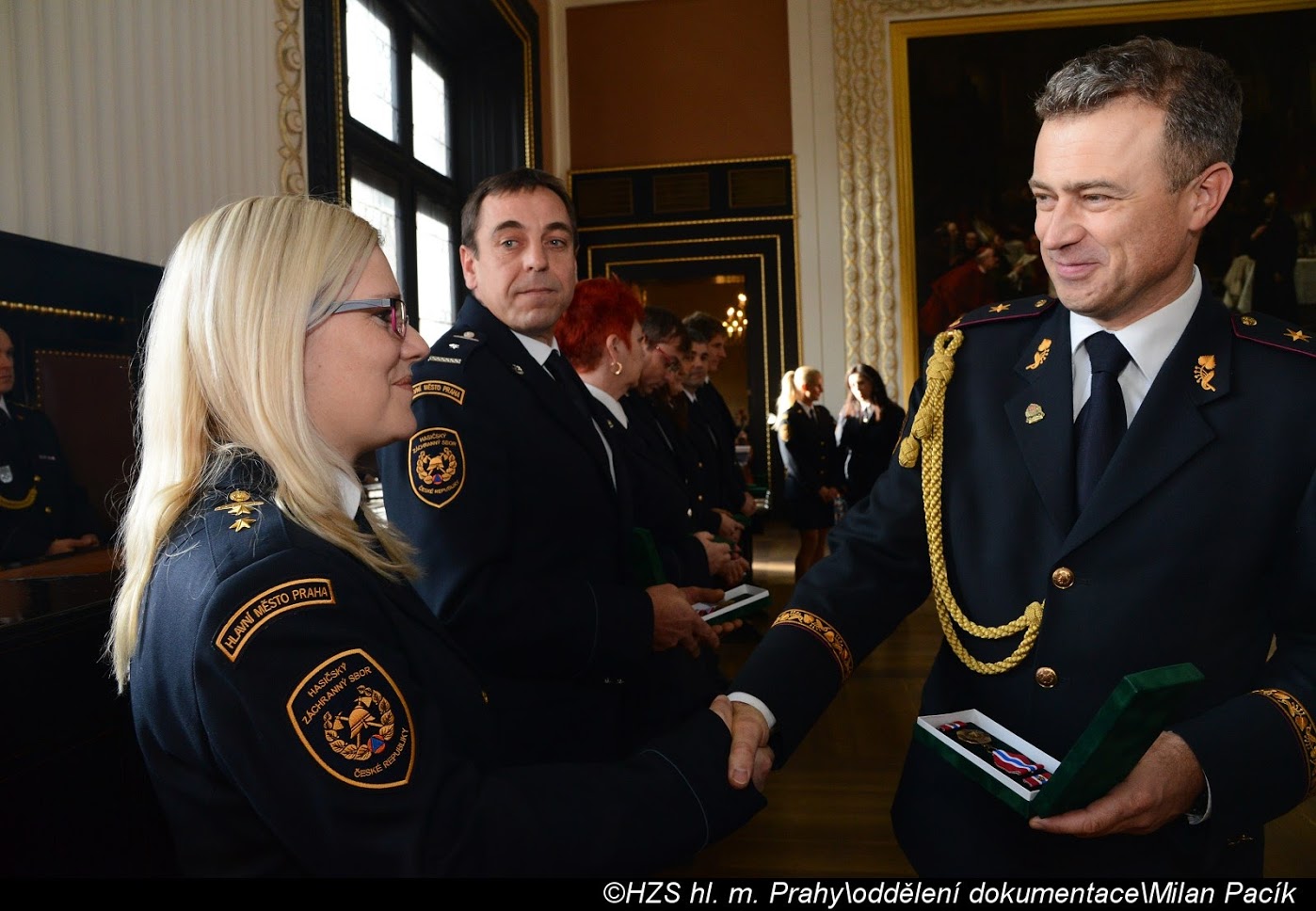 V Brožíkově síni Staroměstské radnice proběhlo slavnostní předání medailí příslušníkům pražských hasičů/FOTOGALERIE