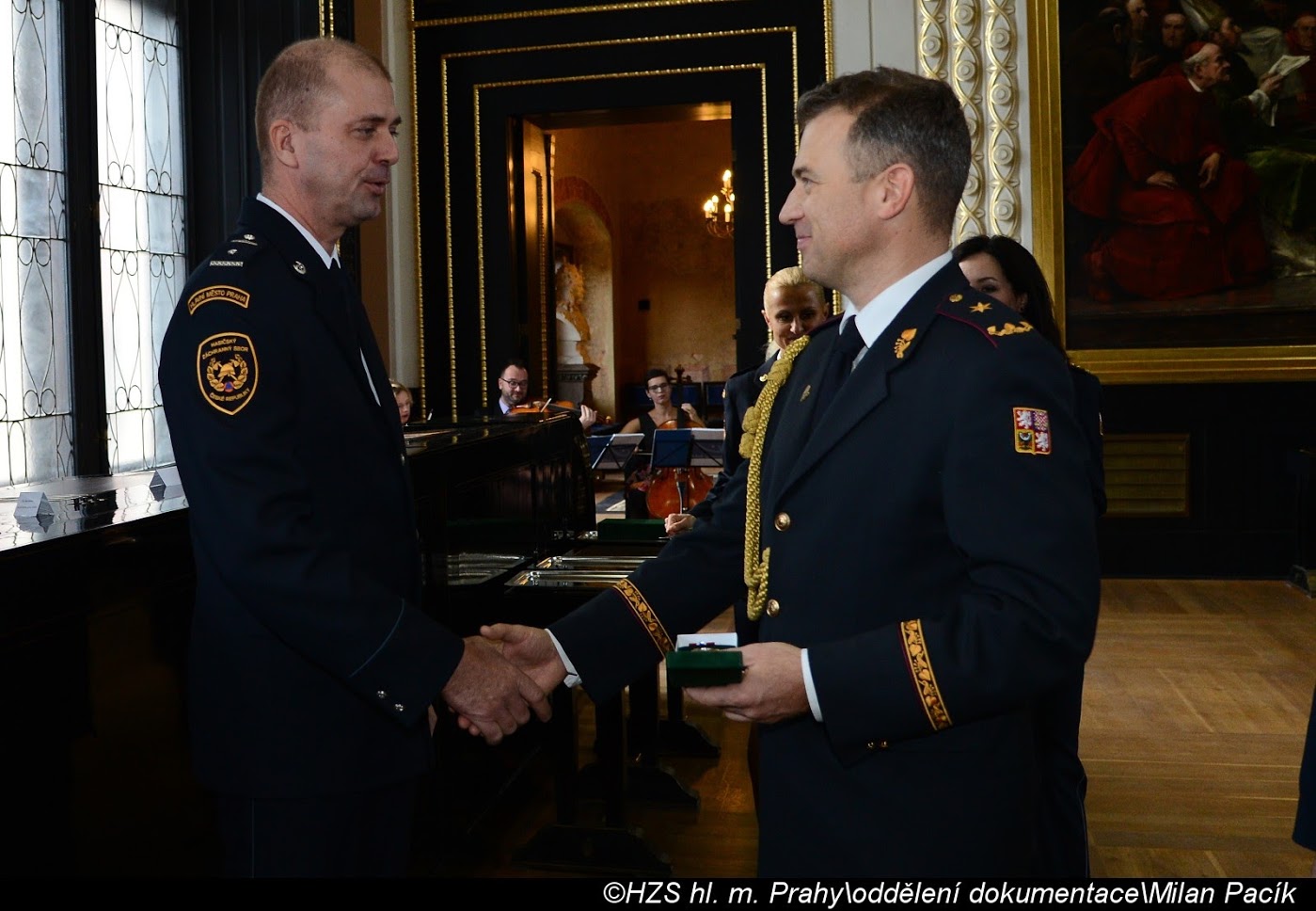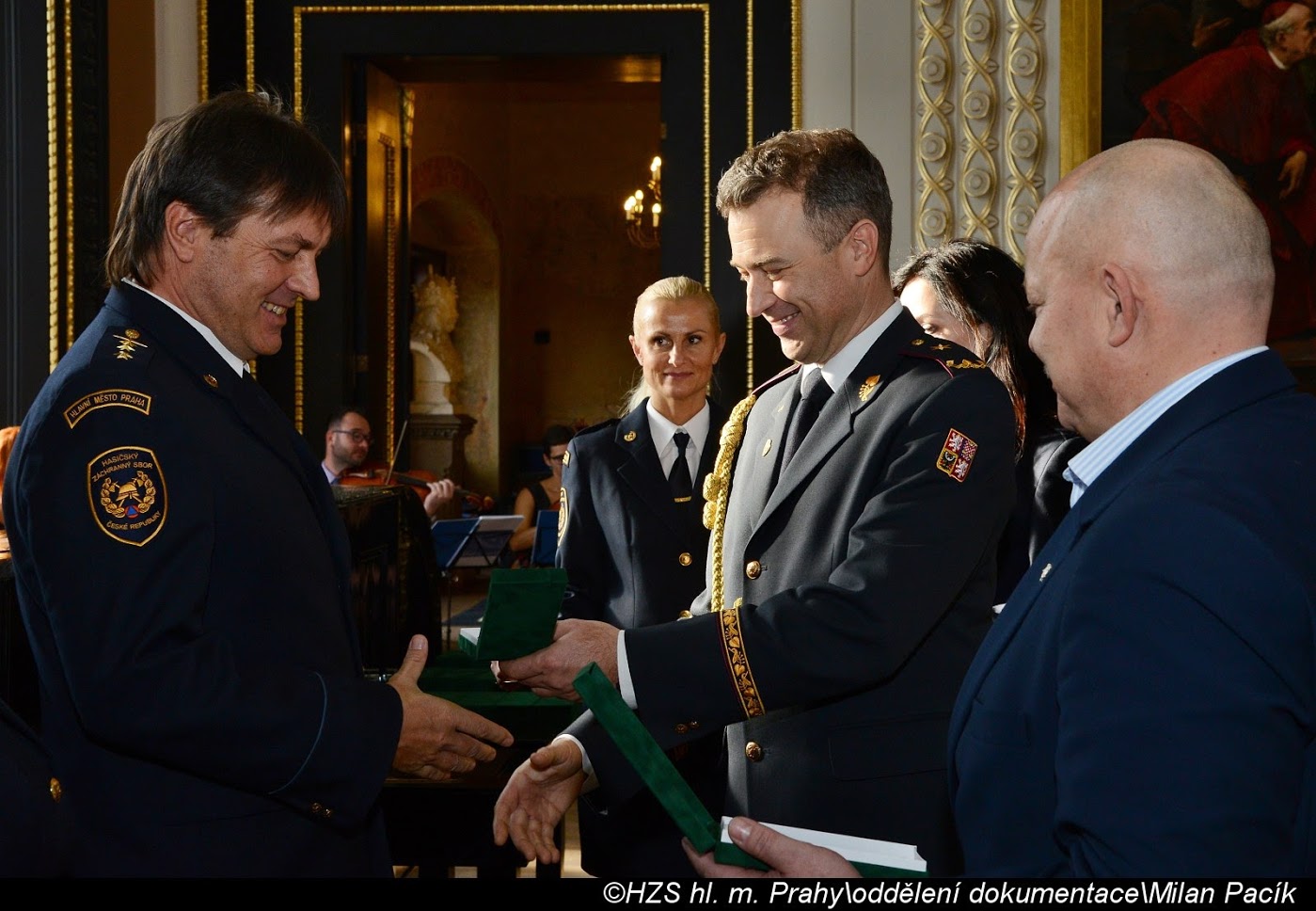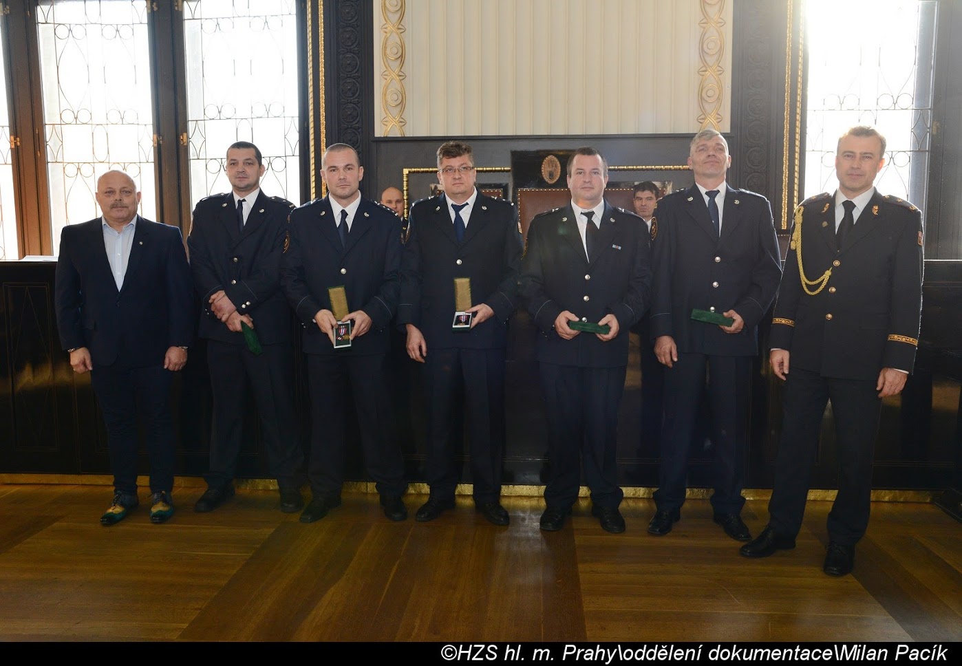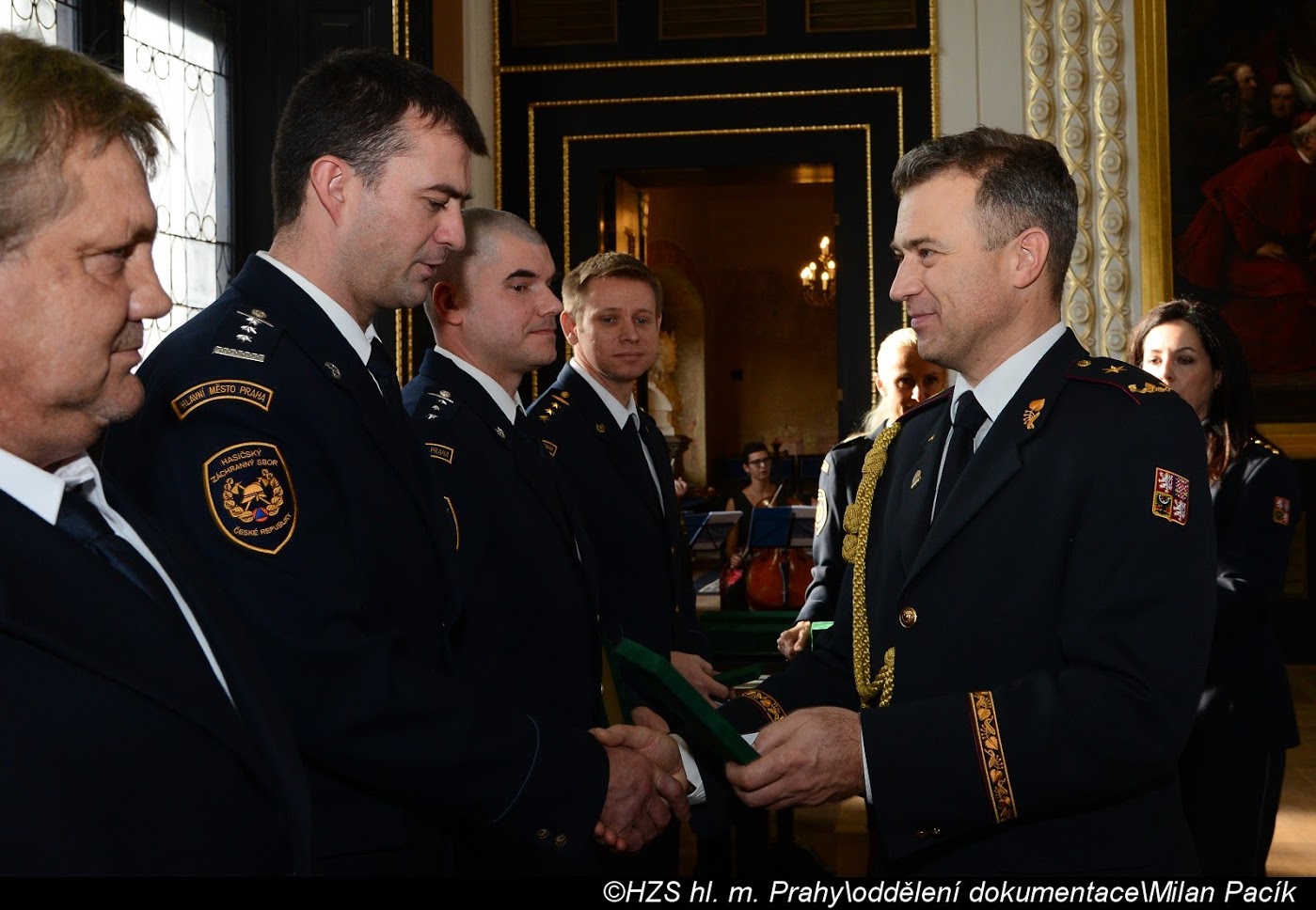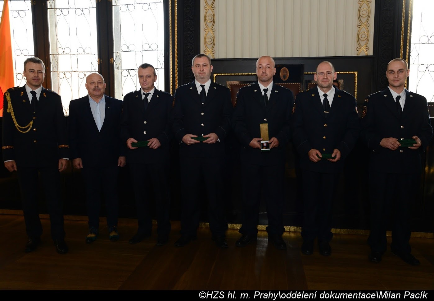 V Brožíkově síni Staroměstské radnice proběhlo slavnostní předání medailí příslušníkům pražských hasičů/FOTOGALERIE