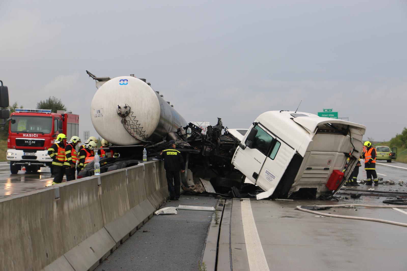Odpoledne  v sobotu 19.srpna 2017 došlo na dálnici D1 k proražení  betonových středových svodidel a k demolici nákladního tahače,při nárazu vznikl  požár, který  se velmi rychle rozšiřil.