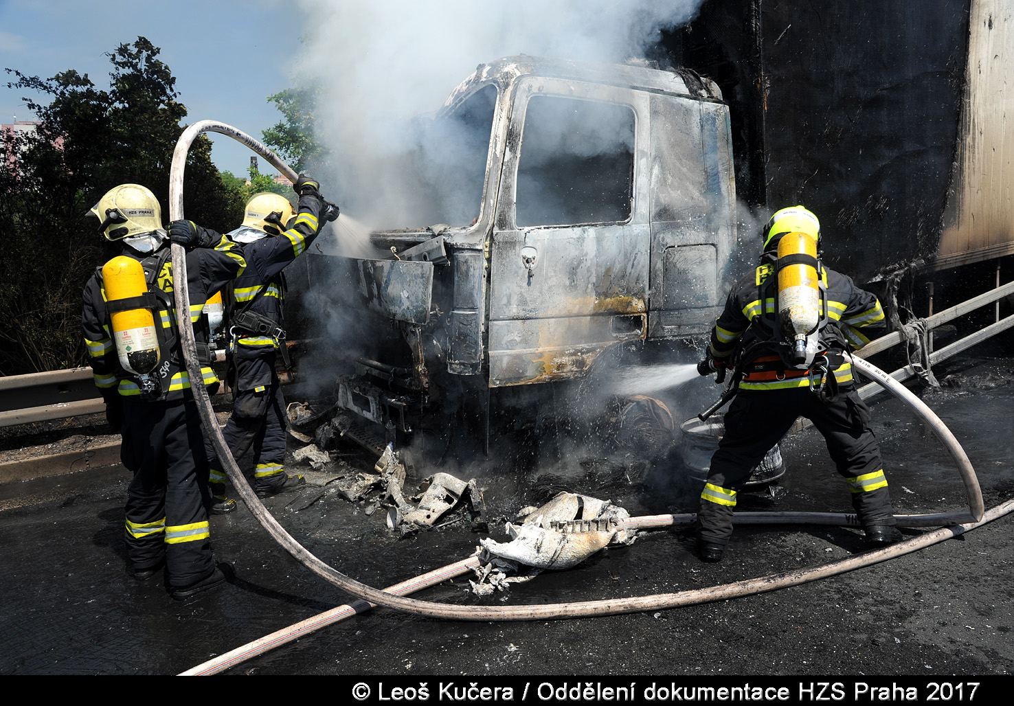 U požáru kamionu na Jižní spojce v oblasti lanového mostu zasahovali v pondělí 29.05.2017 od 13:14 hodin dvě jednotky pražských hasičů ze strašnické a chodovské stanice