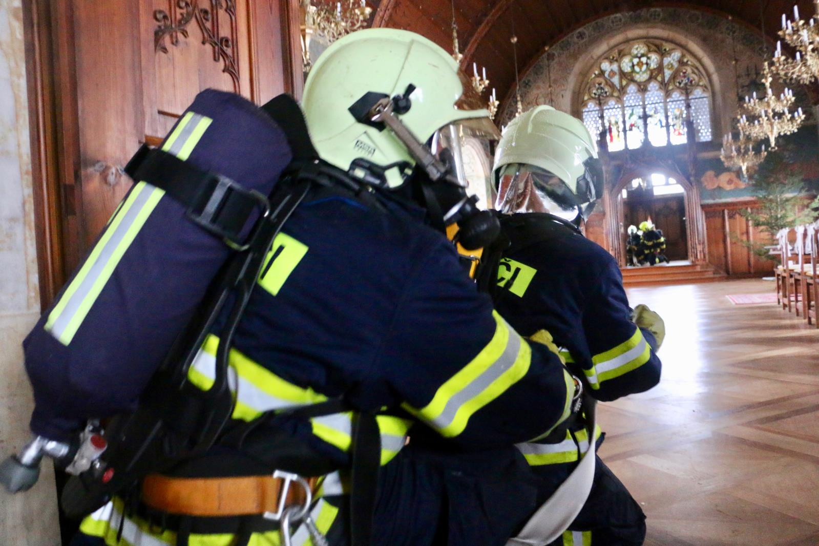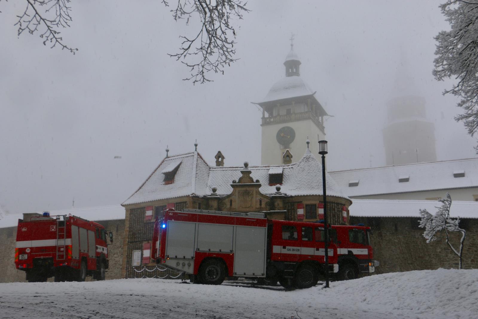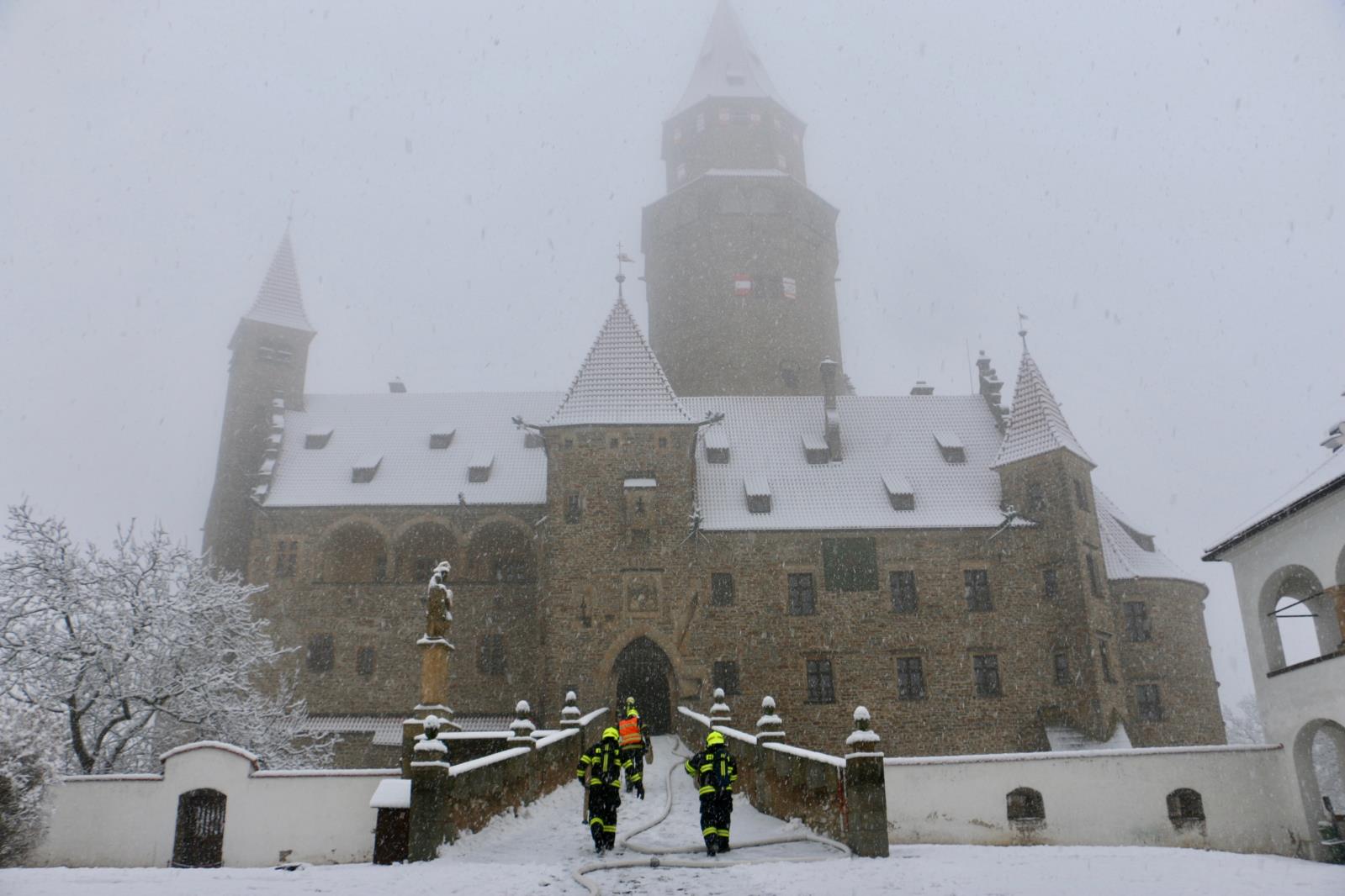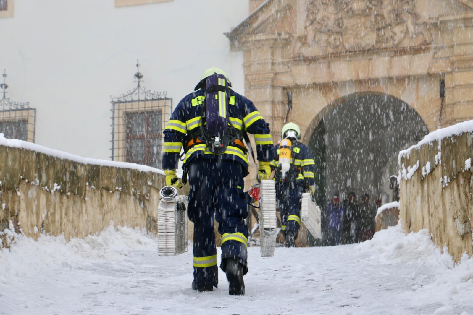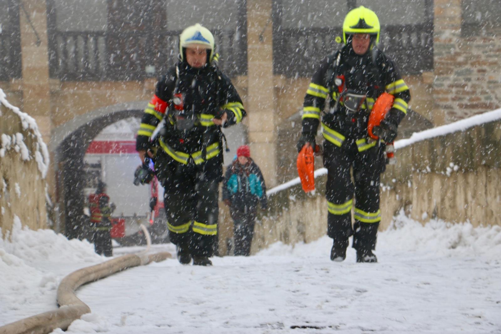 Na hradě Bouzov cvičně hořelo FOTOGALERIE/VIDEO