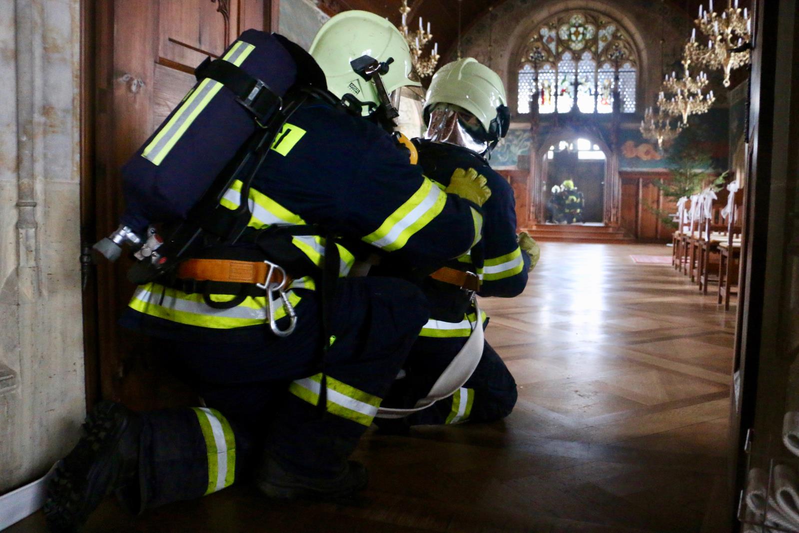Hasiči se znovu vrátili na hrad Bouzov do Rytířského sálu. Tentokrát ne kvůli slavnostnímu předávání medailí, ale kvůli fiktivnímu požáru, který vznikl přímo v Rytířském sále. To bylo hlavní téma cvičení, které proběhlo ve čtvrtek 30. listopadu 2017 od 9:00 hodin na hradě Bouzov.