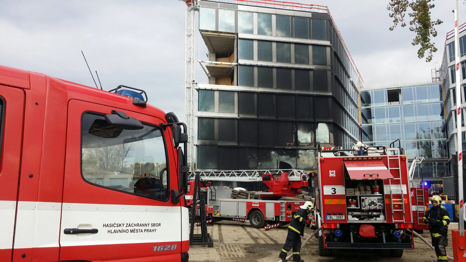 Tři jednotky pražských hasičů zasahovaly dne 12.10.2017 od 10:12 hodin u požáru na staveništi administrativní budovy v Argentinské ulici v Praze 7.