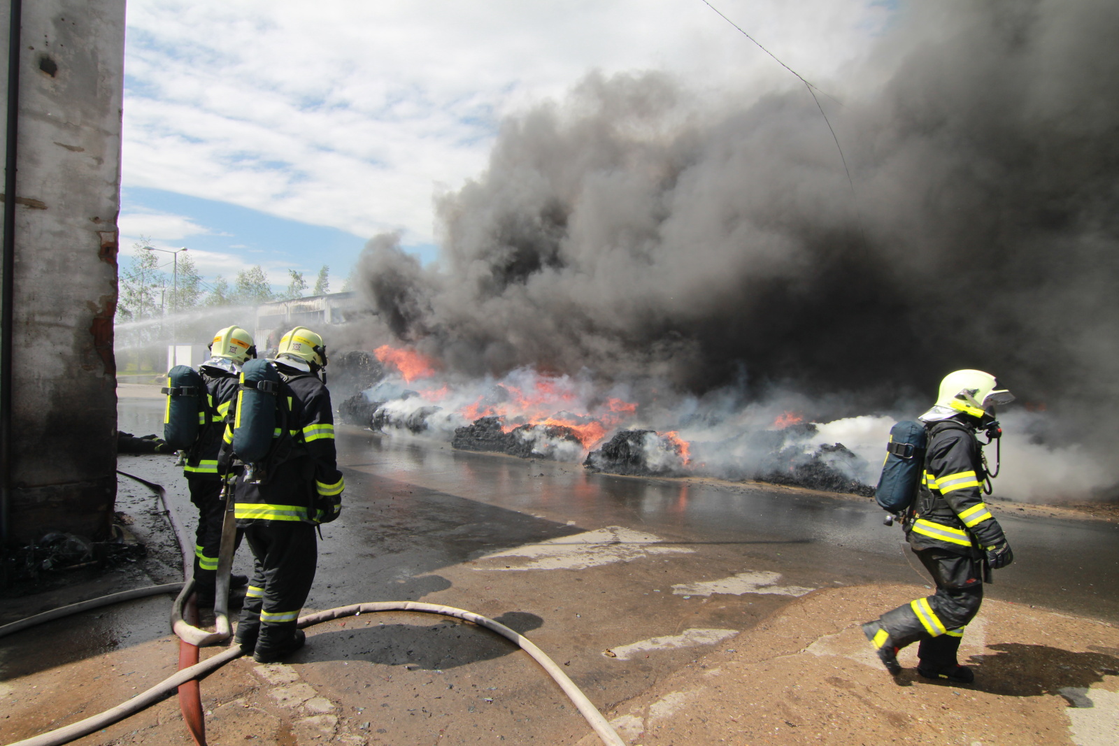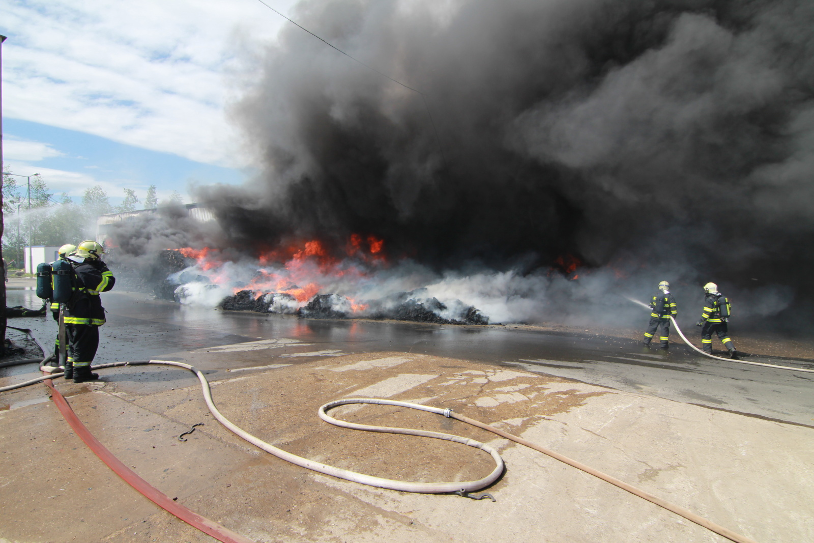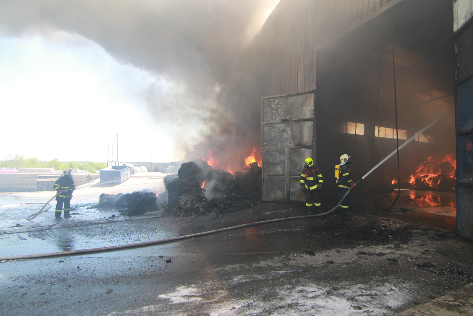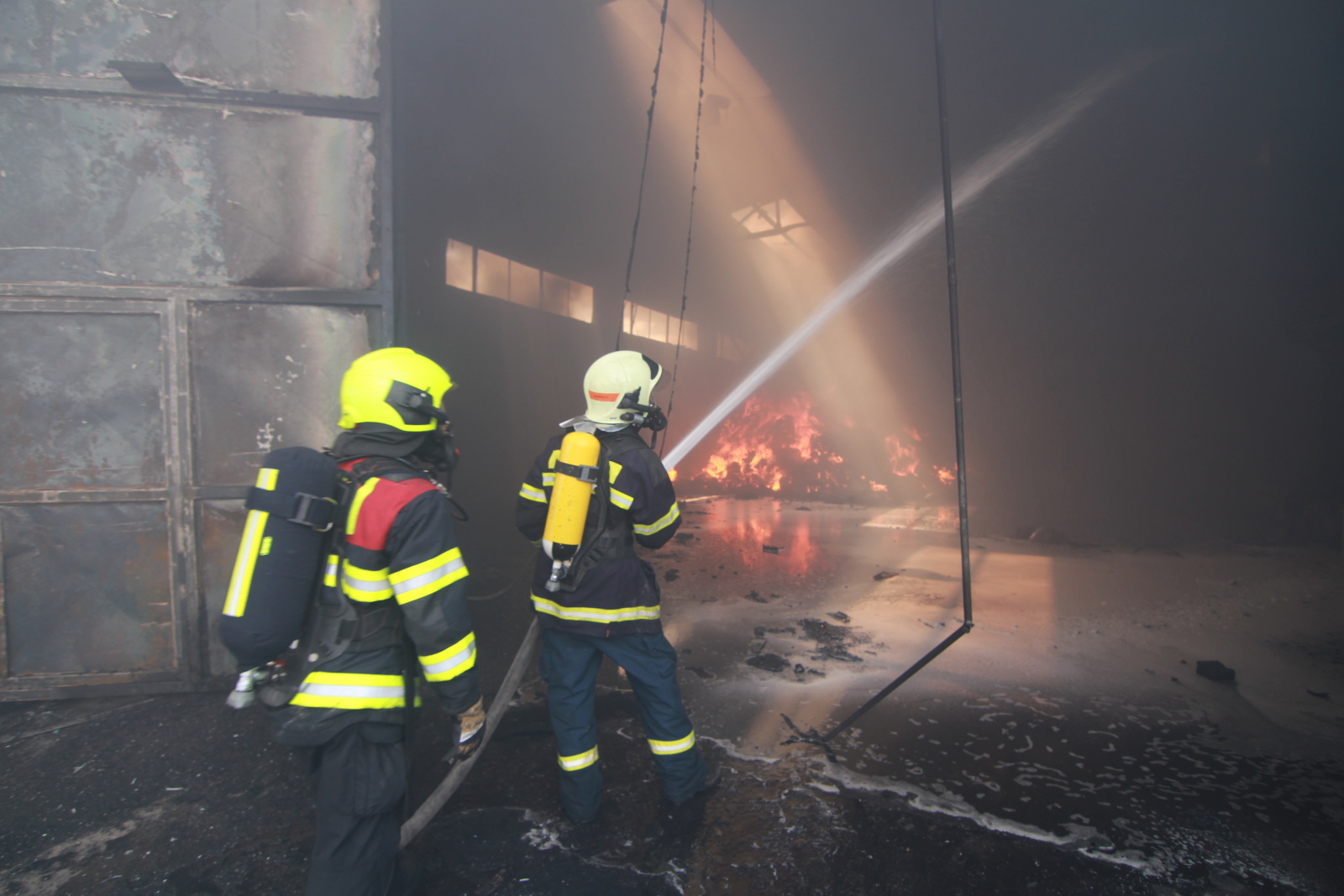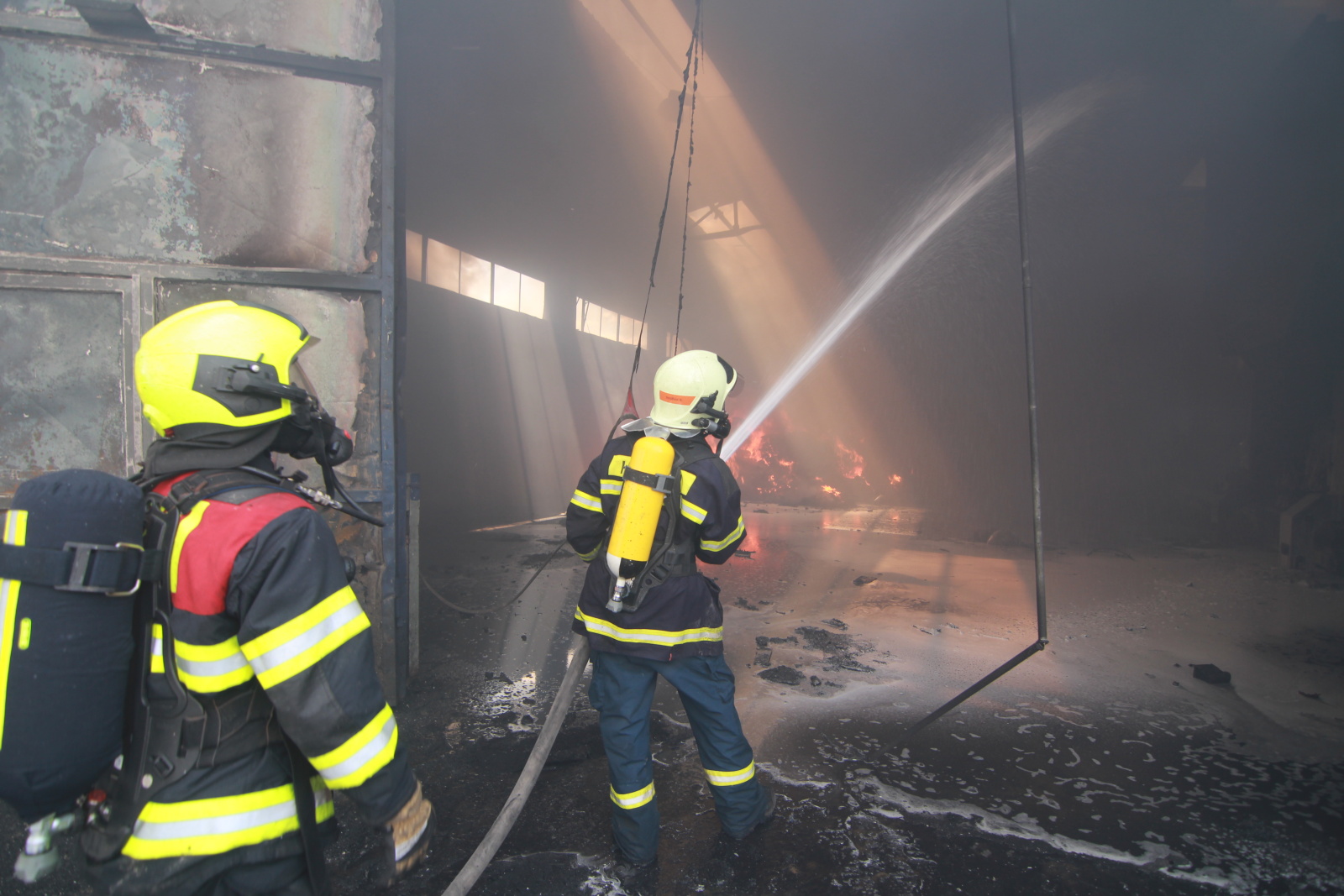 V době jejich příjezdu byla hala o rozměrech 20 x 50 metrů požárem zcela zasažena a zároveň požár zachvátil i nabalíkovaný materiál před halou. Hasiči se prvotně soustředili na záchranu dalších objektů v těsném sousedství haly, mezi kterými byla i nadzemní nádrž s pohonnými hmotami. Zároveň s příjezdem prvních jednotek bylo zřejmé, že hydrantová síť, kterou je areál vybaven, má nedostatečnou kapacitu pro tak rozsáhlý zásah. Proto velitel zásahu rozhodl o vyhlášení třetího stupně požárního poplachu a požádal o povolání dalších sil a prostředků. K požáru, který byl viditelný z velké dálky, postupně vyrazilo ještě téměř třicet jednotek – v rámci mezikrajské výpomoci i z HZS hlavního města Prahy.