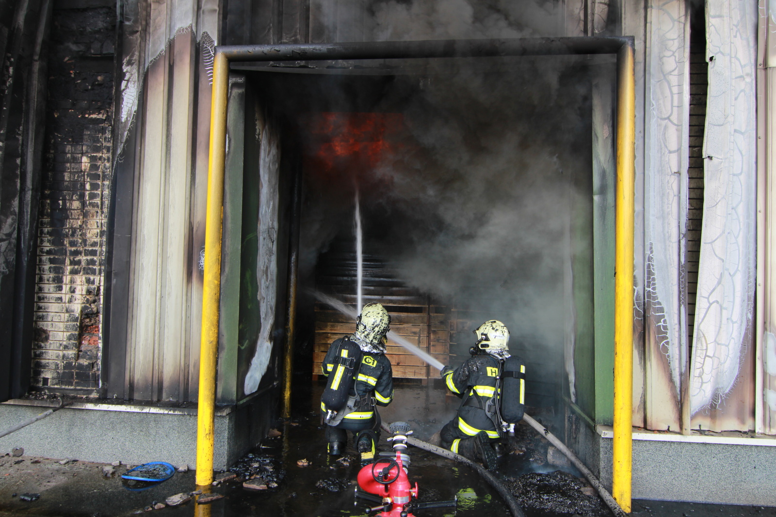 Při příjezdu první jednotky na místo se požár nekontrolovatelně šířil v opláštění budovy a nabíral na intenzitě, velitel zásahu proto rozhodl o vyhlášení třetího poplachového stupně. K požáru tak postupně zamířily další jednotky i ze širšího okolí a v rámci mezikrajské pomoci byla na místo vyslána také technika z několika stanic HZS hl. města Prahy.