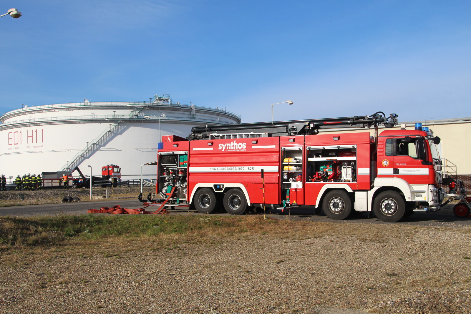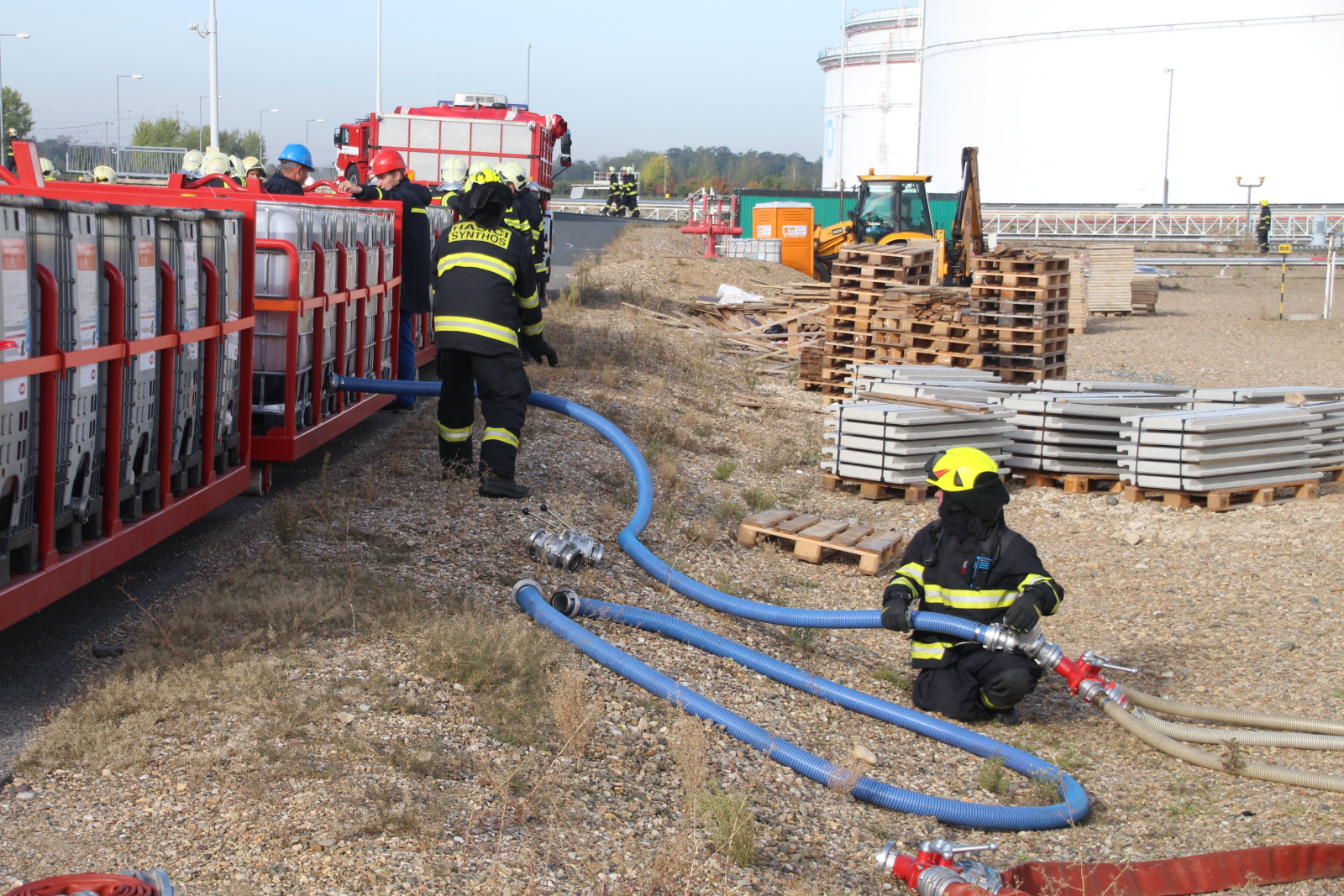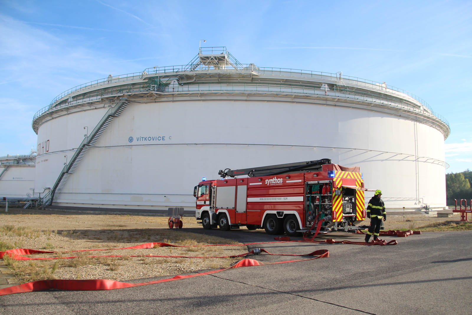 Událost byla hned od počátku řešena ve třetím stupni požárního poplachového plánu. Proto operační důstojník na místo vyslal jednotku HZS podniku Synthos, a. s., a také jednotky HZS Středočeského kraje ze stanic Kralupy nad Vltavou, Mělník, Slaný, Neratovice, Kladno a Roztoky.