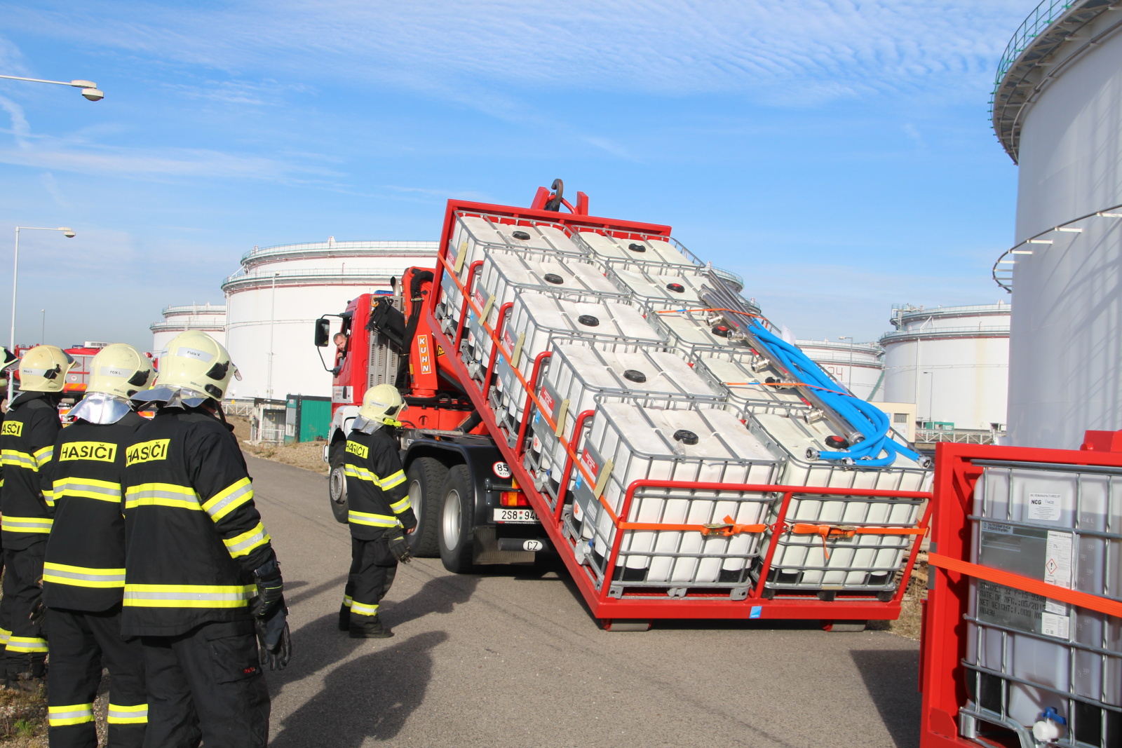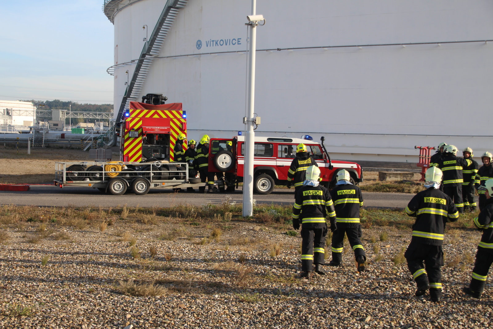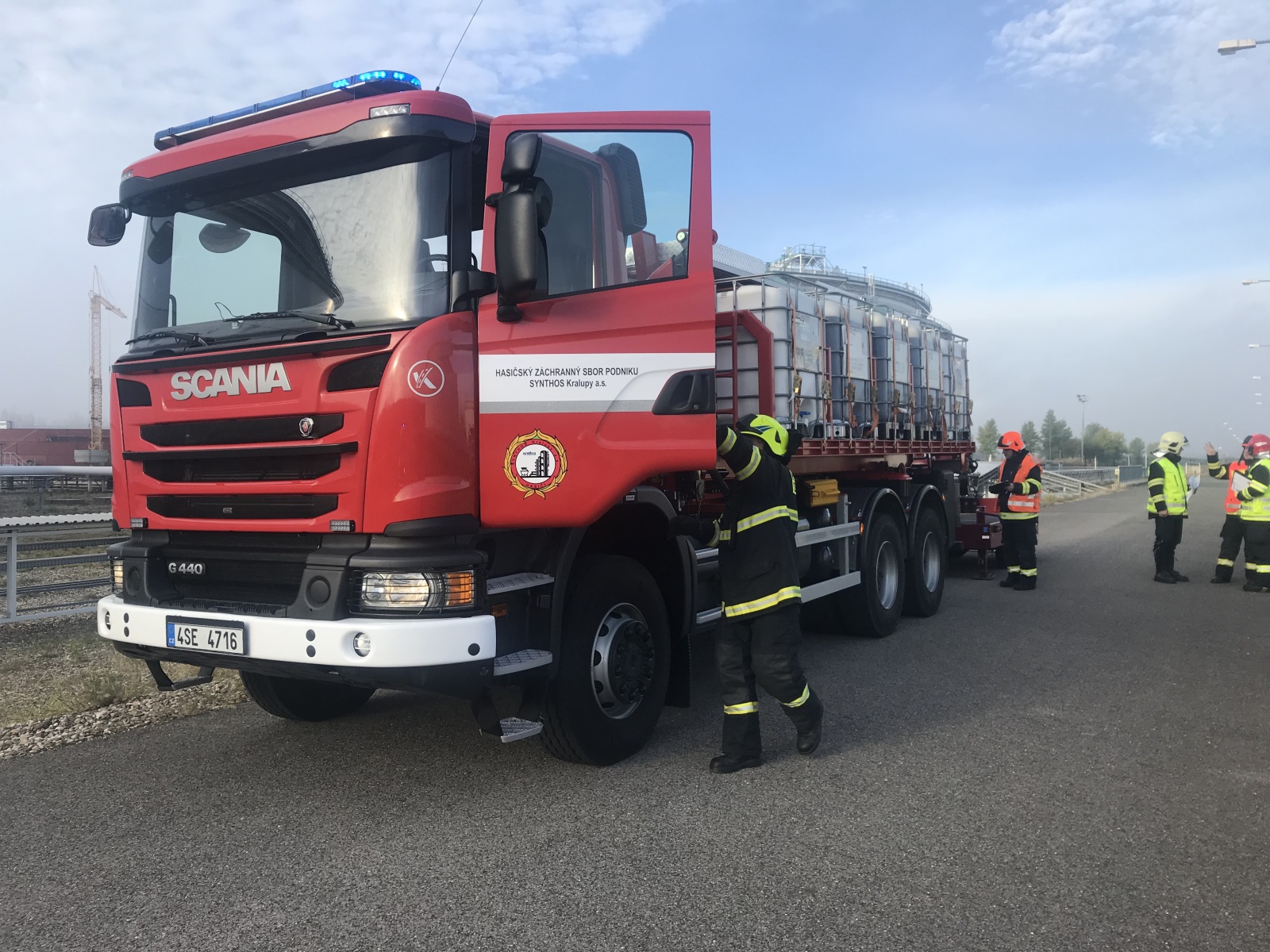 Událost byla hned od počátku řešena ve třetím stupni požárního poplachového plánu. Proto operační důstojník na místo vyslal jednotku HZS podniku Synthos, a. s., a také jednotky HZS Středočeského kraje ze stanic Kralupy nad Vltavou, Mělník, Slaný, Neratovice, Kladno a Roztoky.