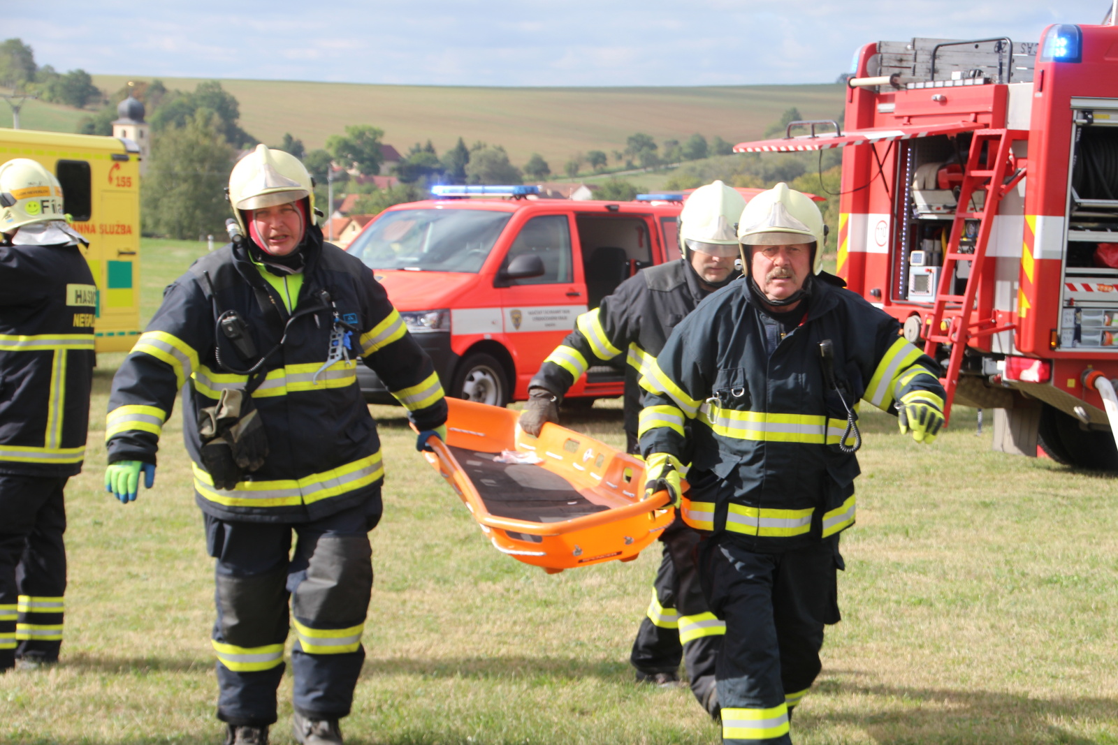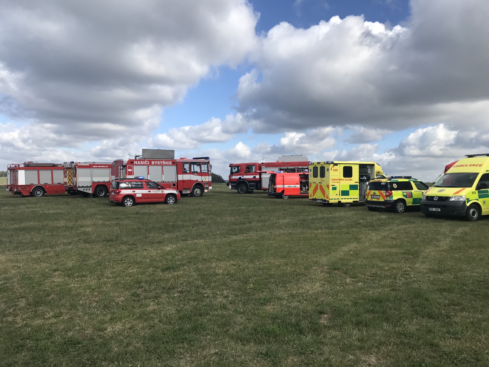 Oznámení nehody bylo součástí předem připraveného scénáře taktického cvičení základních složek integrovaného záchranného systému. Operační důstojník k události vyslal profesionální hasiče ze stanice HZS Benešov a jednotky sboru dobrovolných hasičů obcí Bystřice, Neveklov a Olbramovice.