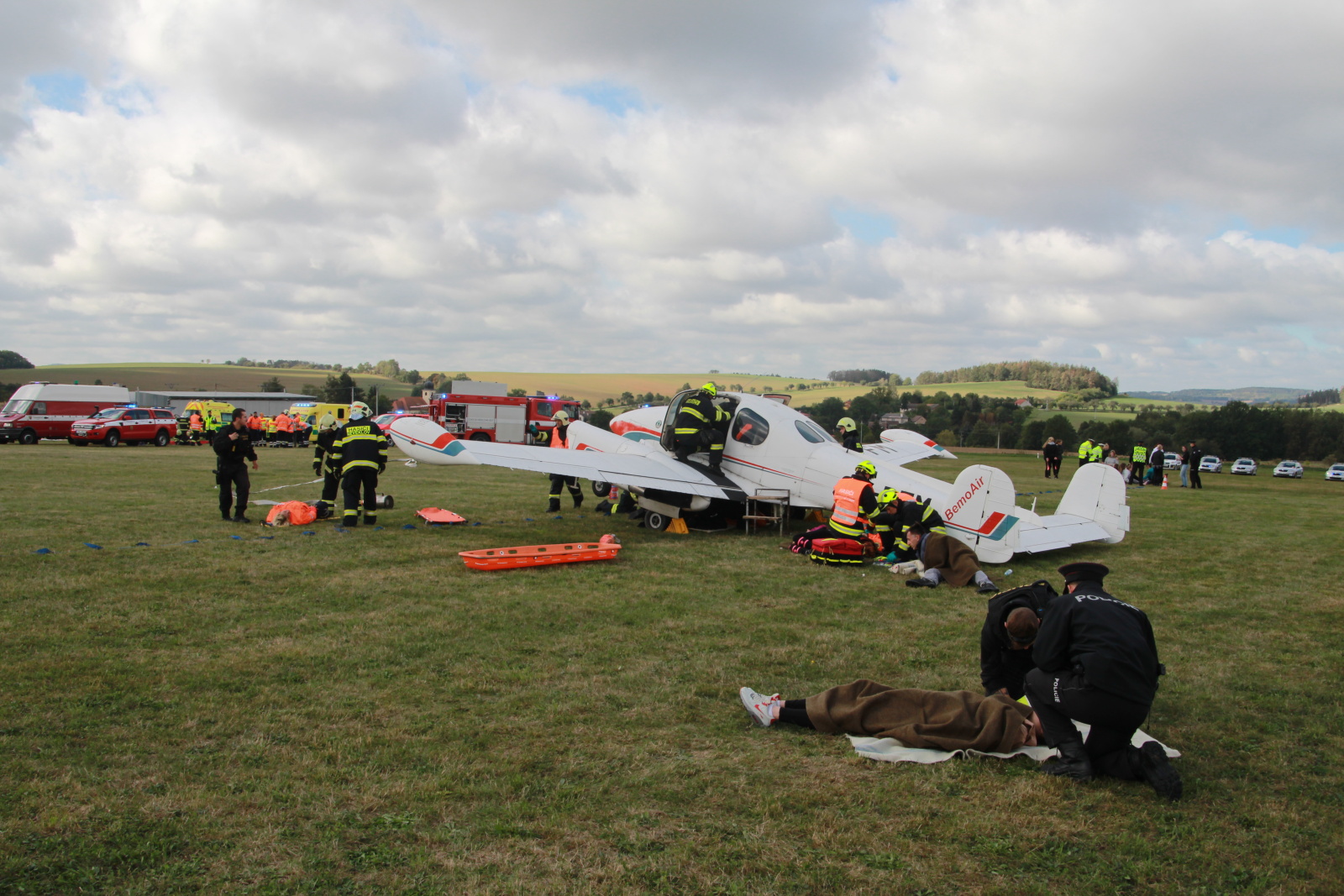 Cvičení se zúčastnili také experti Ústavu pro odborné zjišťování příčin leteckých nehod. Role figurantů se skvěle zhostili studenti Střední odborné školy a Střední zdravotnické školy z Benešova, které pro zvýšení reality události namaskovali instruktoři Českého červeného kříže.