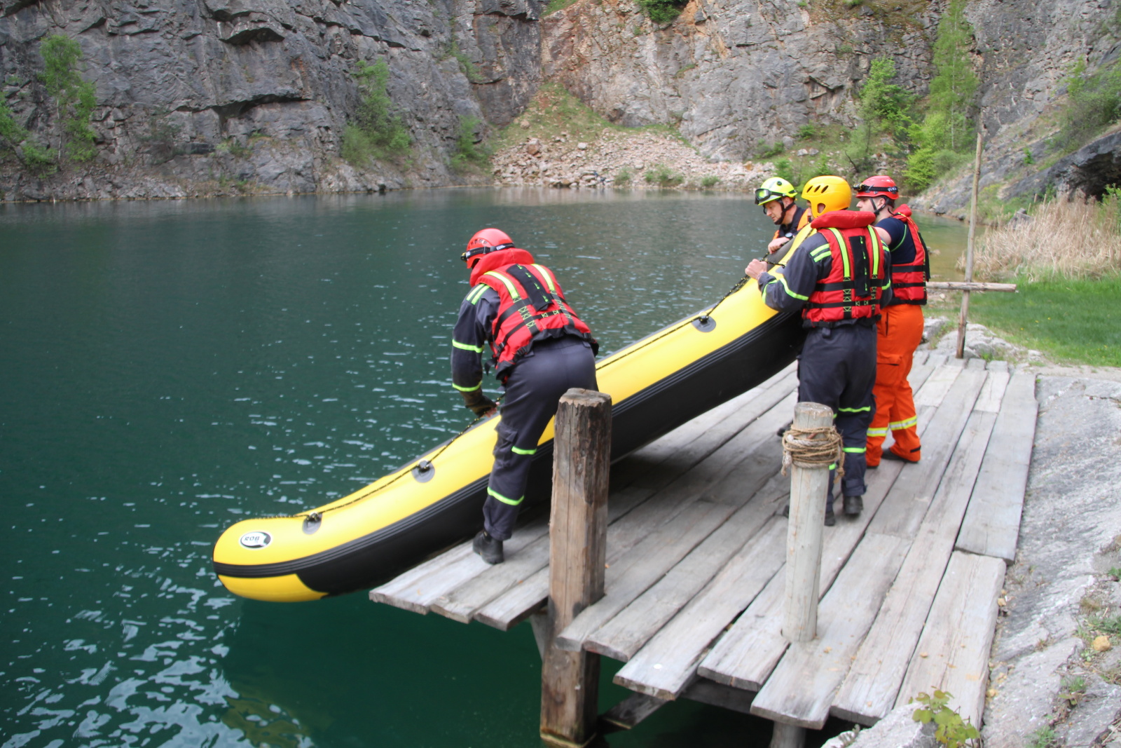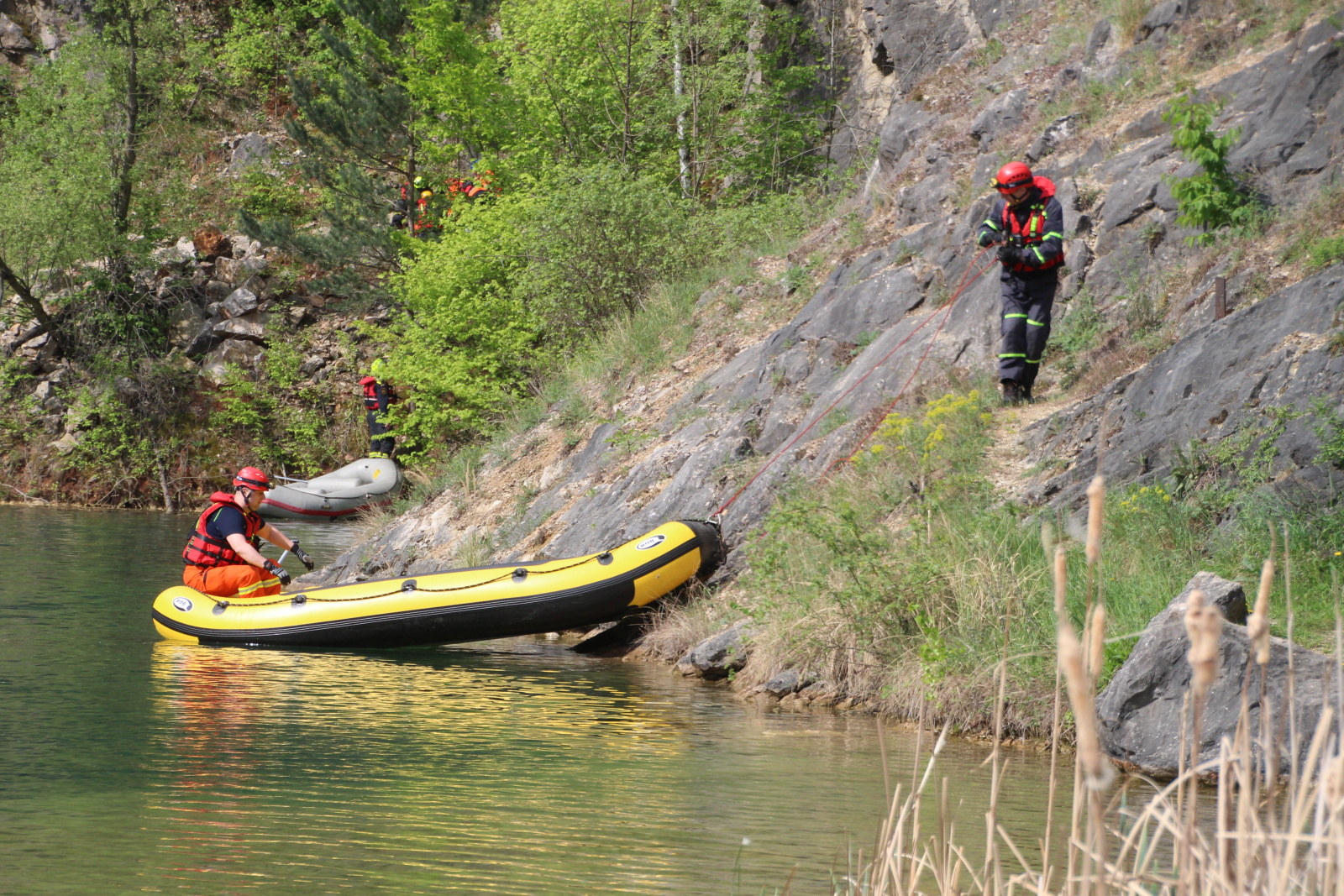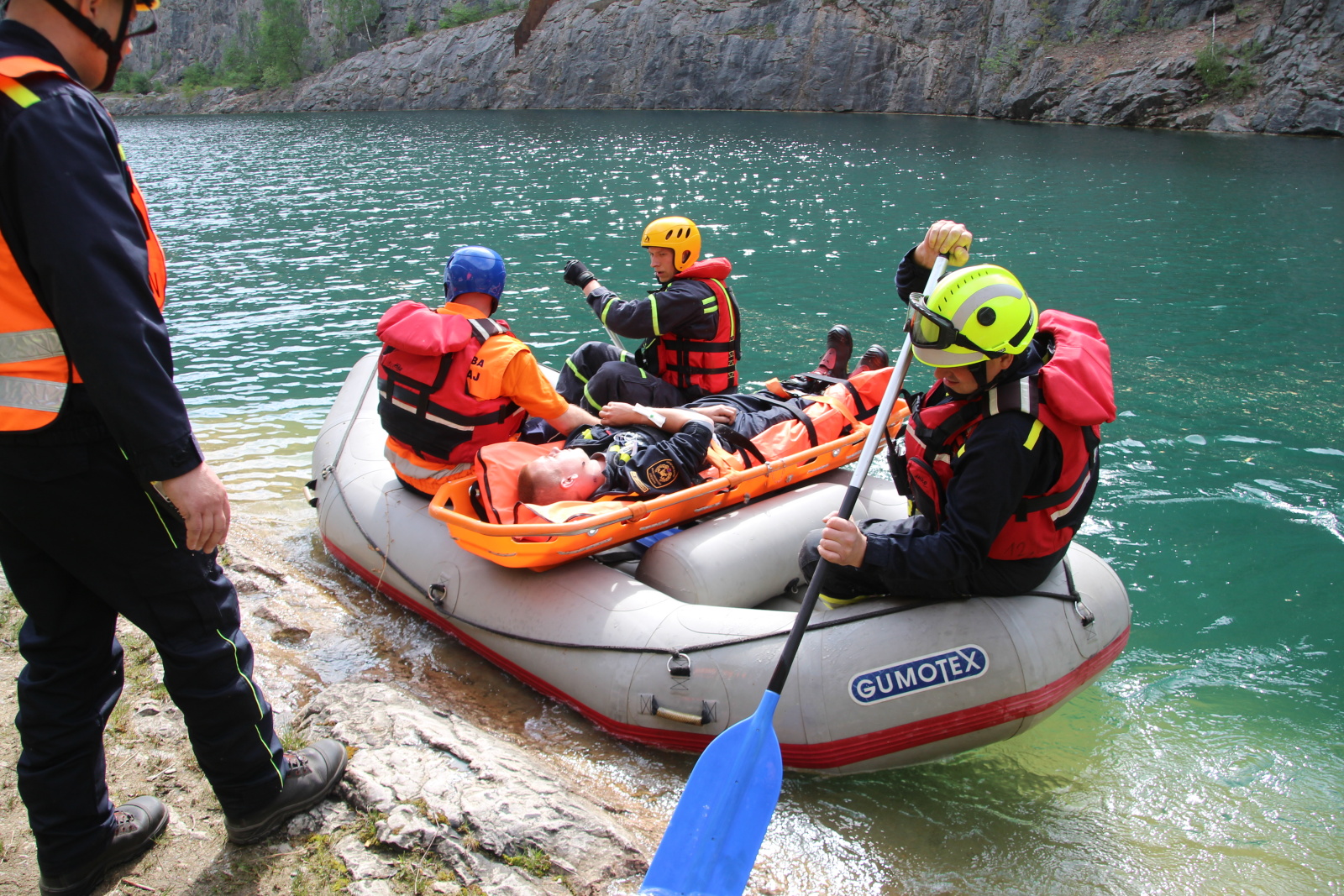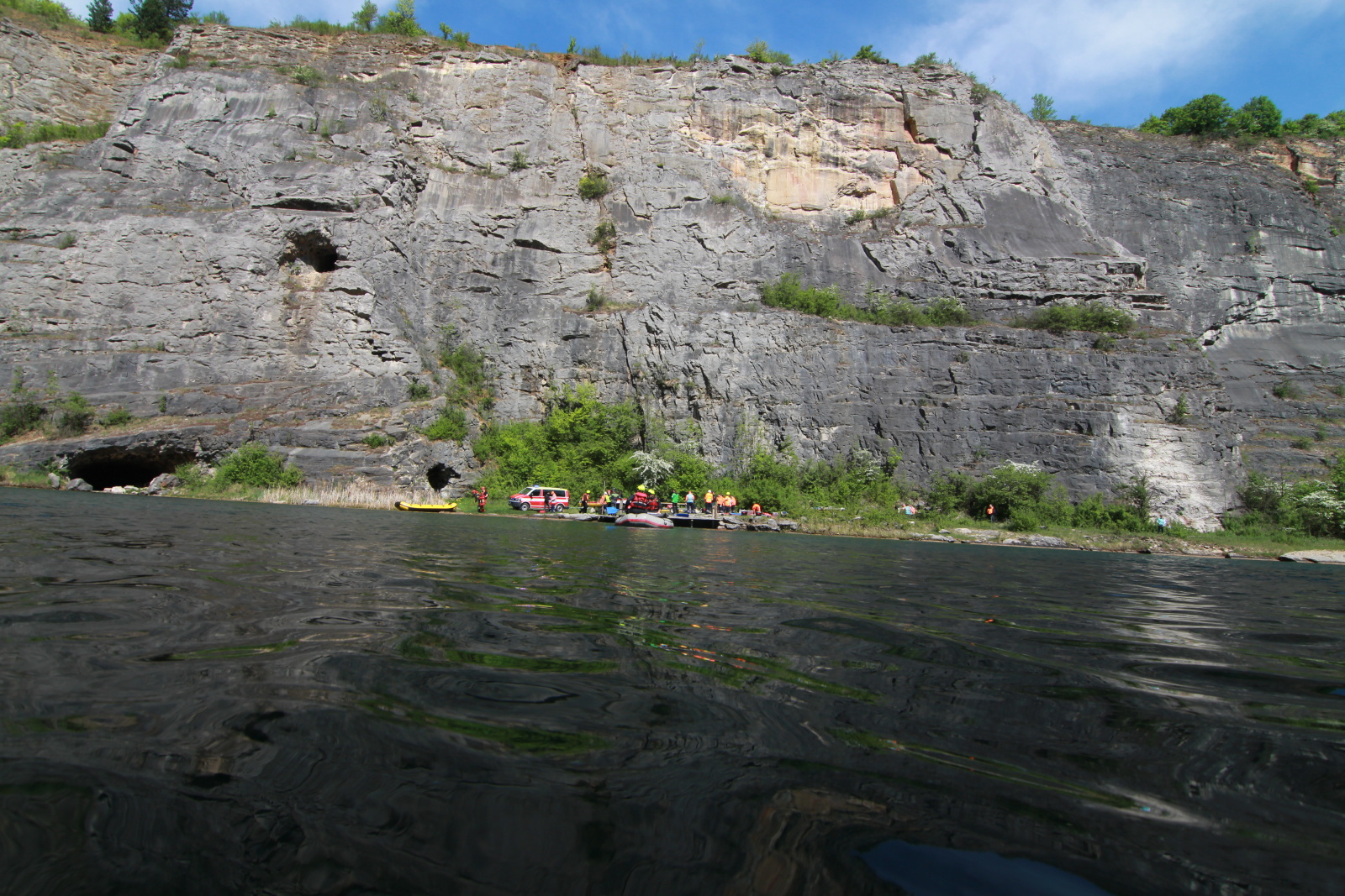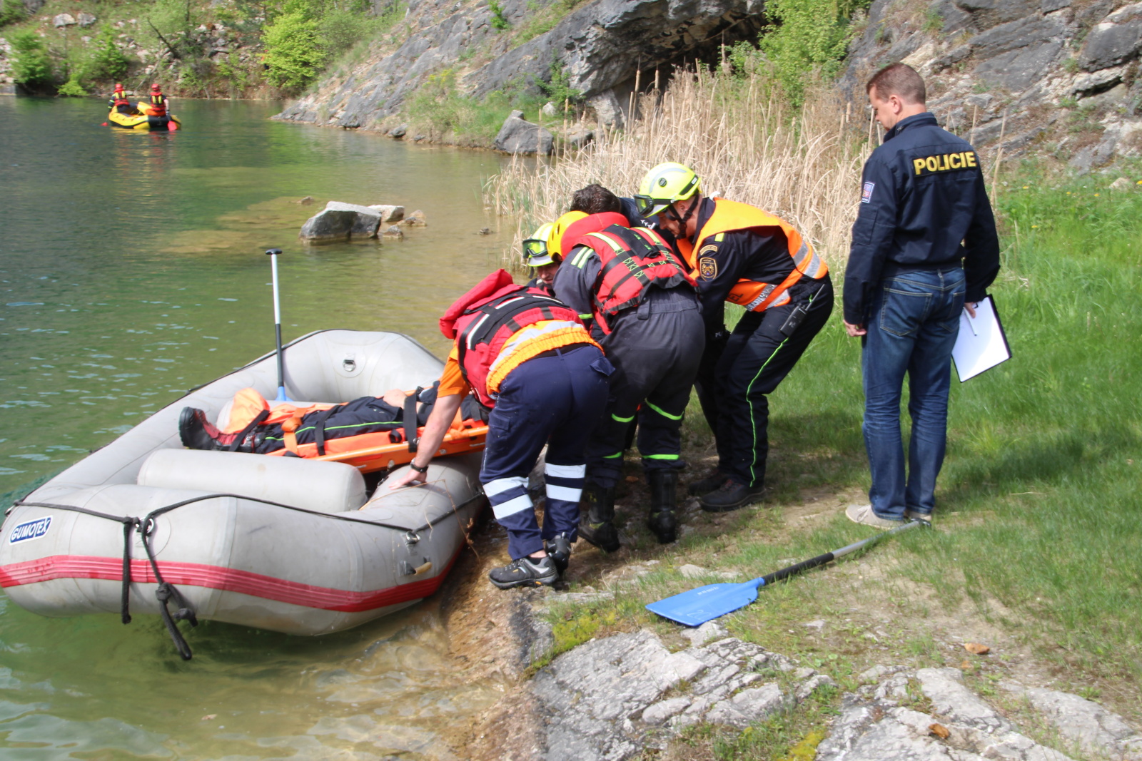 Při jízdě k zásahu bylo rozhodnuto, že část jednotek se čluny pojede do dolní části lomu a lezci se ke zraněným lidem slaní. Vzhledem k tomu, že podle oznamovatele čítala skupinka dvanáct osob, tak zdravotnická záchranná služba na místo poslala několik posádek svých záchranářů.