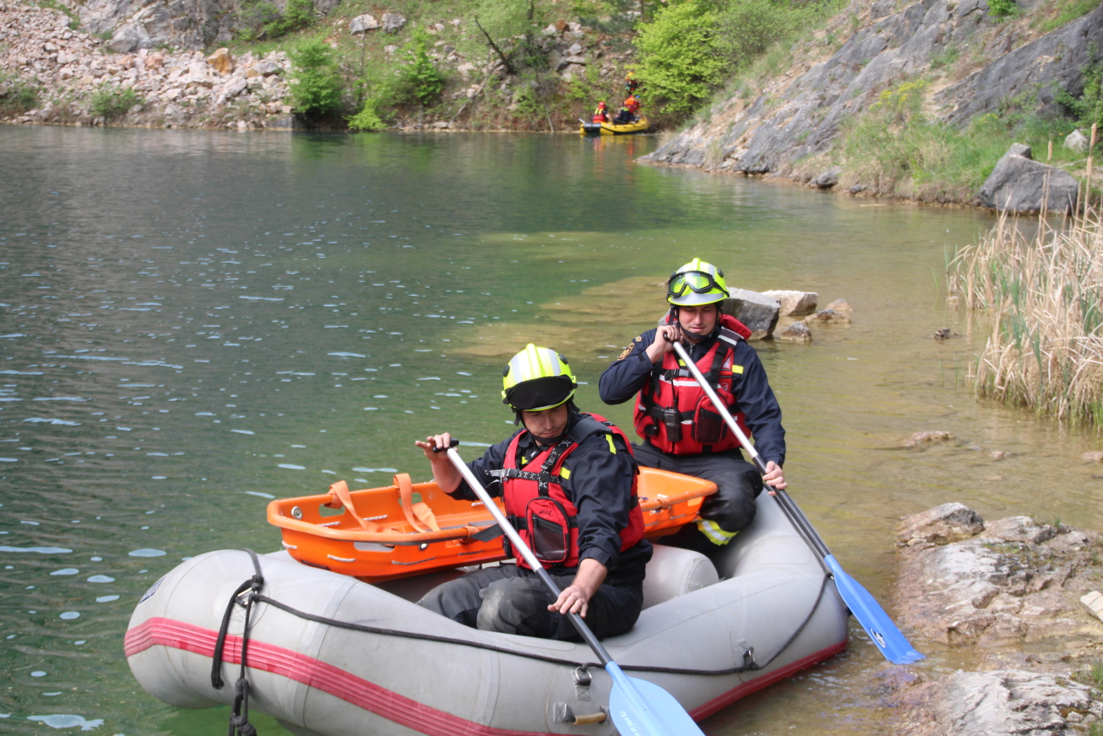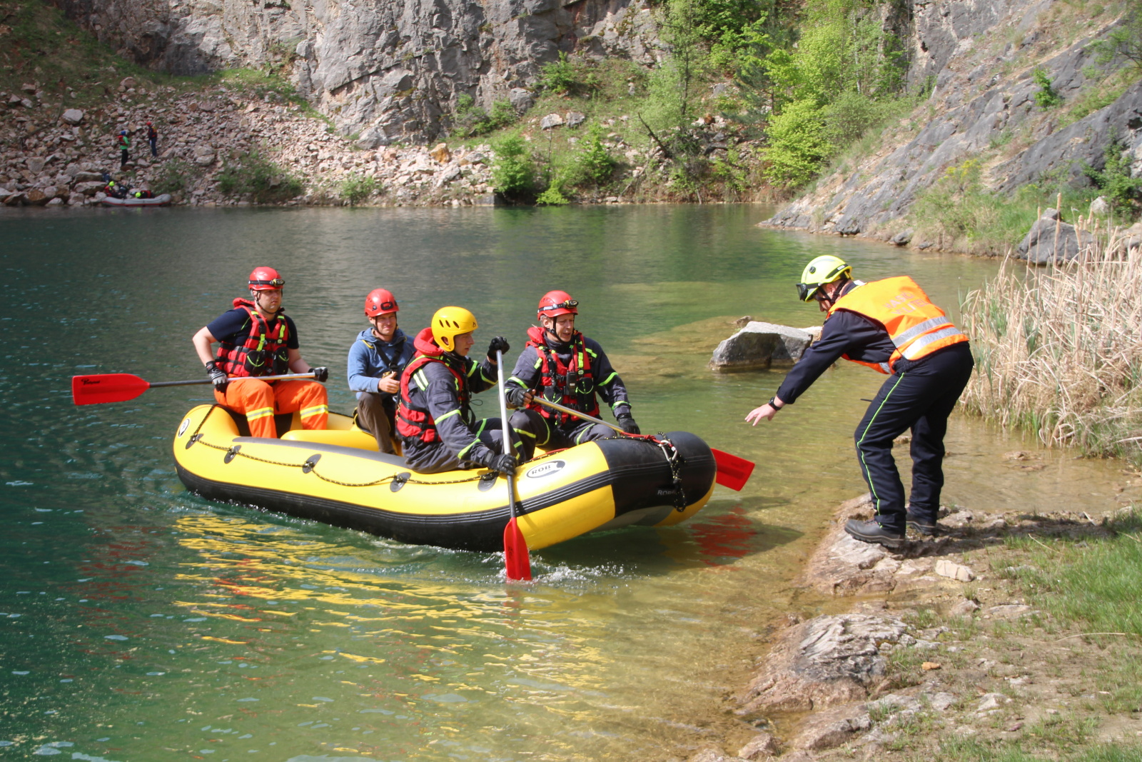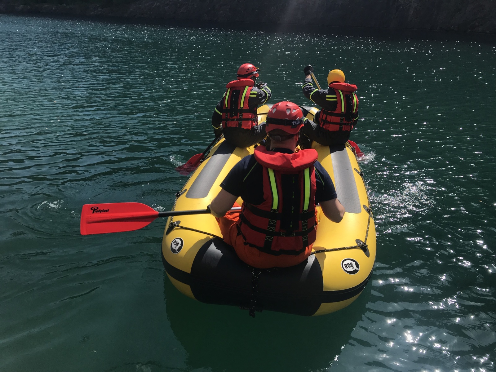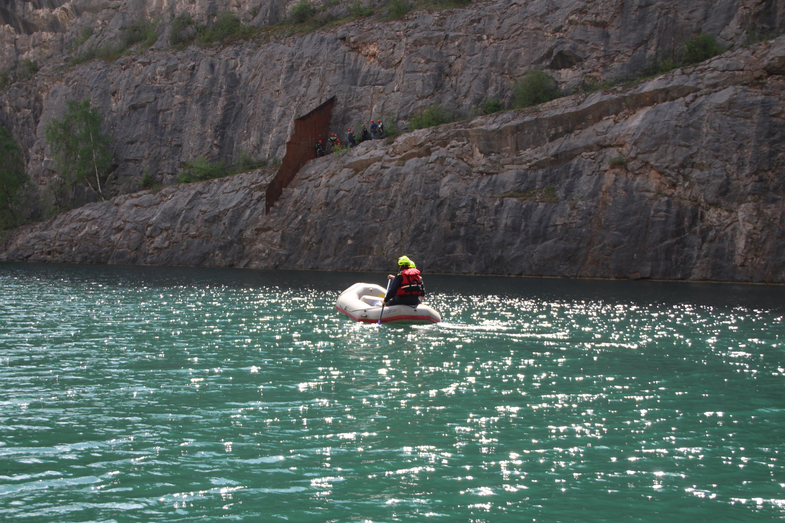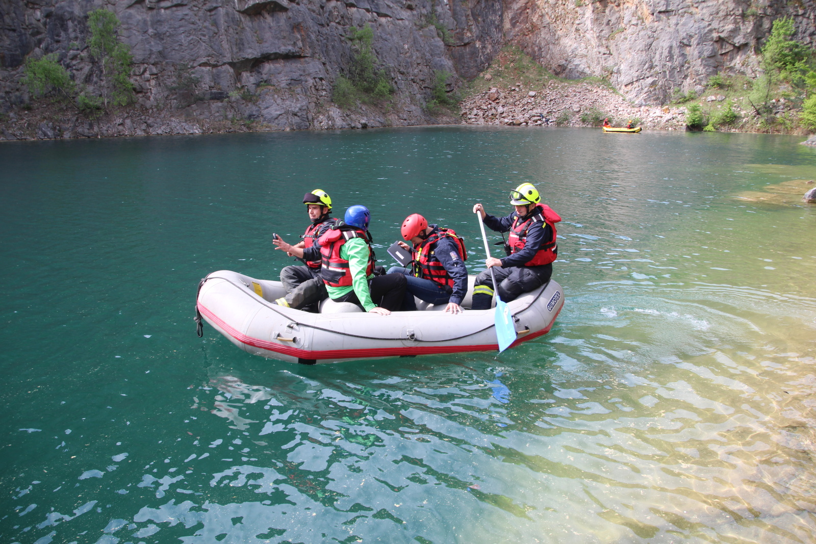 Při jízdě k zásahu bylo rozhodnuto, že část jednotek se čluny pojede do dolní části lomu a lezci se ke zraněným lidem slaní. Vzhledem k tomu, že podle oznamovatele čítala skupinka dvanáct osob, tak zdravotnická záchranná služba na místo poslala několik posádek svých záchranářů.