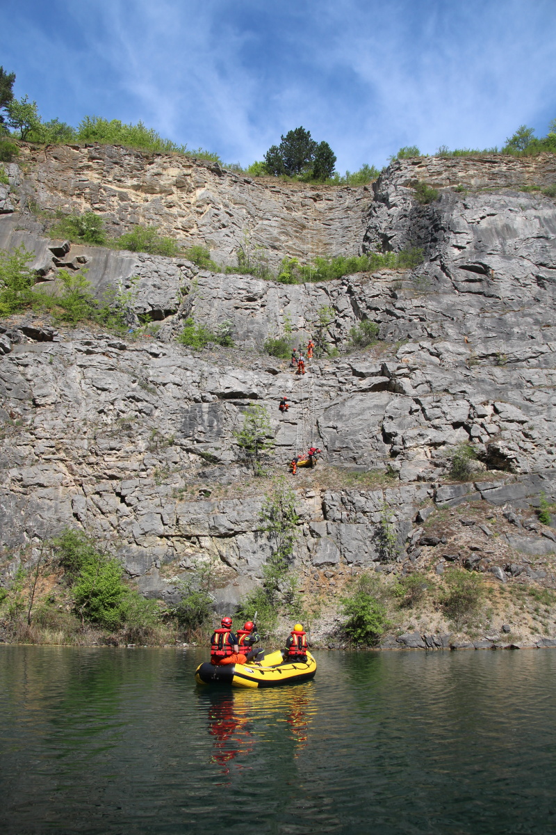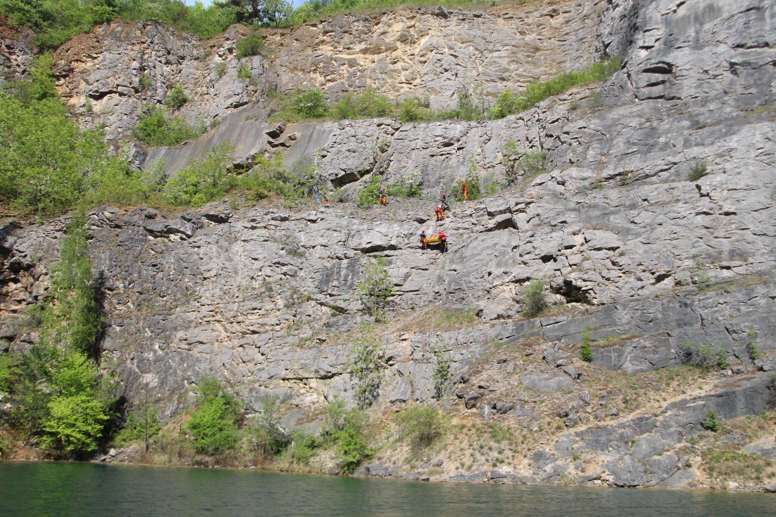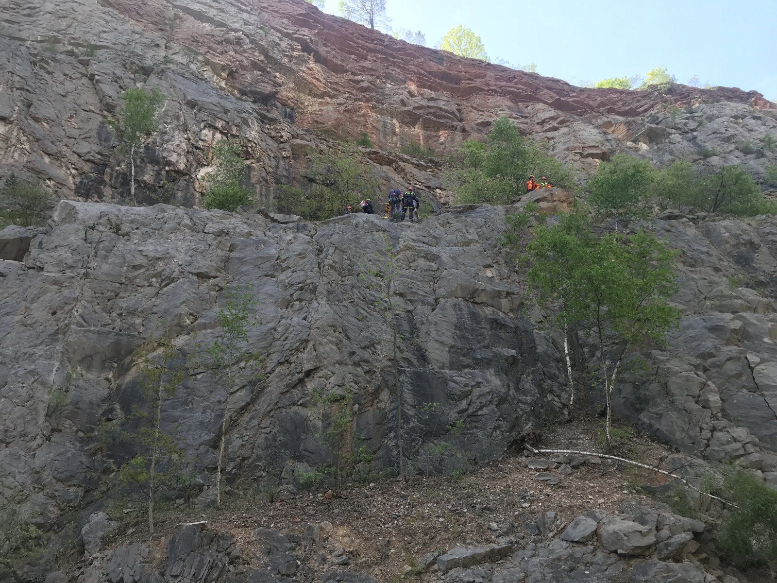 Po příjezdu do lomu bylo průzkumem zjištěno, že sedm osob je vysíleno, nejsou schopny se samy dál přesunout a bude nutné je s drobnějšími zraněními transportovat. Dva lidé byli nalezeni na protější skalním výběžku. U jednoho muže bylo podezření na poškození páteře, druhý měl zraněnou ruku, ale s drobnou dopomocí bude schopen slézt sám. Stejně tak další člen skupiny se dokázal dostat k záchranářům bez větších potíží. Poslední dvě osoby nejevily známky života.