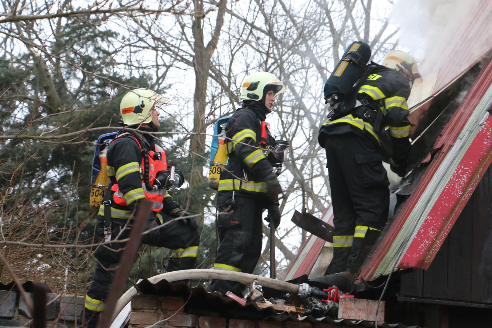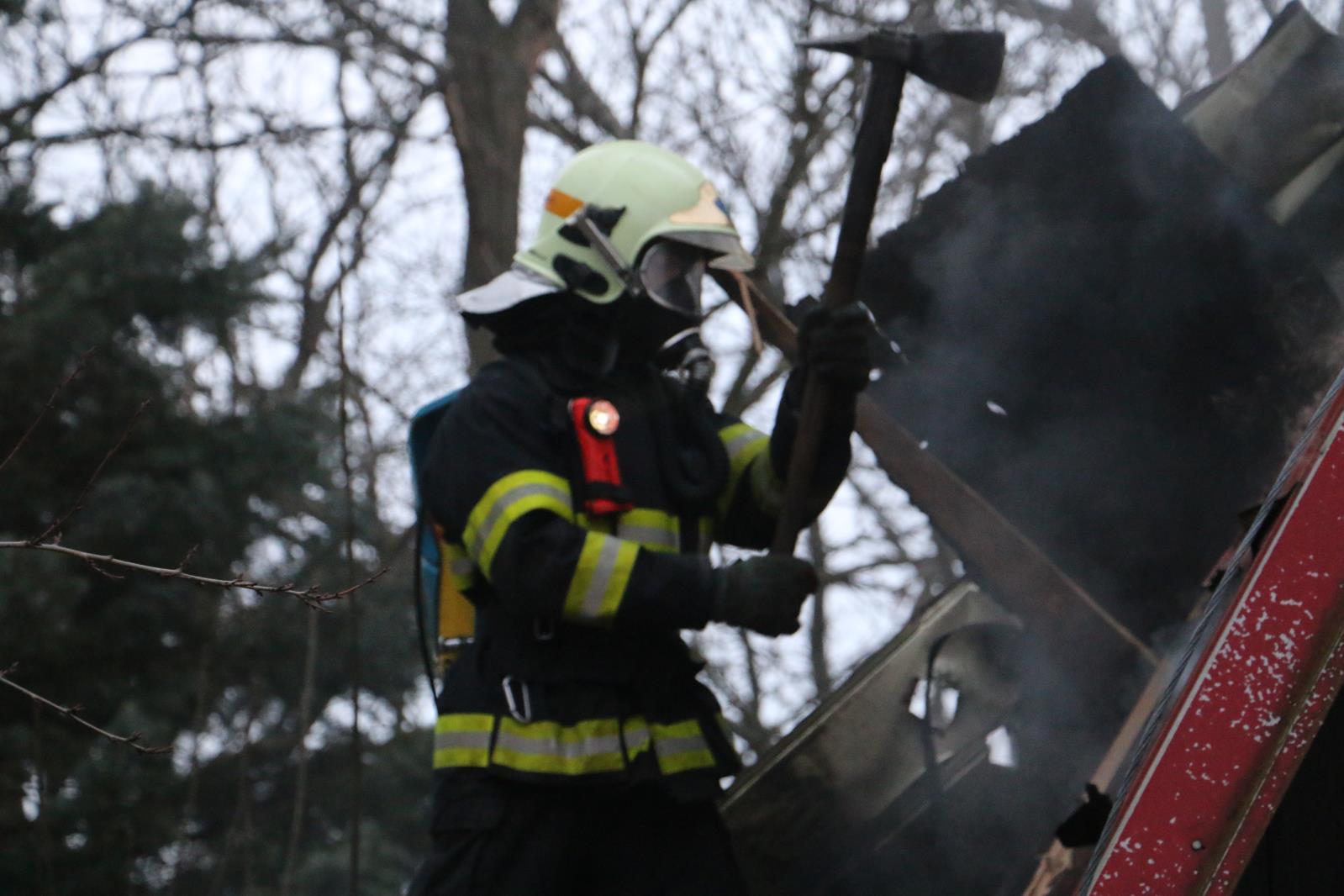 Z hořící chatky se včas do bezpečí dostal její majitel, zahoření zřejmě od kouřovodu kotle na tuhá paliva velmi rychle pohltilo první patro a půdní prostor objektu. Hasiči v počátku utlumili zuřící plameny v podkrovních místnostech, poté pokračovali v prostupu přes stropní podhledy a dohašování většího počtu skrytých ohnisek. Část střechy bylo nutné pro celkové dohašení odkrýt. Z objektu hasiči vynosili větší množství požárem zasaženého vybavení.Ve spolupráci ze starostou obce bylo majiteli navrženo náhradní ubytování, naštěstí celá událost se obešla bez zranění osob. Výši škody předběžně vlastník vyčíslil v částce 450 tis. korun.