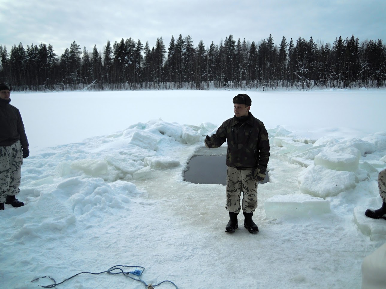 Kurz byl zakončen skokem do díry v zamrzlém jezeře v běžné oblečení, což mělo simulovat propadnutí v ledu. Celý kurz byl psychicky i fyzicky velmi náročný, venkovní teploty se pohybovaly v rozmezí  od -8 až -20 stupní Celsia. Vše bylo ale pod důslednou kontrolou armádních instruktorů.