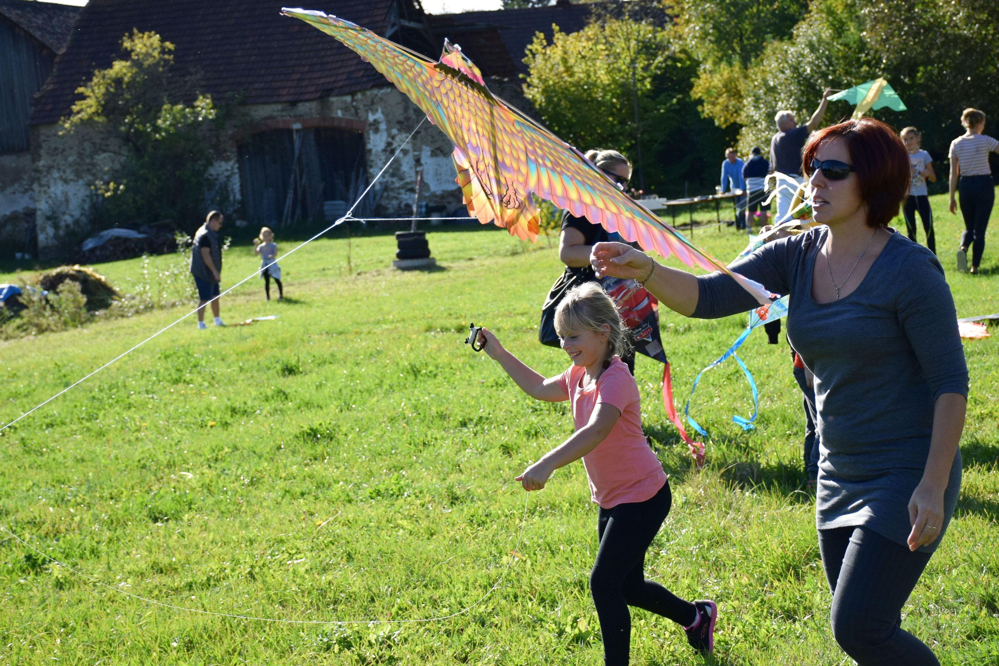 Slunečná bezmračná obloha a teplota na tričko s krátkým rukávem téměř vybízela k opalování. Letně působící povětrnostní podmínky ovšem nedělaly příliš dobře drakům, kteří by bývali potřebovali trochu víc fouknout pod křídla. Louka za obecním úřadem tak chvílemi připomínala tréninkovou plochu pro starty a přistání létajících objektů různých tvarů a barev, s nimiž se občas naběhali více rodiče než děti.