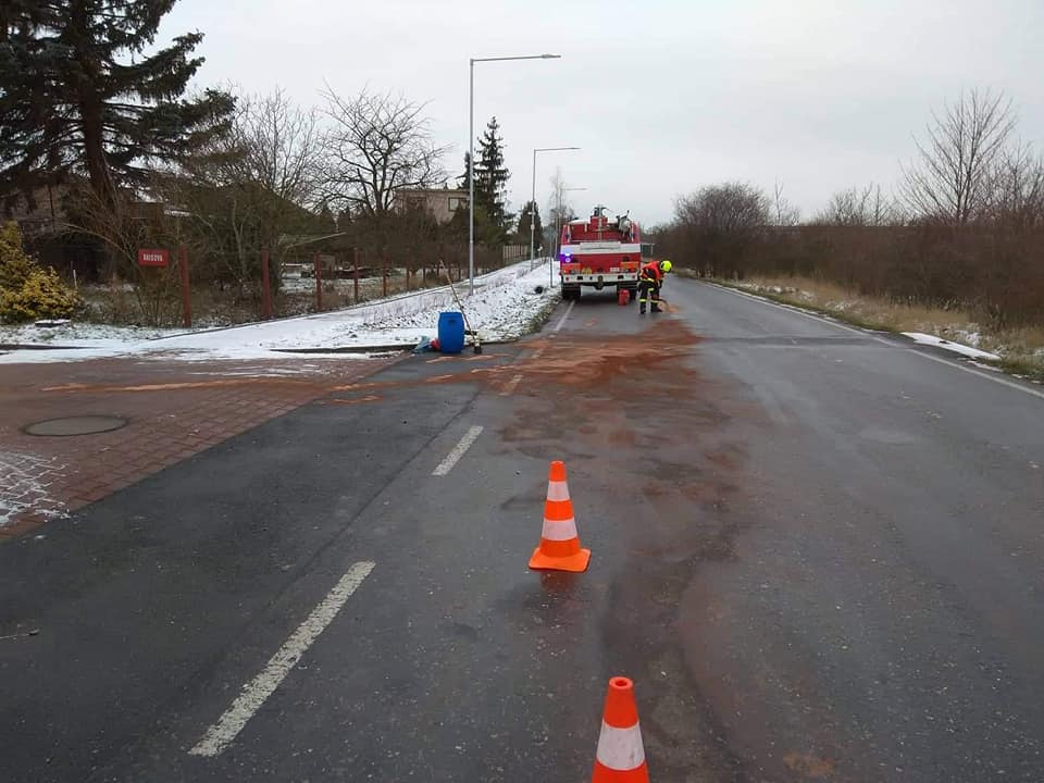 Sbor dobrovolných hasičů z Nové Vsi1 odstranil olejové skvrny.