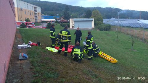 Třetí jednotka se dívá, jak předchozí dvě jednotky vyjely, a najednou i oni dostávají příkaz k výjezdu. Velitel jednotky se začte. „Jedeme na pád osoby ze střechy, víc o události nevím.“ Členové se vybavují prostředky dle instrukcí velitele. Jednotka dojíždí na místo a zasahující si uvědomují, že s osobou musí manipulovat opatrně, aby nedošlo k poranění páteře. Ošetří ji, ale poté zjistí, že ji musí transportovat k příjezdové komunikaci.