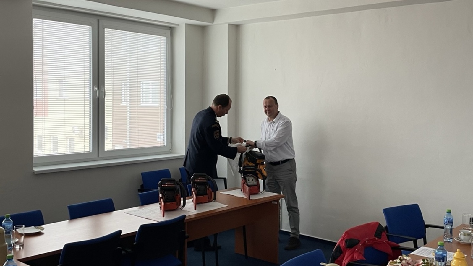 Územní odbor Mělník HZS Středočeského kraje upořádal v pátek 25. listopadu krátké slavnostní předání daru vybraným jednotkám sboru dobrovolných hasičů obcí. Čtyři motorové řetězové pily a jednu motorovou rozbrušovací pilu převzali příslušní starostové a velitelé jednotek. Další pily budou dobrovolným jednotkám předávány v následujícím období i v jiných částech kraje. Vzhledem k postupné obnově motorových řetězových pil u HZS Středočeského kraje se stávající pily stanou pro profesionální hasiče nepotřebné. Před vlastním předáním všechny prošly důkladným servisem, aby byla zaručena jejich plná funkčnost a spolehlivost. Při řešení mimořádných událostí tak jistě odvedou ještě mnoho práce v rukou dobrovolných hasičů, kteří se významně podílejí na odstraňování následků po řádění větru a jiných nepřízní počasí.