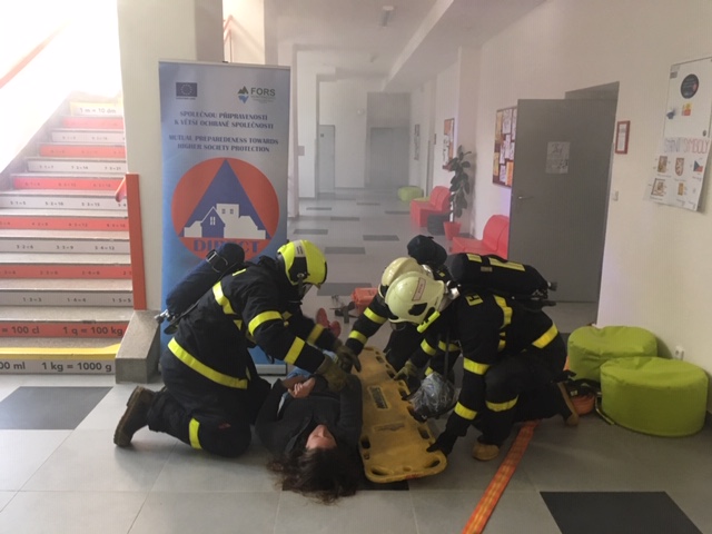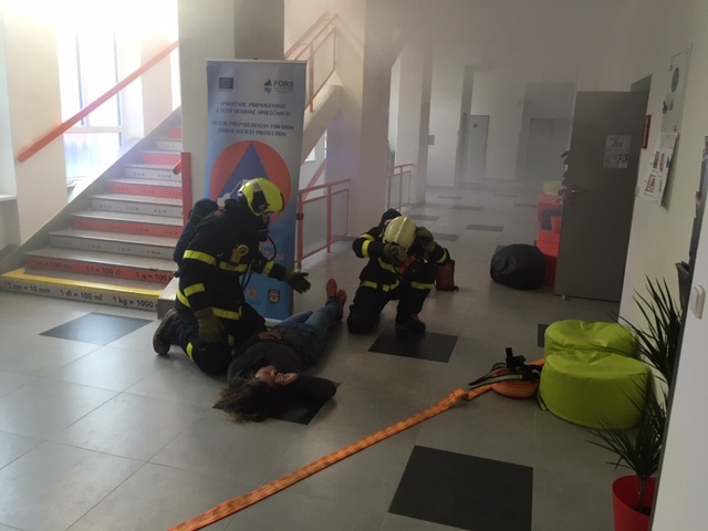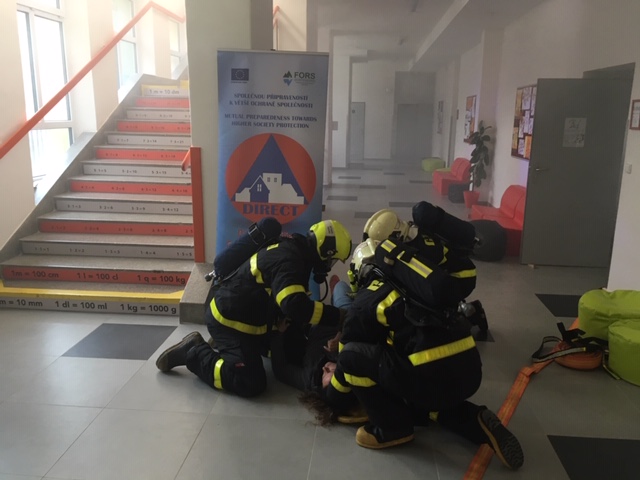 Profesionální hasiči (HZS MSK), žáci a pedagogové gymnázia a základní školy Hello v Ostravě-Porubě se zapojili tento týden ( 26.11.-30.11. 2018)í se simulovaným požárem v učebně a záchranou zraněné pedagožky. Procvičili si hlavně evakuaci osob ze školy do bezpečných venkovních prostor. Cvičení se konalo v rámci dlouhodobého projektu evropské unie Direct.