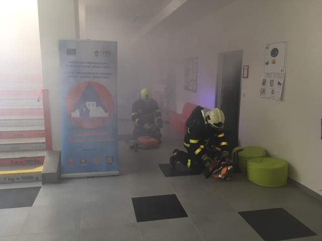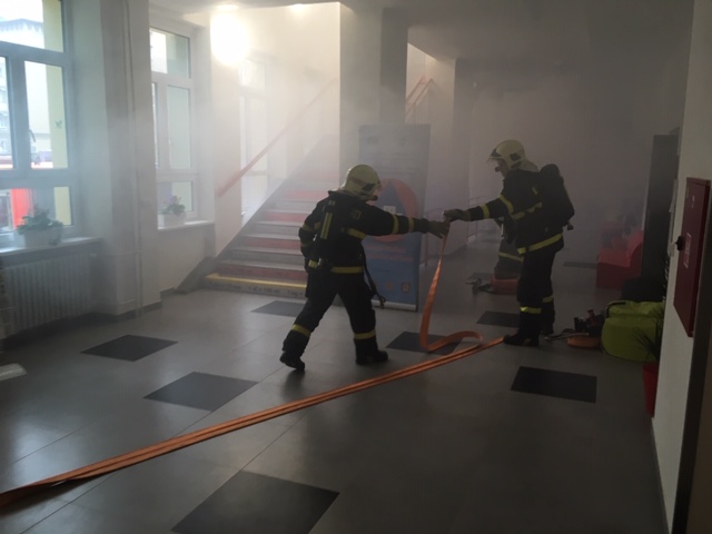 Cvičení hasičů v porubské škole Hello se záchranou učitelky