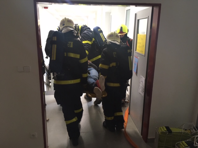 Požár vznikl v učebně při používání dataprojektoru (porucha na elektroinstalaci). Pedagožka se ve snaze oheň uhasit nadýchala kouře (simulace vyvíječem kouře) a upadla do bezvědomí. Jednotka HZS Moravskoslezského kraje ze stanice Ostrava-Poruba ženu zachránila, ošetřila, odnesla na páteřní desce do bezpečí a oheň uhasila.