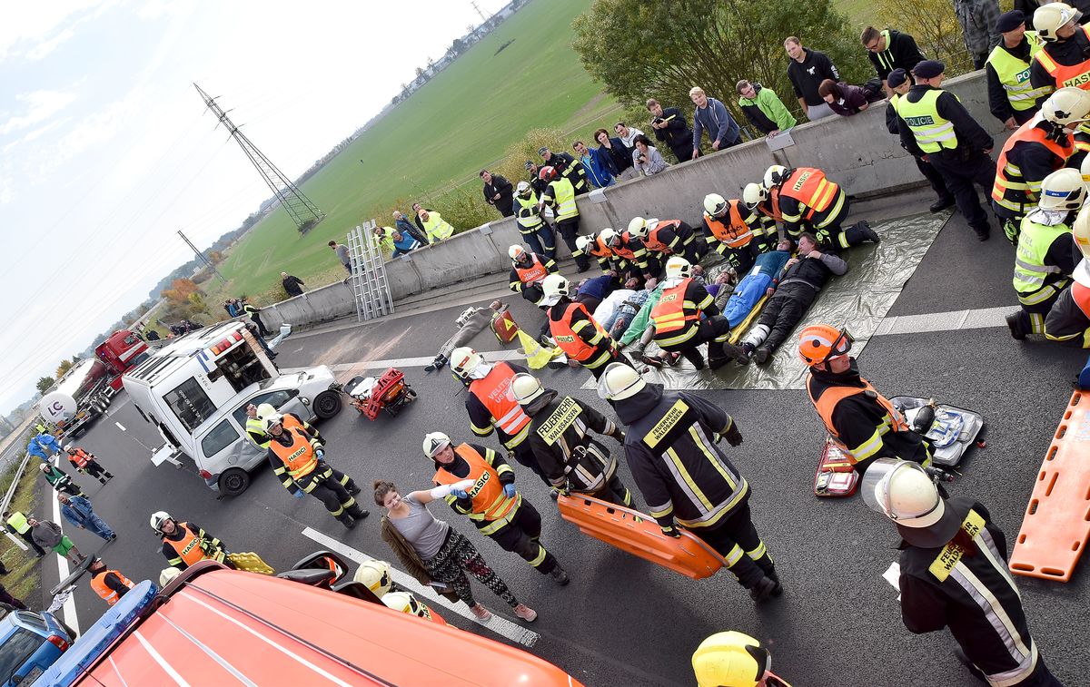Na místě zasahovalo 16 jednotek hasičů a desítky zdravotníků a záchranářů včetně kolegů z Německa
