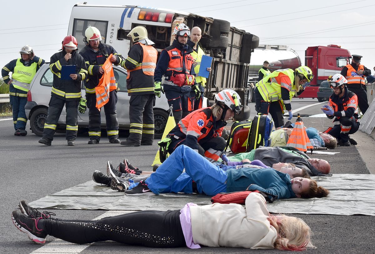 Námětem sobotního cvičení byla hromadná dopravní nehoda na silnici D6. Jako první se srazilo osobní auto s automobilovou cisternou, která převážela nebezpečnou látku. Následně v řetězové reakci havaroval autobus plný lidí, který se převrátil na bok, a poté v koloně dalších sedm osobních aut. Před místem nehody se vytvořila kolona čekajících aut, která bránila příjezdu záchranářů až k samotnému místu havárie. Hasiči tak museli některá auta doslova odtlačit ke kraji vozovky, aby mohli se svými vozy projet. Postupně velitel zásahu povolal na místo xx jednotek hasičů, kteří museli vyprostit přes čtyři desítky zraněných. Při vyprošťování z vozidel u havarované cisterny se simulovaným únikem kyseliny pak museli hasiči pracovat v ochranných protichemických oblecích a také zajistit dekontaminaci zachráněných i zasahujících. Záchranná služba provedla roztřídění zraněných podle závažnosti a zajistila jejich transport do nemocnic. Pro čtyři zraněné dokonce využila leteckou záchrannou službu. Do cvičení byla zapojena i zdravotnická zařízení v kraji i v sousedním Německu, prověřila se funkčnost systému informování veřejnosti s využitím aplikace MicroRescue, zprovoznění a provoz Asistenčního centra pomoci a také činnost v poskytování posttraumatické péče zraněným a jejich příbuzným.
