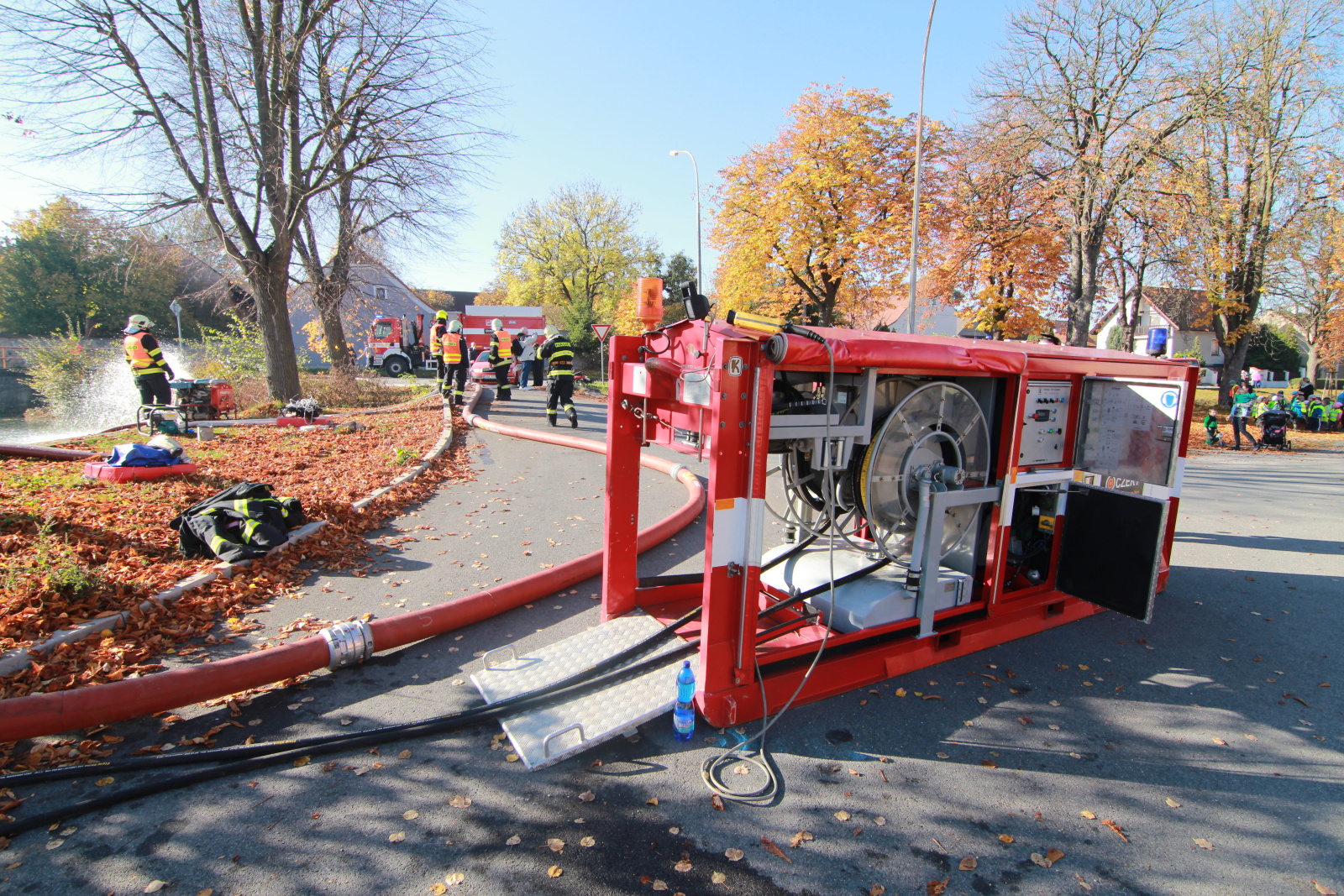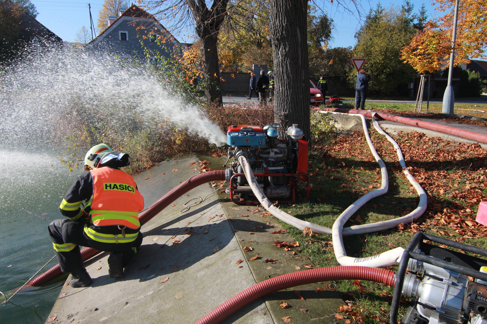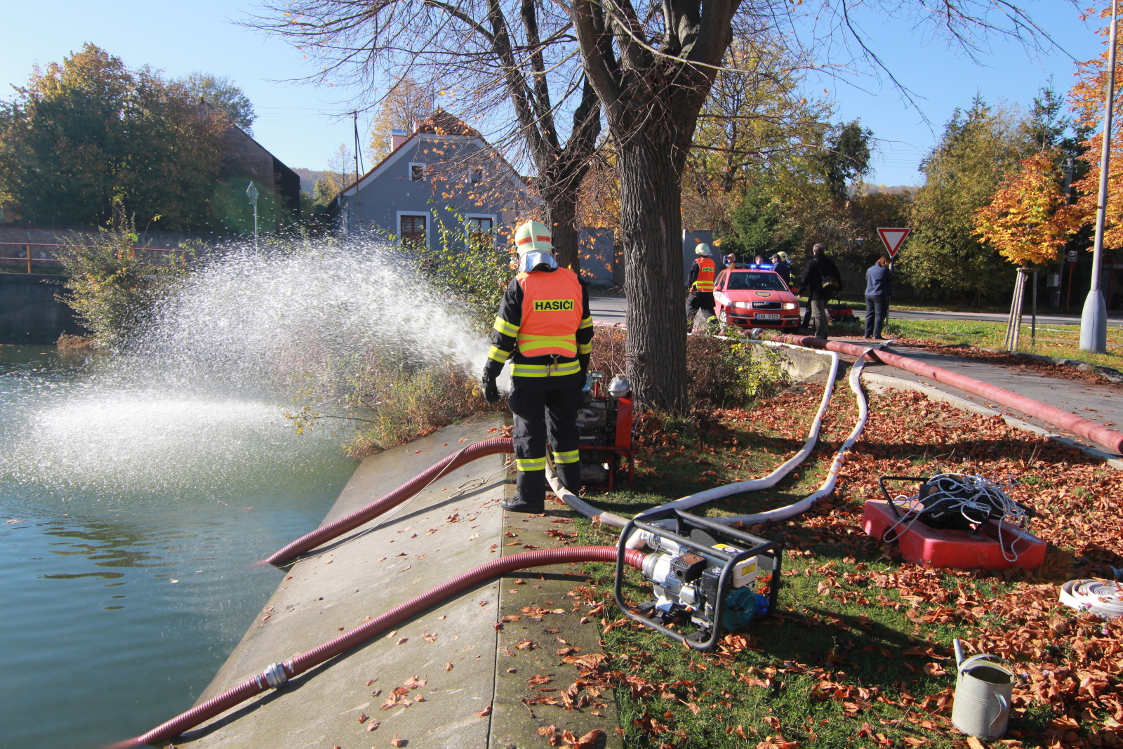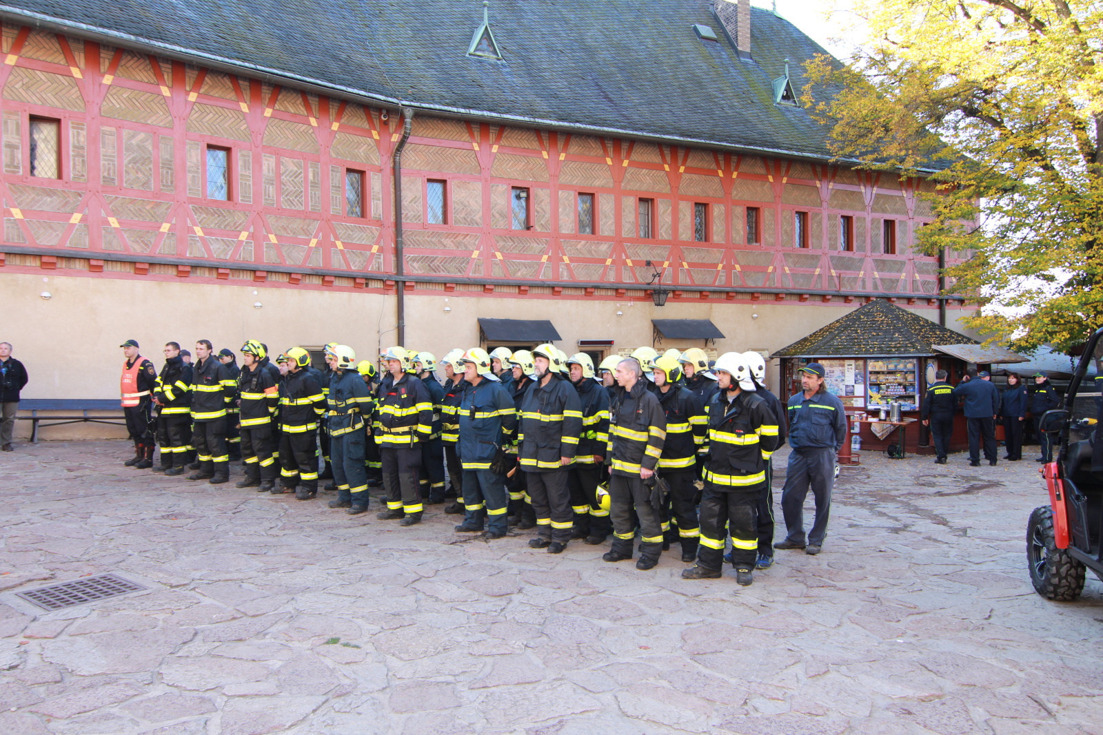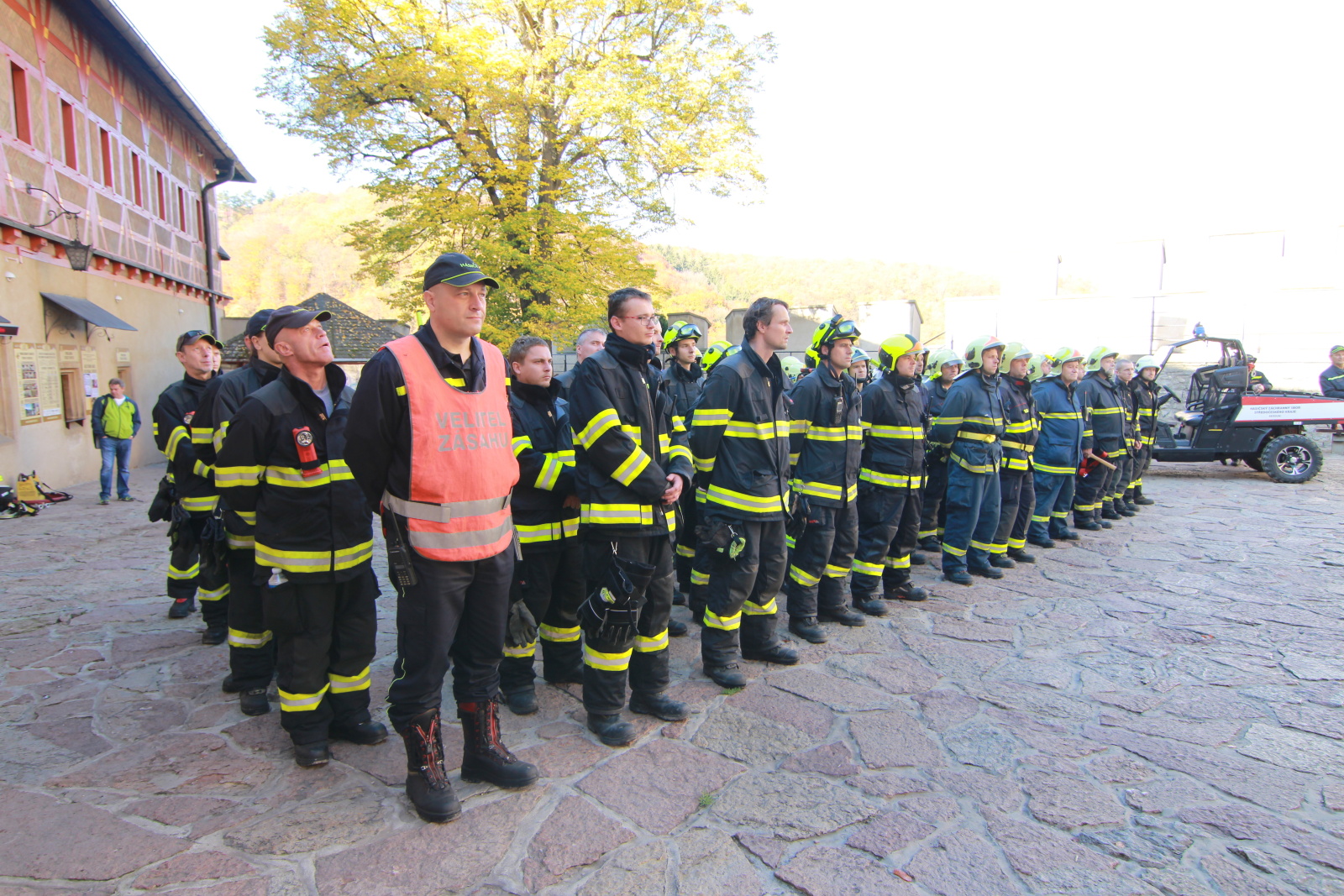 Součástí cvičení bylo i otestování suchovodu (je součástí požárně bezpečnostního zařízení hradu) na Velké věži, kam byla pomocí cisternové automobilové stříkačky vytlačena voda až do půdního prostoru.