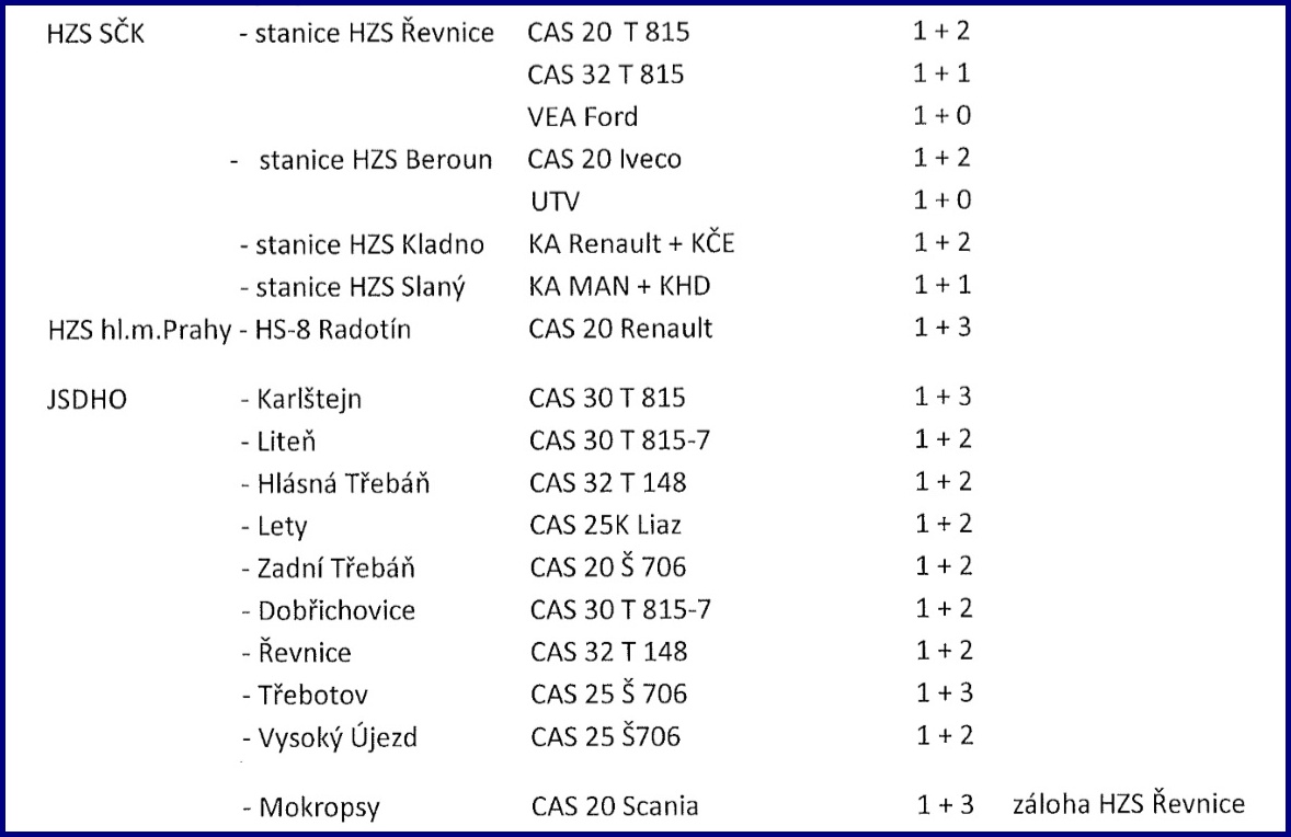 Vzhledem k tomu, že hrad Karlštejn je jednou z nejvýznamnějších kulturních památek, vyslal operační důstojník dle poplachového plánu k místu události postupně 14 jednotek profesionálních a dobrovolných hasičů.