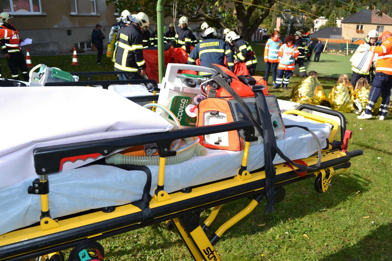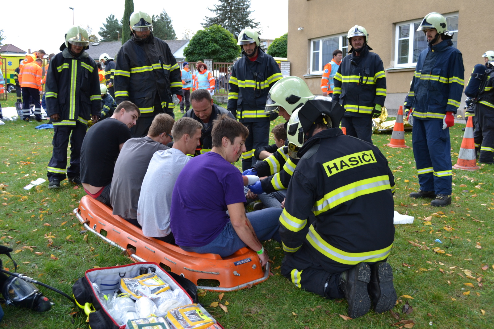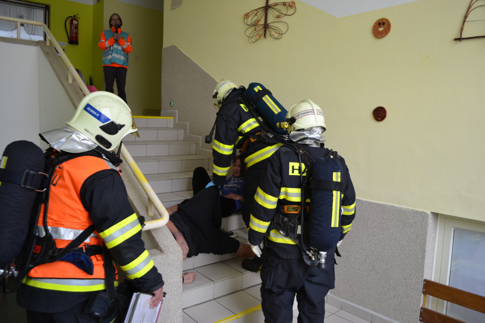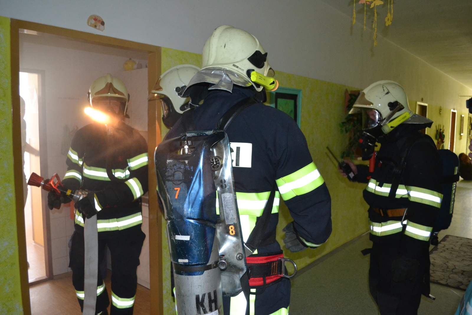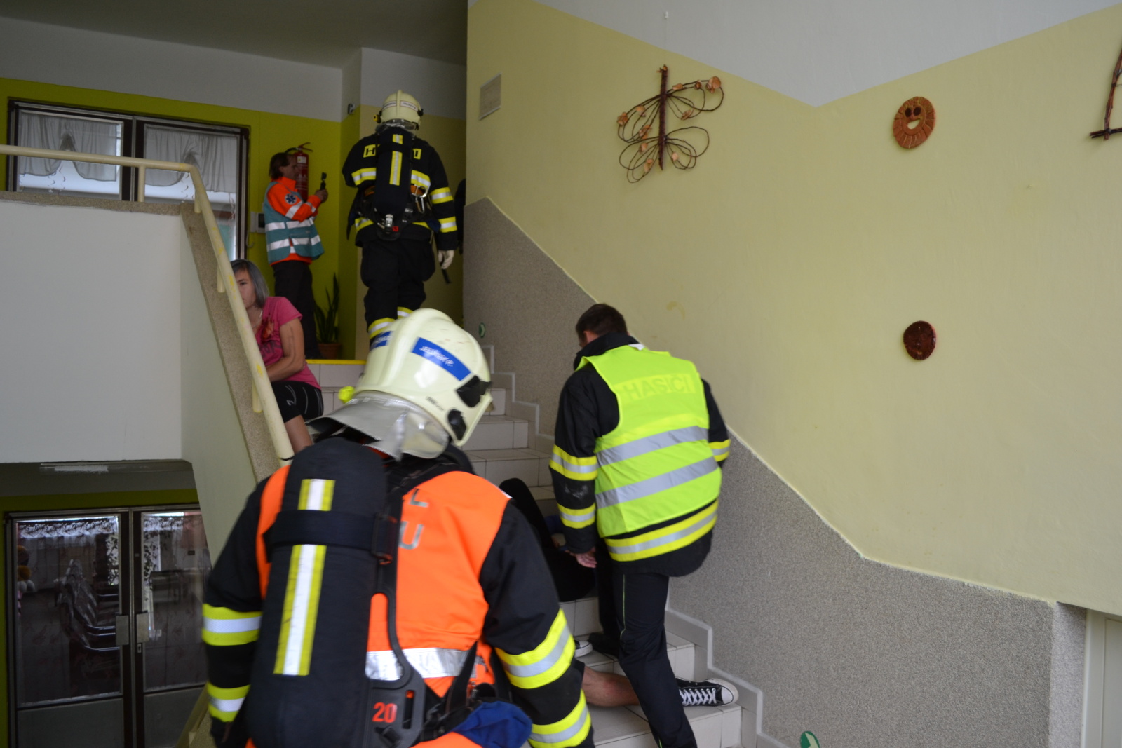 Před příjezdem jednotek byla provedena evakuace zaměstnanců a dětí. Jelikož požár vypukl v kuchyňce, některým zraněným dětem kouř odřízl cestu k bezpečnému opuštění budovy. Hasiči uvízlé a zraněné děti vyhledávali a spolu se zdravotnickými záchranáři aplikovali metodu START (Snadné Třídění A Rychlá Terapie). Následně hasiči cvičný požár, který vznikl nedbalostním jednáním dětí ve třetím nadzemním podlaží ubytovací budovy, zlikvidovali.