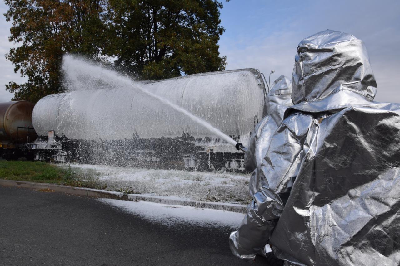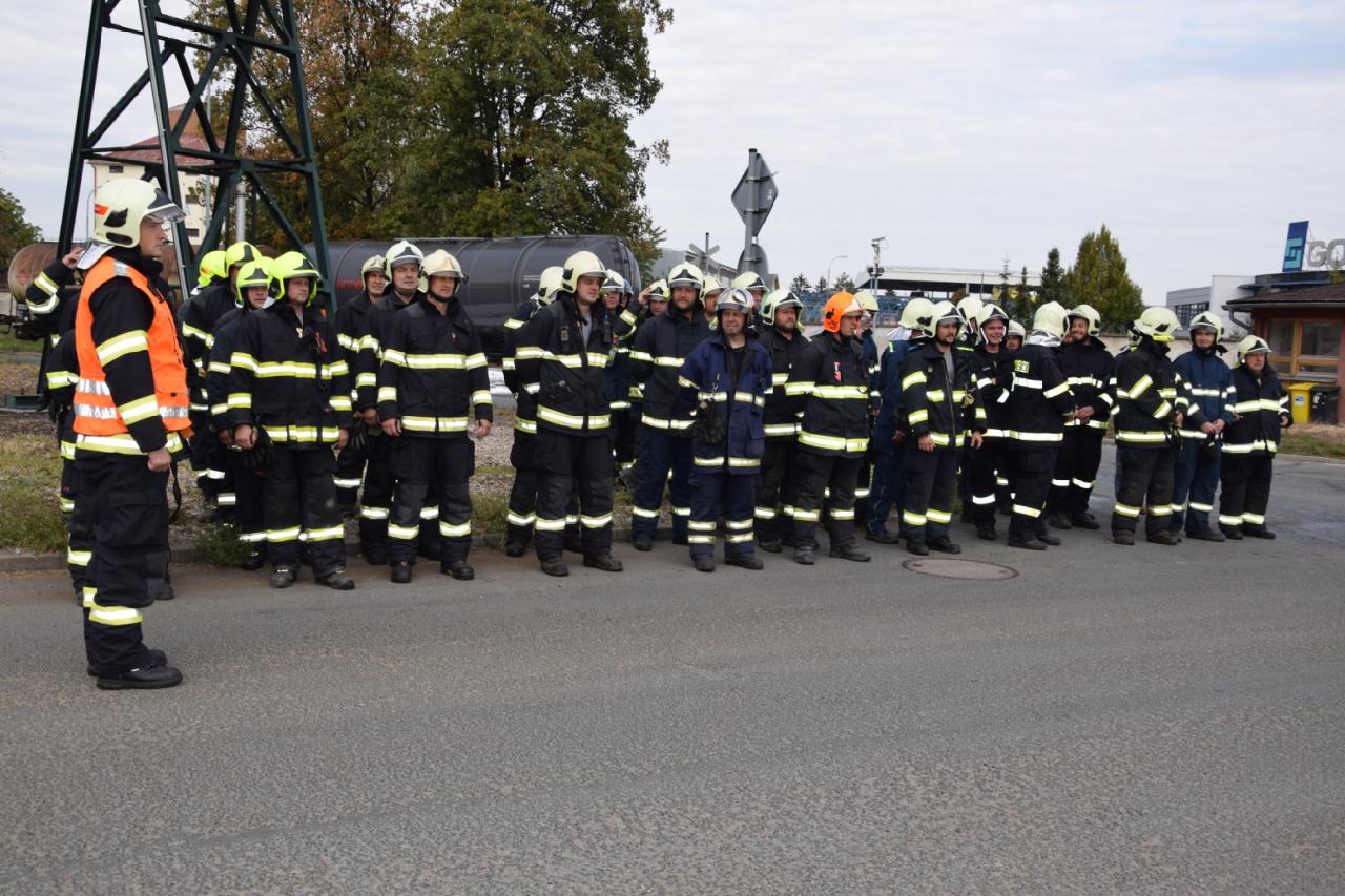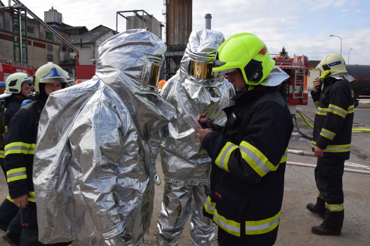 Po příjezdu prvních jednotek na místo začaly jednotky vodními proudy ochlazovat jak hořící cisternu, tak vedlejší nezasaženou cisternu. Velitel čety ze stanice HZS Kutná Hora si po příjezdu na místo události převzal velení zásahu. Některé jednotky určil k zajištění dodávky hasební vody z požární nádrže v areálu firmy. Po soustředění dostatečného počtu sil a prostředků byl hasiči v ochranných oblecích proti sálavému teplu proveden zásah těžkou pěnou, zapěnění cisterny a likvidace požáru. Po ukončení cvičení byla pro jednotky připravena prohlídka areálu a seznámení se systémy protipožárního zabezpečení v provozu.