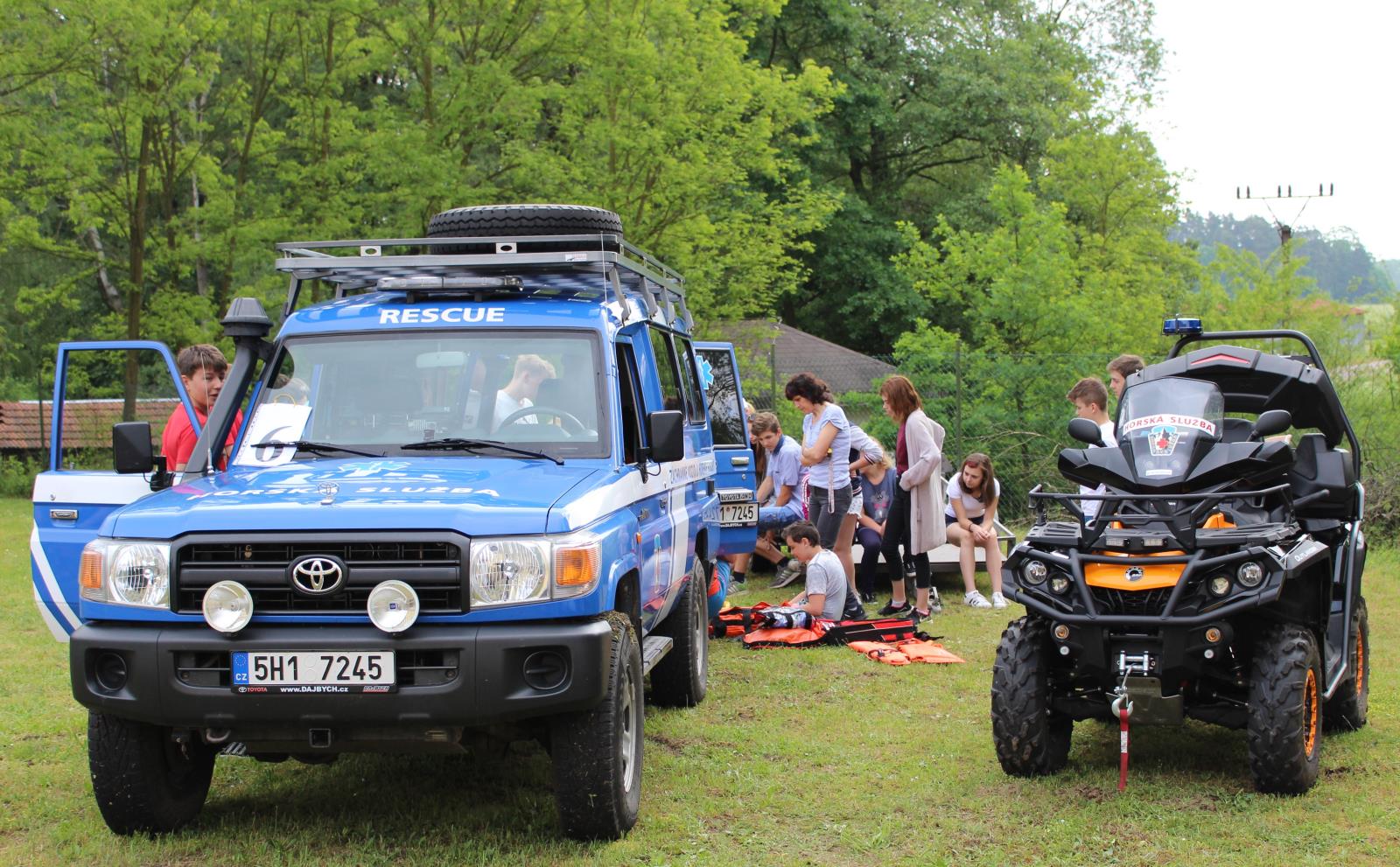 Žáci si při názorných ukázkách mohli vyzkoušet měření rychlosti radarem a byli seznámeni s činností dopravní Policie ČR, včetně nového policejního motocyklu. Další stanoviště patřilo příslušníkům pořádkových sil Policie ČR, zde velice zajímavým výkladem žáky uvedli do problematiky činností této důležité složky policie a ukázali jim jejich výstroj a výzbroj. Zdravotnická záchranná služba děti seznámila s vybavením svého vozidla a názorně jim byly předvedeny základy první pomoci. Dále zde měli ukázku členové Kynologické organizace z Častolovic, která přítomné velice zaujala. Dokonce si pár dobrovolníku mohlo vyzkoušet na vlastní kůži zadržení vycvičeným psem. Své místo mezi složkami IZS má i Horská služba. Ta přivezla speciální čtyřkolku a žákům přiblížila svou náročnou práci a další své vybavení. Místní dobrovolní hasiči provedli ukázku hašení požáru včetně použití dýchacích přístrojů, na svém statickém stanovišti dětem ukázali vyprošťovací nástroje, automobilový žebřík a cisternovou automobilovou stříkačku. Stanoviště hasičů z územního odboru Rychnov nad Kněžnou bylo zaměřeno na ochranu obyvatelstva. Žáci si vyzkoušeli prostředky individuální ochrany a improvizovanou ochranu, kterou je možné využít např. při chemické havárii a to jen z běžně používaných věcí v domácnosti. Důležitá informace pro děti se týkala varovného signálu „VŠEOBECNÁ VÝSTRAHA“, kdy se dozvěděli, jak se mají zachovat, když uslyší tento varovný signál.