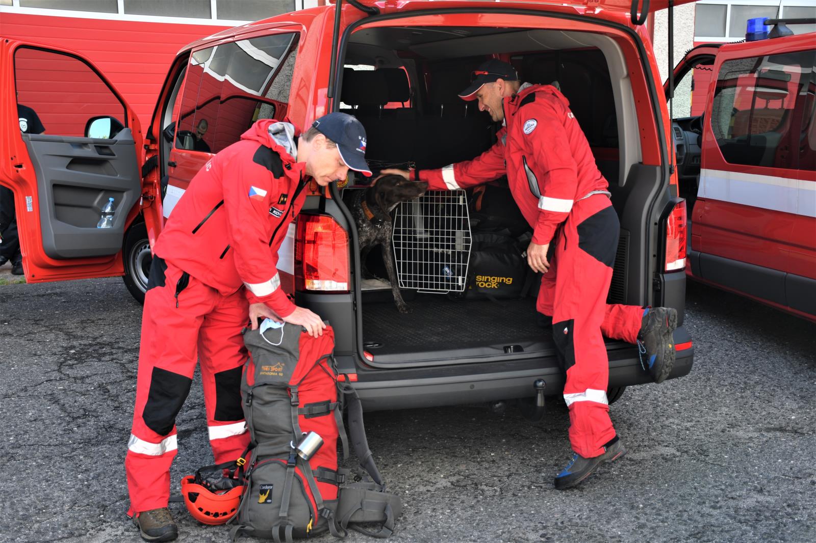 Velké poděkování patří kolegům z kraje Vysočina, kteří pomohli s transportem jednoho z našich kynologů z Vysočiny, který díky nim tak stihl být včas připraven v Turnově k hromadnému transportu na letiště Václava Havla.