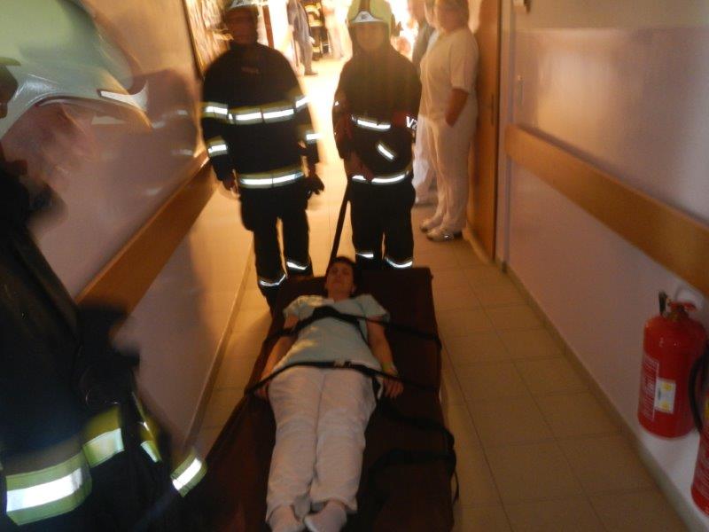 Plán taktického cvičení předpokládal, že v jedné z chodeb dojde po technické závadě na elektroinstalaci k požáru. „Požár“, který rychle způsobí silné zakouření domu, zpozoruje sloužící zdravotní sestra a okamžitě volá tísňovou linku.