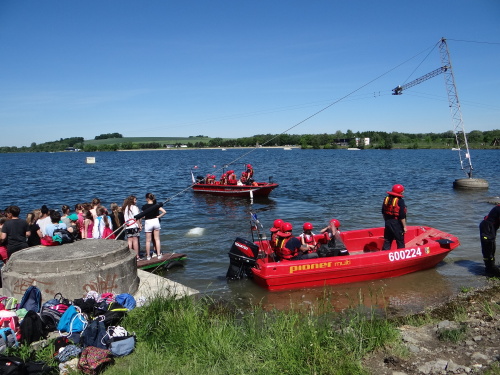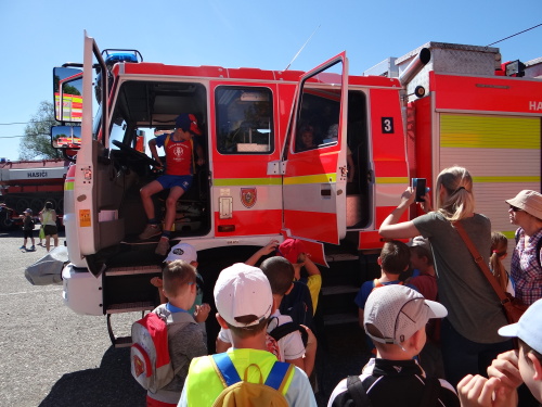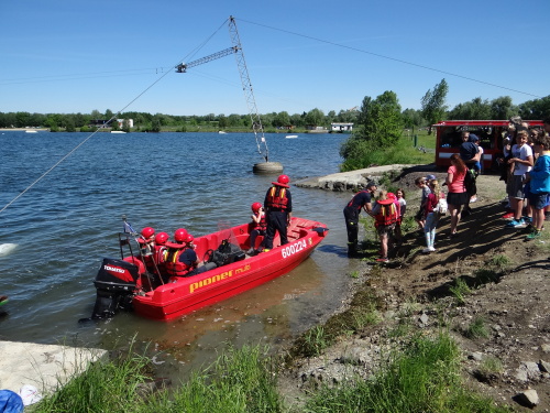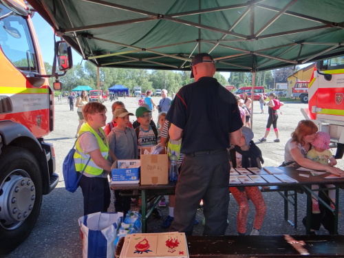 Velký zájem školáků byl o projížďku na hasičských člunech po hladině hlučínské štěrkovny. Mnozí z nich si zasoutěžili ve stanu prevence HZS MSK.