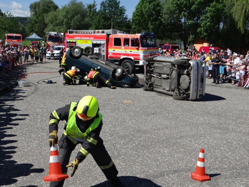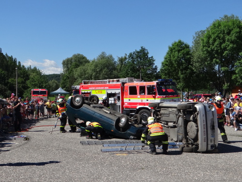 Jednotka HZS MSK ze stanice Hlučín s kolegy s jednotky dobrovolných hasičů v Hlučíně předvedla mnoha desítkám školáků i dospělých zásah u dopravní nehody dvou osobních automobilů s vyproštěním zraněných osob. S podrobným komentářem velitele stanice HZS MSK v Hlučíně.
