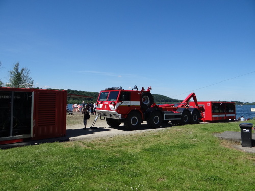 Nejrůznější zásahovou techniku, včetně cisteren, lodí a velkých mobilních čerpacích stanic vody, představili profesionální hasiči z Hasičského záchranného sboru Moravskoslezského kraje (HZS MSK) a jejich kolegové ze Záchranného útvaru HZS ČR v Hlučíně na čtvrtečním (1.6.2017) Dni se složkami IZS u hlučínské štěrkovny (okres Opava). Šlo již o třetí ročník akce.