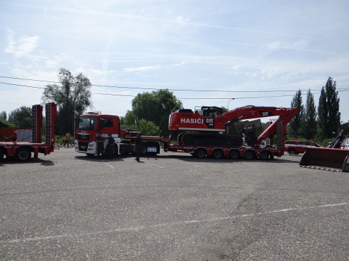 Nejrůznější zásahovou techniku, včetně cisteren, lodí a velkých mobilních čerpacích stanic vody, představili profesionální hasiči z Hasičského záchranného sboru Moravskoslezského kraje (HZS MSK) a jejich kolegové ze Záchranného útvaru (ZÚ) HZS ČR v Hlučíně na čtvrtečním , 31.5.2018,