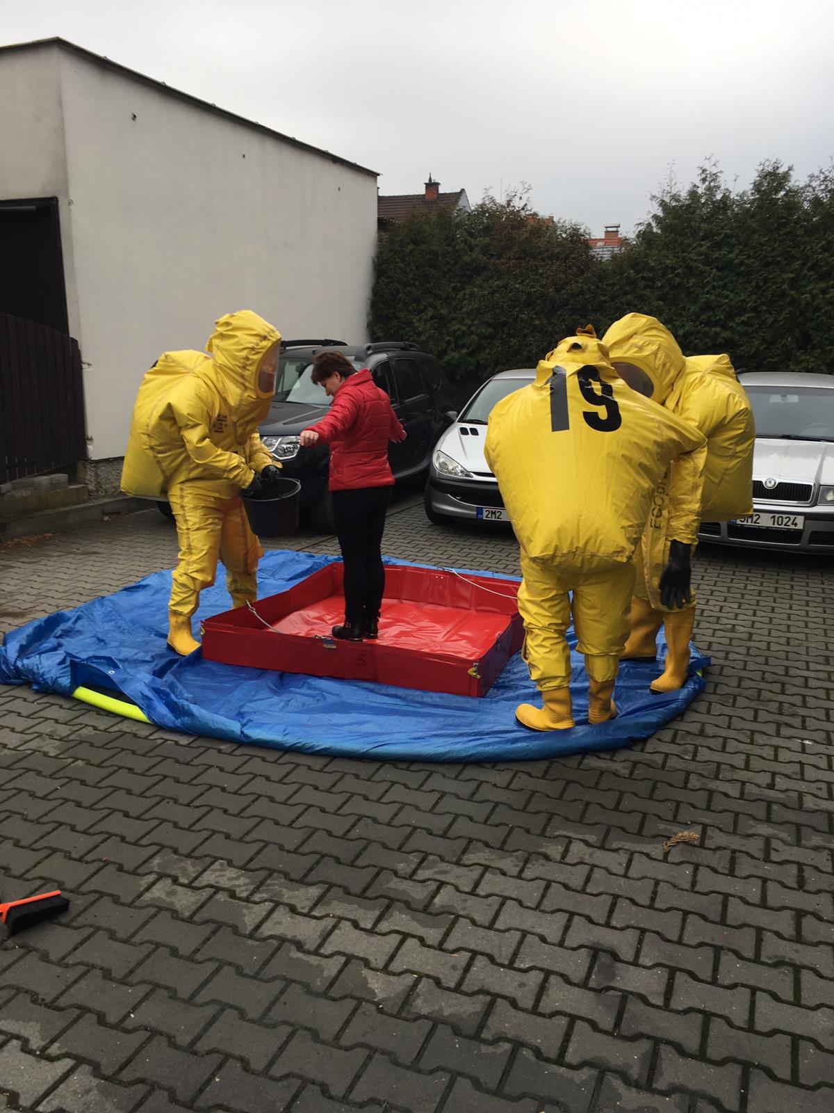 V Prostějově na ulici Říční zasahovali prostějovští profesionální hasiči cvičně v areálu soukromé firmy u úniku nebezpečné látky. Chemickou látku jeden z pracovníků převážel v sudu na vysokozdvižném vozíku. Při přepravě z důvodu netěsnosti víka nebezpečná látka unikla, naštěstí nikoho nezranila. Hasiči v rámci cvičení procvičovali vytyčení nebezpečné zóny, stavěli dekontaminační pracoviště a trénovali zastavení úniku nebezpečné látky. (taktické cvičení)